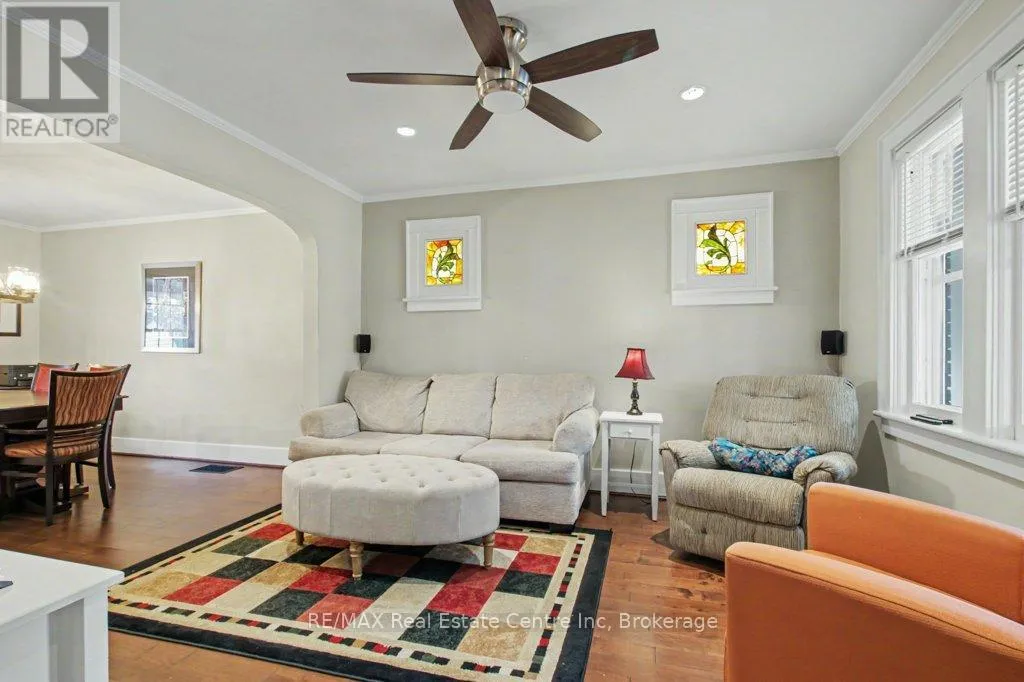 Cross Streets: Woolwich and Speedvale. ** Directions: Woolwich just south of Speedvale. LOOKING FOR A WORKSHOP Welcome to 598 Woolwich Street. This home is located in what I refer to as a neighbourhood. Walking distance to a couple of plazas, primary school and one of the finest parks in the city. No jumping in the car required. Well cared for home both inside and out. Located on a 32 x 162 foot lot featuring, a private fenced yard with extensive decking and an amazing garage/ workshop that can function as storage for your toys or a place for your home business. The interior is tastefully decorated and has been extensively updated thoroughout the last 20 years. The upstairs consists of 2 large bedrooms and a 4 pc bathroom. The original design was three bedrooms and was modified by a previous owner to create two larger bedrooms. The main floor has an updated kitchen, spacious dining and living rooms with an abundance of natural light The basement is fully finished with recroom / bedroom 3pc bath and laundry. There is a walkup from the basement to the rear deck that is tastefully hidden from view. The home express a pride of ownership from top to bottom. Move in condition. (id:27476)