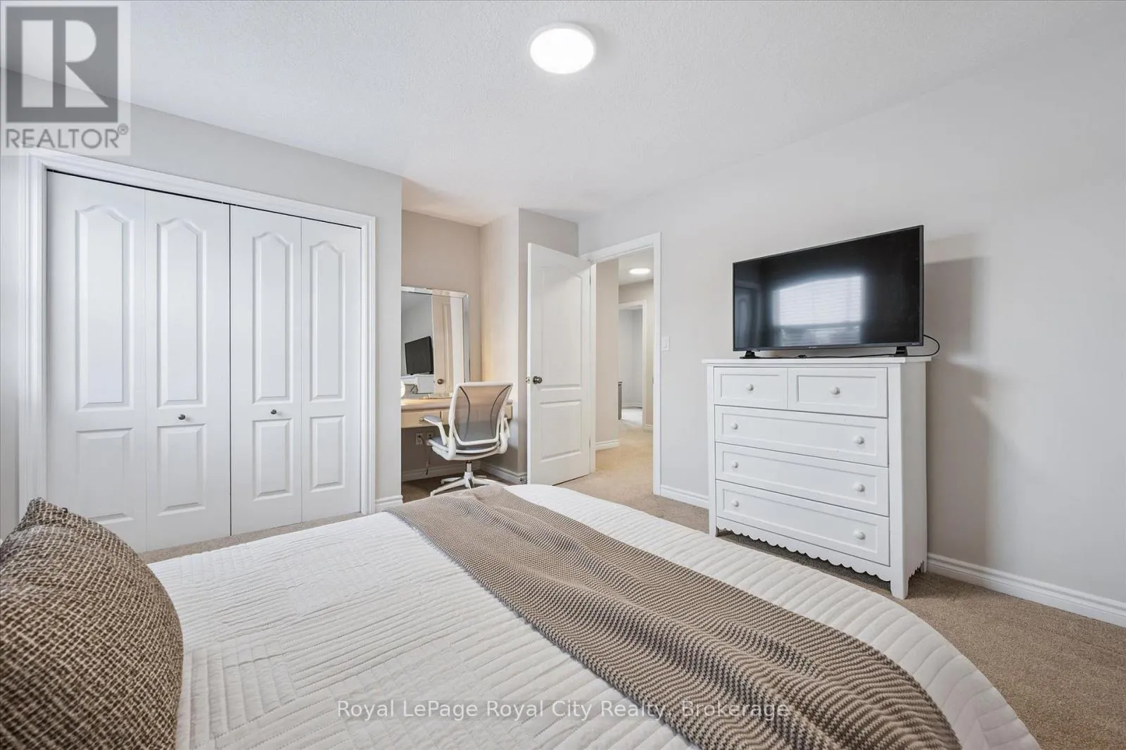 Cross Streets: Carrington Dr and Edinburgh Rd S. ** Directions: Edinburgh Rd S. Beautifully updated Terra View former model home set on a desirable corner lot in sought-after Kortright West. This 4+1 bedroom, 3.5 bathroom home offers a thoughtfully designed floor plan that truly works for modern family living. The attractive brick and stone exterior welcomes you into a bright foyer complete with a coat closet, custom built-in storage, convenient powder room, and main floor laundry. Rich hardwood flooring flows into the formal dining room - an inviting space for hosting holidays and special gatherings. The refreshed eat-in kitchen features granite countertops, stainless steel appliances, and updated finishes, while the bright breakfast area walks out to the rear yard, creating a seamless connection between indoor and outdoor living. Just steps away, the cozy lower-level living room with fireplace is the perfect place to unwind. Upstairs, the spacious family room offers incredible flexibility for movie nights, a playroom, or a quiet retreat. The generous primary suite includes a walk-in closet and dedicated ensuite with a newly updated shower. Three additional bedrooms share a beautifully renovated family bathroom complete with new quartz countertops and modern fixtures. The finished basement expands your living space even further with a fifth bedroom, a full bathroom, and a versatile bonus area ideal for a home office, gym, or recreation space. Outside, the fully fenced backyard is a private oasis. Spend summer days by the inground pool, relax in the hot tub, or entertain friends and family on the patio. Recent updates include new basement flooring, a full basement bathroom renovation, a new primary ensuite shower, new quartz countertops, sinks and faucets in the main bath and ensuite, a kitchen and powder room refresh, and fresh paint throughout. Ideally located close to Hartsland Market Square, parks, schools, and public transit, this is the home your family has been waiting for. (id:27476)