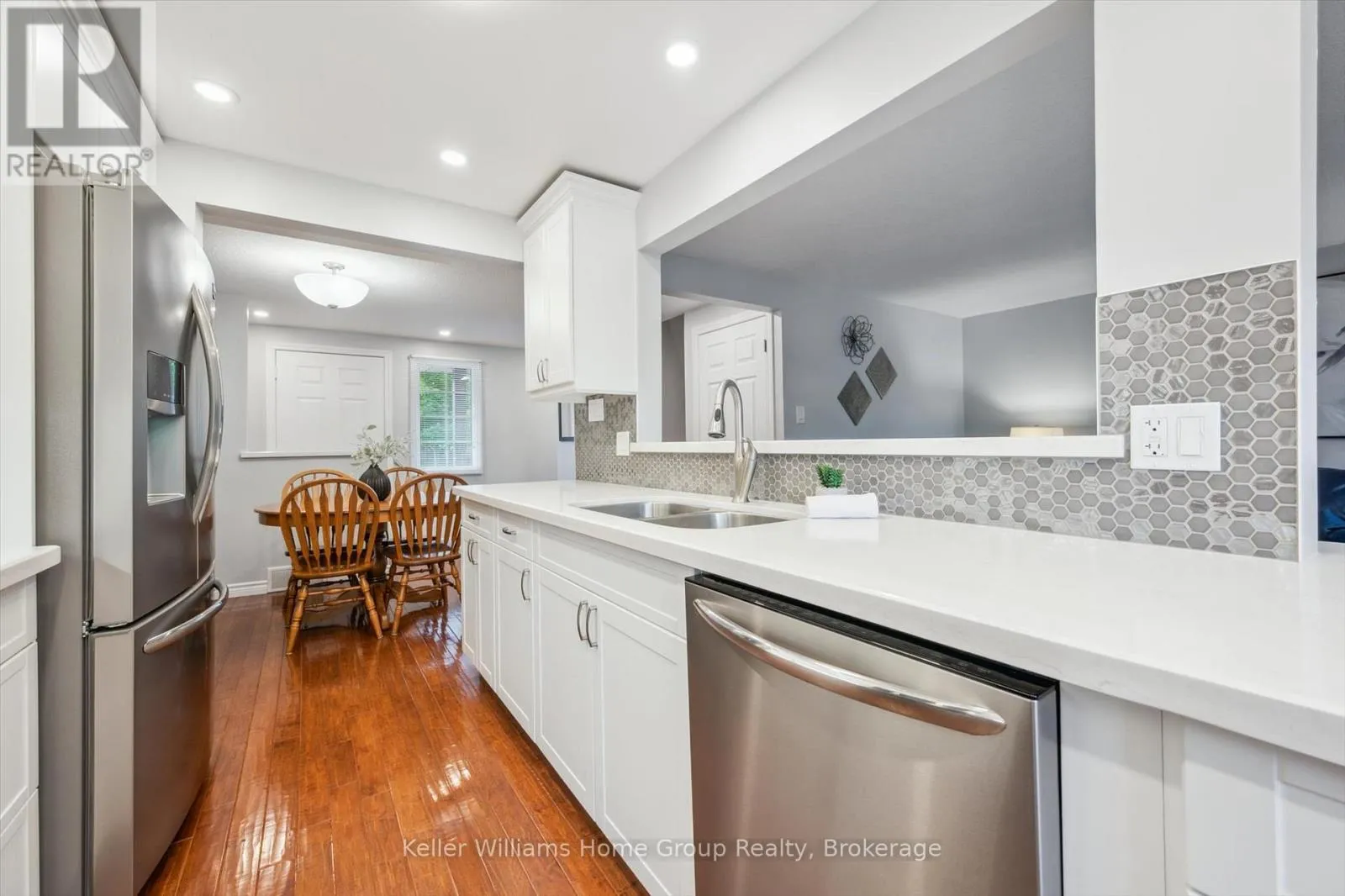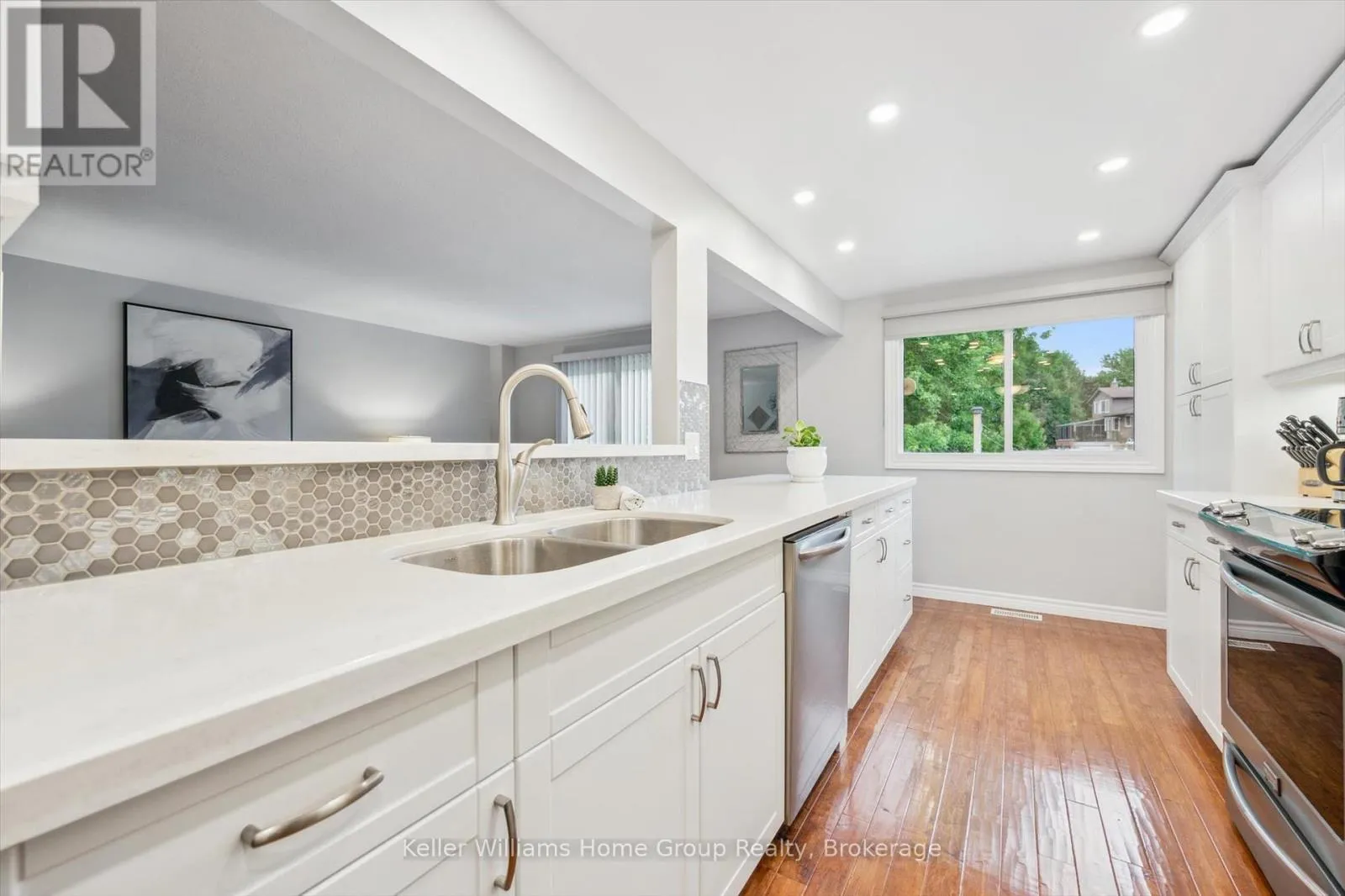 Cross Streets: Wellington & Imperial. ** Directions: Wellington to Imperial, go right. just passed Suzanna on the left. Welcome to this beautifully maintained 2-storey family home in Guelph's desirable west end. Set on a generous lot in a mature, family-friendly neighbourhood, this warm and inviting home offers the perfect blend of comfort, style, and convenience. Lovingly cared for by the same family for many years, it features a custom kitchen with quartz countertops, stylish backsplash, and stainless steel appliances. The main floor offers hardwood flooring, updated lighting, pot lights, California ceilings, and a renovated powder room. Upstairs you'll find 3 spacious bedrooms, including a primary with walk-in closet, plus a beautifully updated family bathroom and original hardwood in excellent condition. The fully finished basement adds extra living space with a cozy gas fireplace, perfect for movie nights, a playroom, or home office. The spacious backyard is ideal for entertaining, relaxing, or family fun. Single-car garage with direct access and double driveway. Fantastic walkable location close to 3 schools, Costco, West End Rec Centre, library, pool, arena, restaurants, banks, and more. A wonderful opportunity to settle into one of Guelph's most loved neighbourhoods. (id:27476)