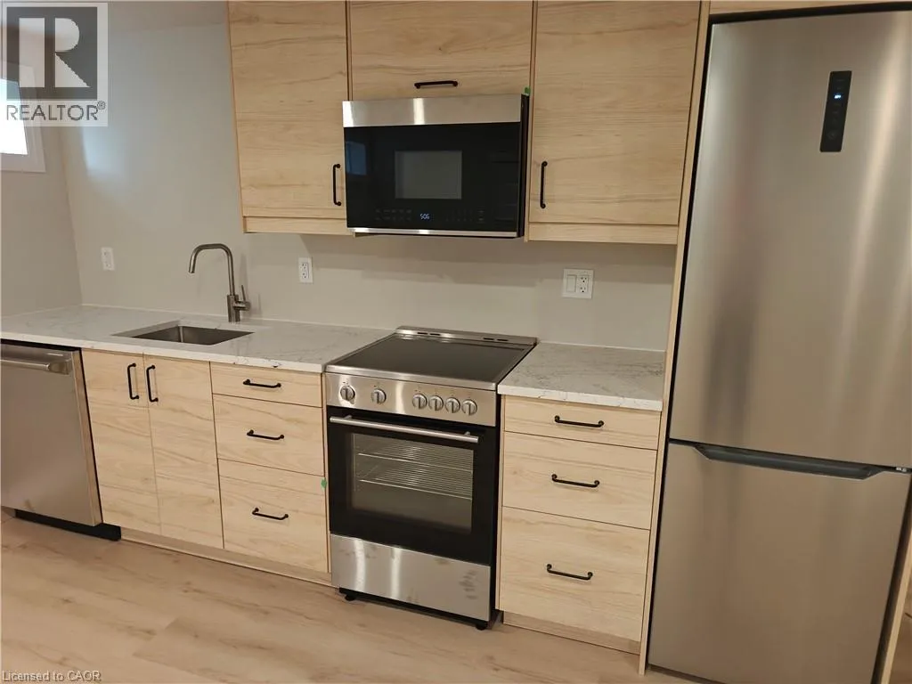 Gateway Drive to Queensdale Crescent Welcome to this beautifully updated and fully legal basement apartment in the vibrant city of Guelphâa perfect blend of comfort, style, and convenience. Renovated in 2026, this modern rental unit offers a thoughtfully designed layout ideal for an individual or couple seeking a bright, functional living space in a desirable location. The unit features a spacious one-bedroom layout situated on the main floor, providing easy accessibility and a comfortable retreat. Adjacent to the bedroom is a contemporary 3-piece bathroom, finished with modern fixtures and clean design elements. Moving into the basement level, youâll be pleasantly surprised by the abundance of natural light, creating a warm and inviting atmosphere that sets this apartment apart from typical lower-level units. The 2026 upgrades shine throughout the space, including brand-new cabinetry and appliances in the kitchen, offering both style and practicality for everyday living. The elegant engineered hardwood flooring adds a touch of sophistication while ensuring durability and easy maintenance. A separate laundry room provides added privacy and convenience, while the large storage area ensures youâll have plenty of space to keep your belongings organized. This rental will also include a future single-wide front driveway, giving you dedicated parking right at your doorstep. Even better, essential utilitiesâheating, air conditioning, gas, and waterâare all included, allowing for stress-free budgeting and year-round comfort. Whether youâre commuting, studying, or simply looking for a peaceful place to call home, this newly updated basement apartment is an exceptional opportunity you wonât want to miss. (id:27476)