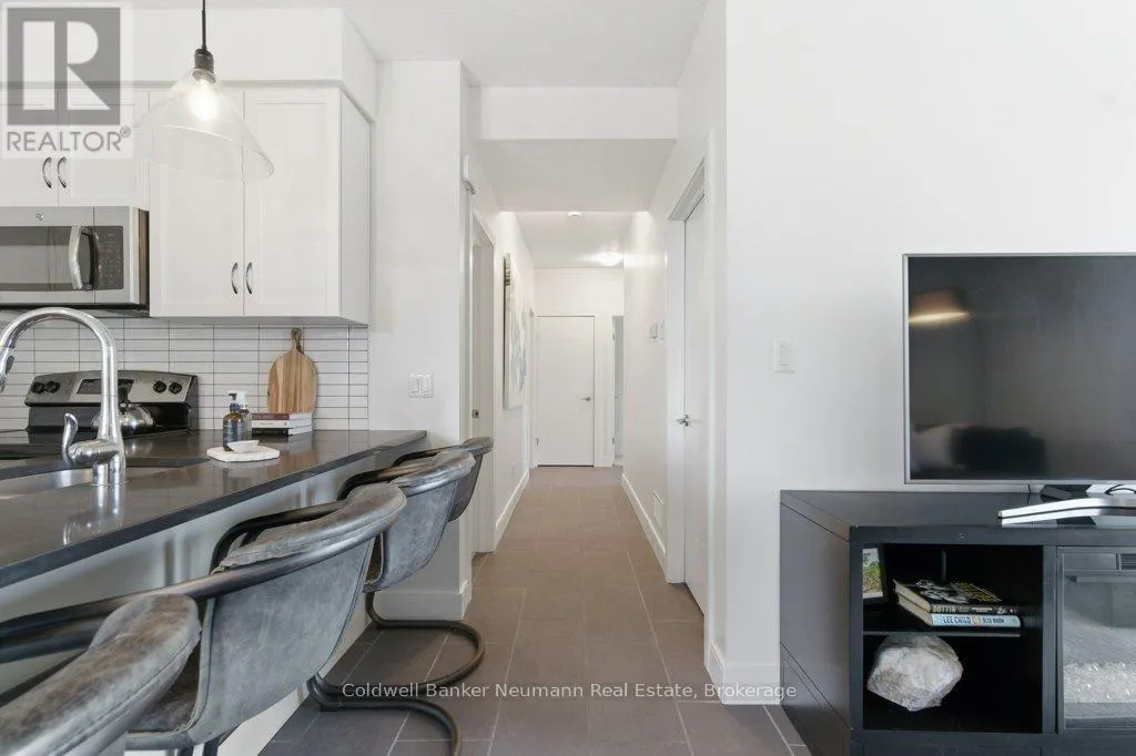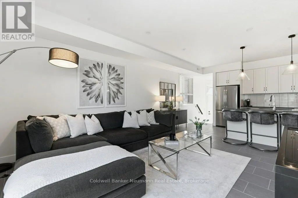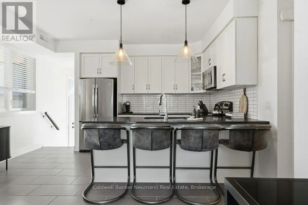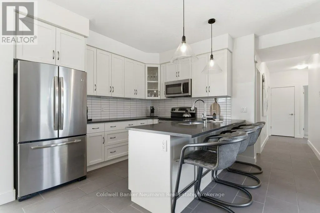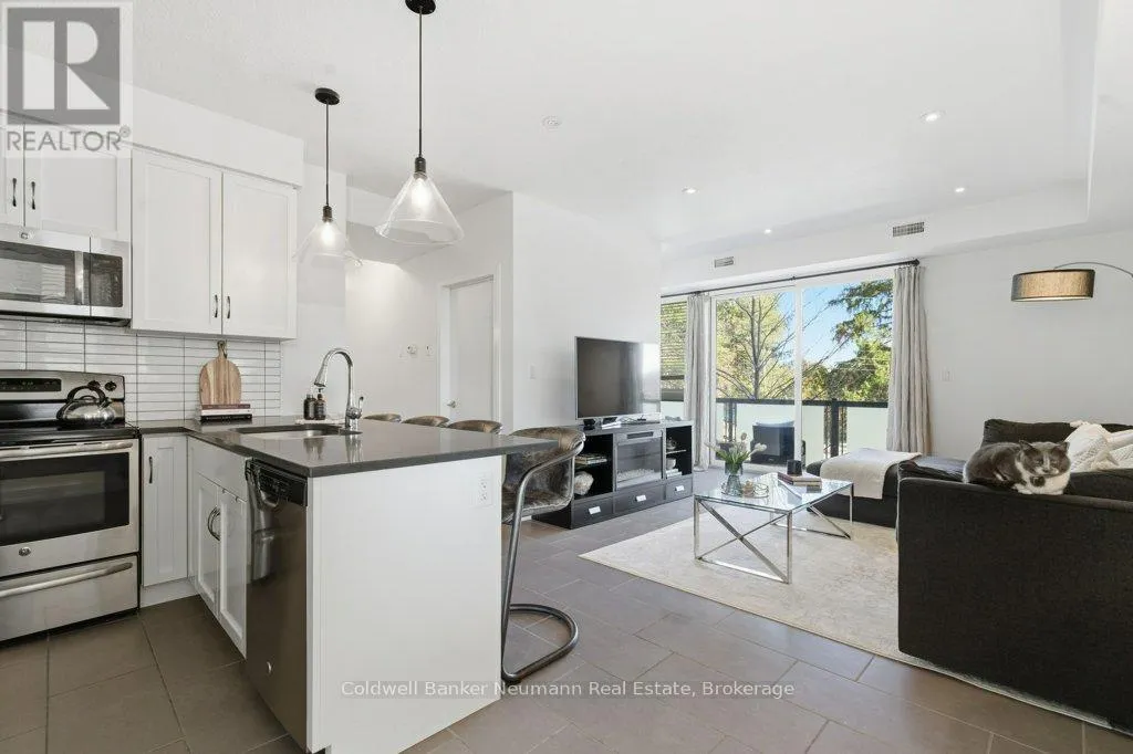Cross Streets: Arkell and Gordon. ** Directions: north on gordon, right on arkell. Complex is on left hand side. Welcome to easy, low-maintenance living in Guelph's sought-after south end! This bright and spacious one-floor stacked townhome at 32 Arkell Rd offers the perfect blend of comfort and convenience - ideal for first-time buyers, retirees, or savvy investors. Step inside to a sunken foyer with soaring ceilings, creating a warm and inviting first impression, complete with a large storage closet for added functionality. The open-concept layout features a generous living space with pot lights and a dedicated office nook - perfect for working from home or studying.The well - appointed u-shaped kitchen showcases white cabinetry, quartz countertops, stainless steel appliances, and a breakfast bar, with space for a dinette if desired. This unit offers three spacious bedrooms, including a primary suite with an ensuite featuring a walk-in shower. A second full bathroom and in-suite laundry add everyday convenience. Enjoy the bonus of two owned parking spaces and unbeatable walkability to shops, restaurants, and transit. With quick access to the University of Guelph and Highway 401, commuting is a breeze. A fantastic opportunity in a prime location-don't miss it! (id:27476)