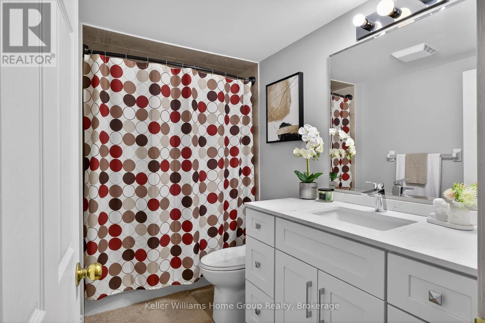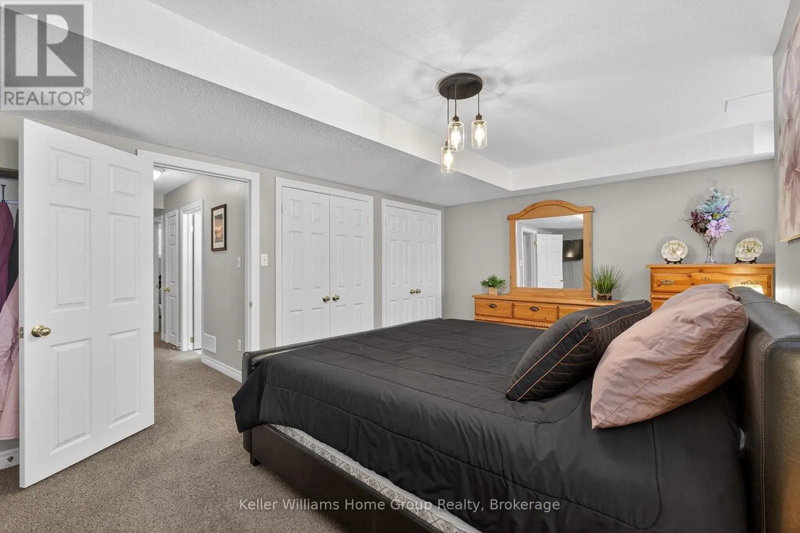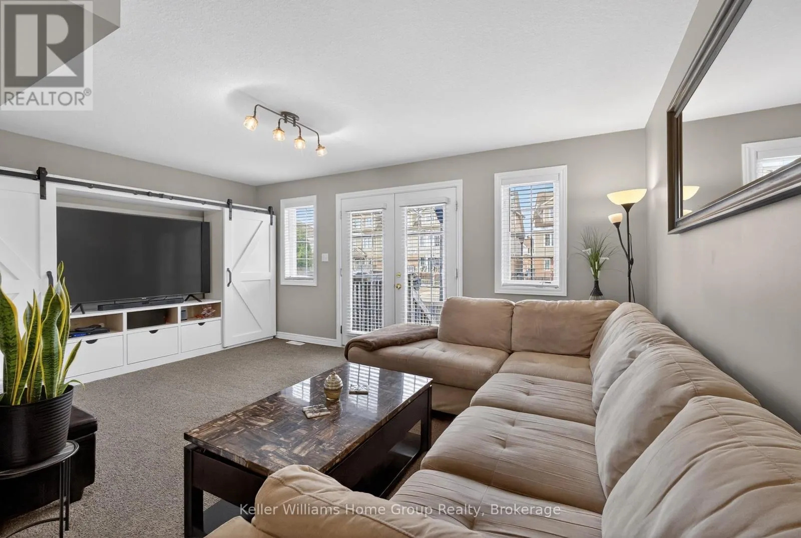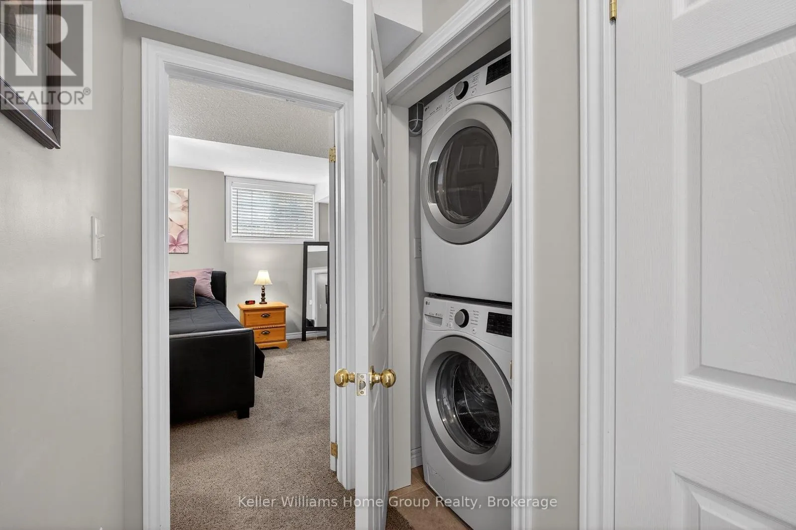 Cross Streets: Victoria Road and Woodlawn Road E. ** Directions: Victoria Road to Woodlawn Road E. Welcome to Lakeview Place! This inviting stacked townhome community in desirable North Guelph offers incredible value. This well-designed home features two spacious bedrooms and an ideal layout for first-time buyers, investors, or anyone seeking comfort in a fantastic location. The bright main level living room is filled with natural light and walks out to a private deck and fenced backyard - perfect for relaxing or entertaining, and a feature rarely found in similar communities. The eat-in kitchen offers plenty of counter space and room for a large table, while a convenient 2-piece bathroom completes this level. Downstairs, you will find two generously sized bedrooms, thoughtfully positioned for quiet and restful living. This level also features a recently updated 4-piece bathroom and in-suite laundry conveniently located beside the primary bedroom. Enjoy an unbeatable location directly across from Brant Park and just steps to the Guelph Lake sports fields, with nearby walking trails for outdoor enthusiasts. This home is also only minutes from restaurants, coffee shops, and everyday amenities along Woodlawn Road. With low maintenance fees and a welcoming community atmosphere, this is an opportunity you won't want to miss. (id:27476)