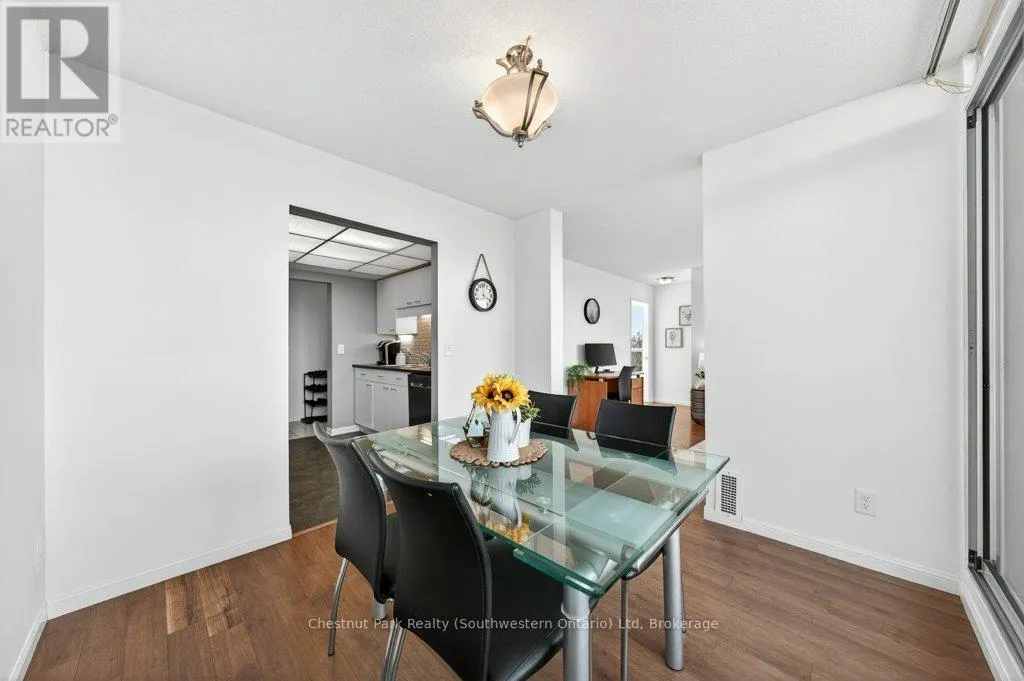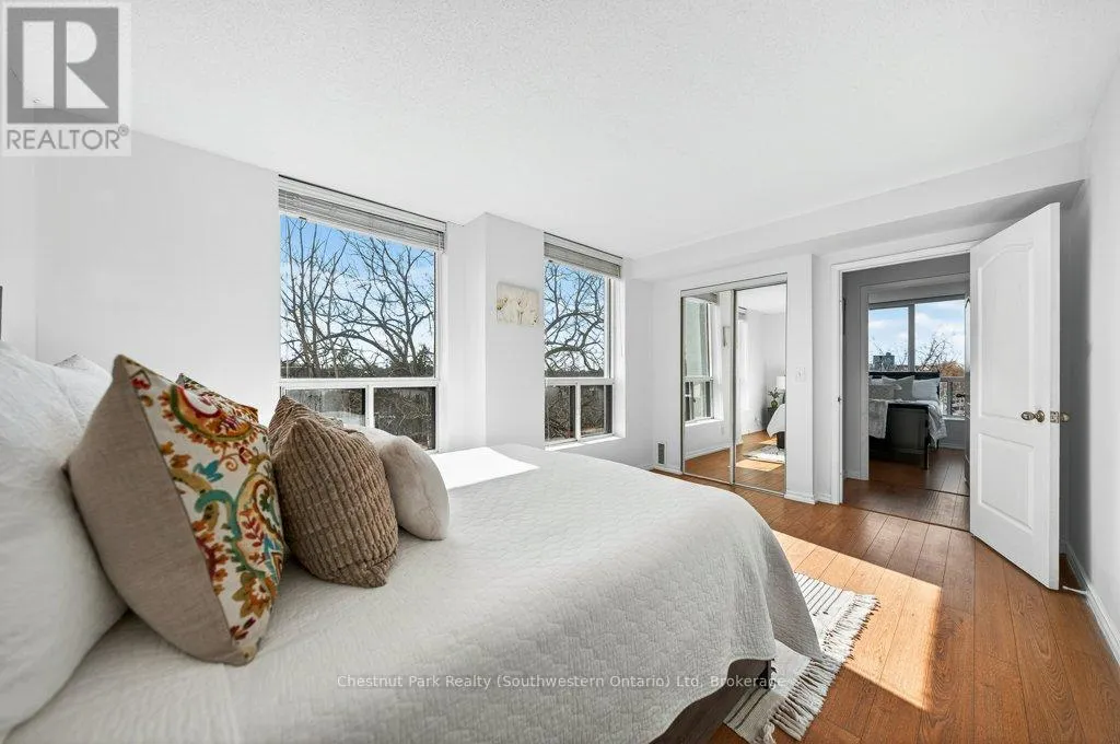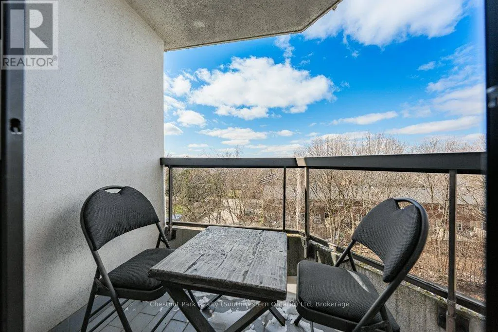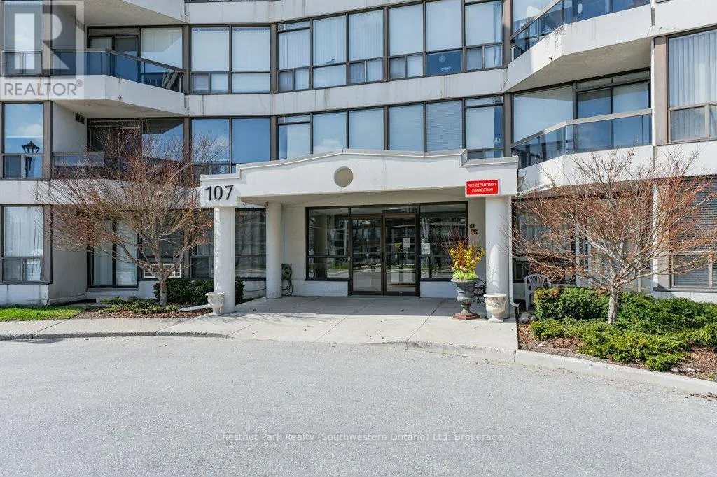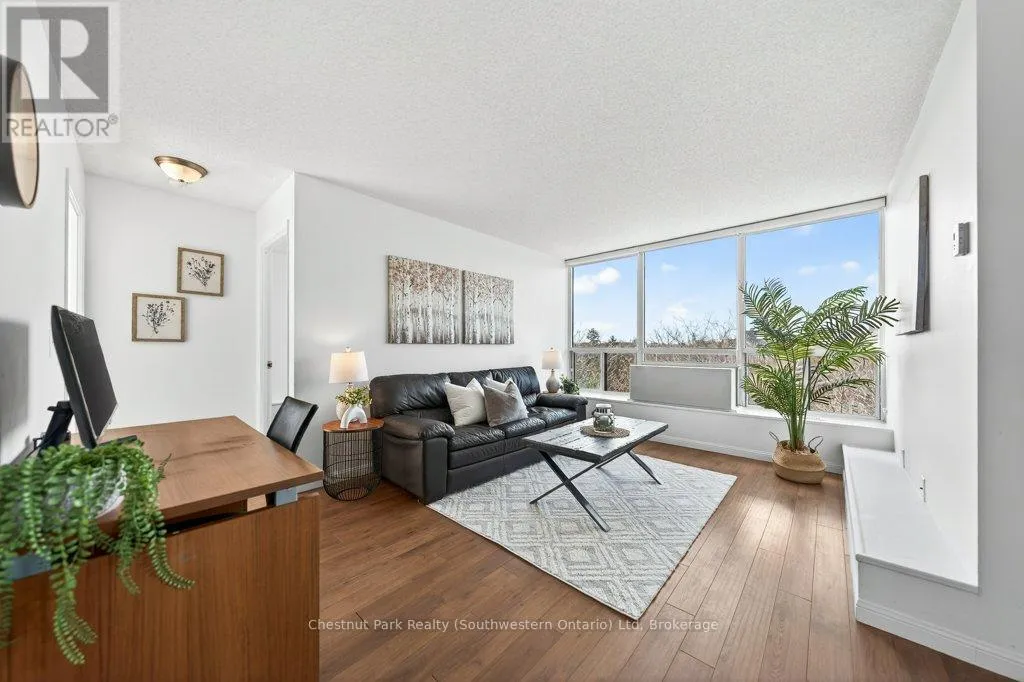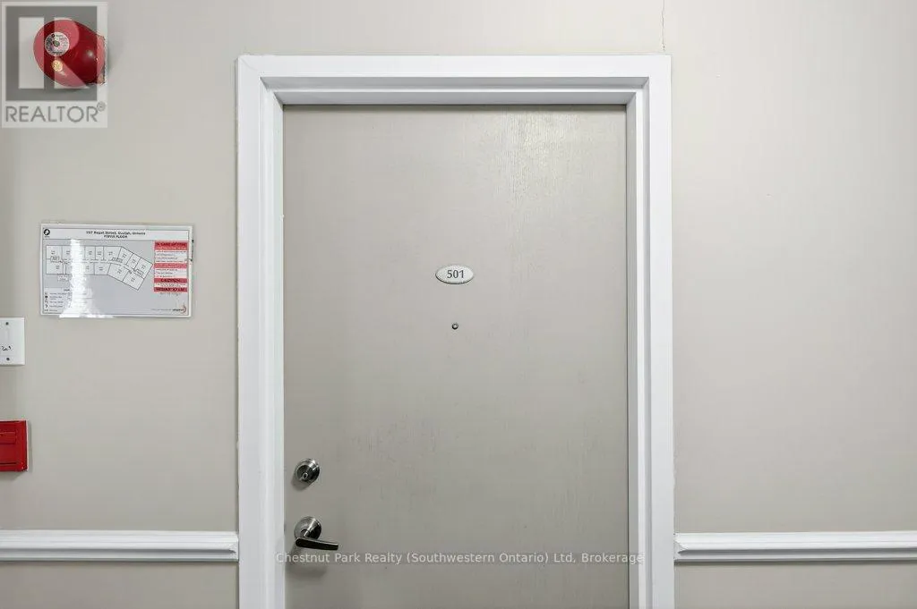 Cross Streets: Edinburgh Rd + Paisley. ** Directions: Edinburgh Rd left on Suffolk right on Bagot. Own the corner at an unbeatable price. 107 Bagot St, Unit 501 offers a rare fifth-floor layout in a building known for its solid construction (built 1992) and quiet living. At this price point, this is a strategic move for anyone wanting space, privacy, and long-term stability without the heavy mortgage. A major rarity for the city: this unit comes with TWO parking spots! Combined with a condo fee that includes water, this is a highly cost-effective home. As a west-facing corner unit, you get windows on two sides for natural light and extra privacy. The building is well-constructed, ensuring quiet living without the noise transfer found in newer builds-perfect for those who value peace and tranquility. This community has incredibly low turnover, a friendly atmosphere, and a highly-rated condo corporation that manages the property with pride. The interior has been freshly painted and features an open floor plan. Unlike small modern layouts, this unit offers a large living room and a dedicated, separate dining space. Both bedrooms are generously sized, featuring a primary bedroom large enough for a king-sized suite.You can also step onto your private balcony to take in unobstructed sunsets every evening. The heavy lifting is done: stainless steel kitchen appliances were updated in 2020, high-efficiency laundry in 2021, and the furnace was updated approximately 7 years ago. With Fibre Optic internet already in place, it is a perfect setup for those working from home or streaming your favorite shows. The building amenities add more value, featuring a party room, bike storage, a paint/workshop for hobbyists, and a large exclusive storage locker. Located in a quiet, established pocket, you are only minutes from downtown Guelph and major shopping. You get the benefits of a peaceful street with the convenience of the city just a short trip away. Two parking spots. New appliances. Stunning views. Peace and tranquility. 501-107 Bagot St is the smart, affordable sanctuary. (id:27476)