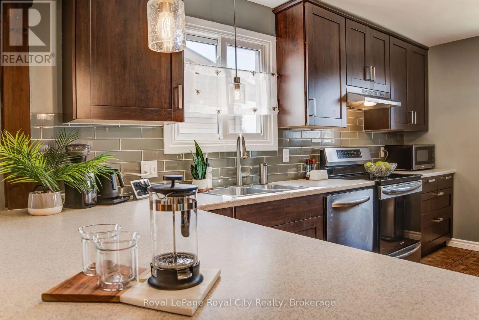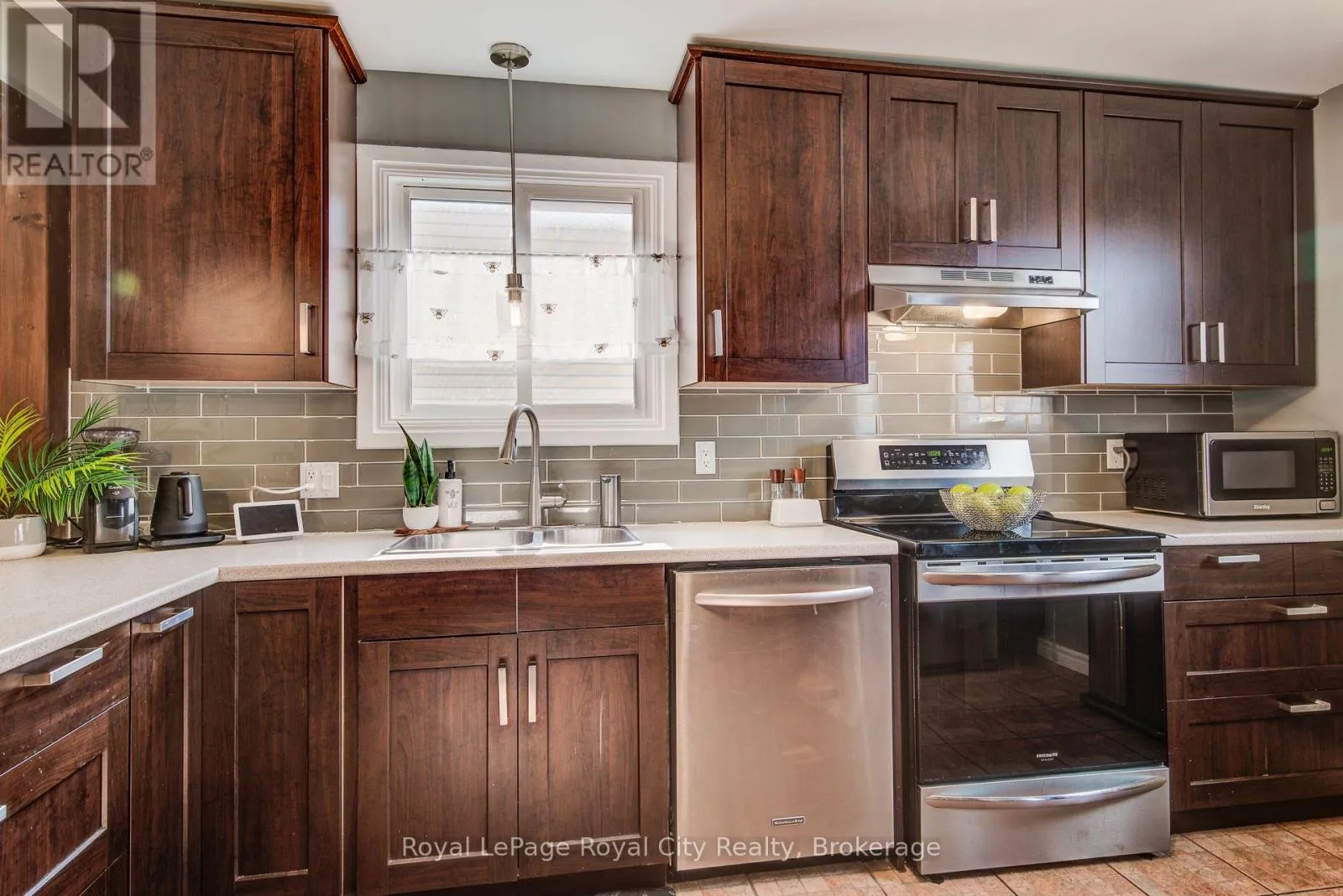Cross Streets: wellington and Imperial. ** Directions: wellington street to imperial. The Versatile Guelph Raised Bungalow You've Been Waiting For! Step into this welcoming and spacious raised bungalow, an absolute gem offering endless possibilities for every stage of life, from first-time homeowners to those looking for a flexible multi-generational layout. At the heart of the home is the stunning main floor, centered around an incredible kitchen. With counter space fit for a professional chef or the family baker, this kitchen is designed for memorable entertaining. The eat-in area features a breakfast bar and room for a large table, all connected by a walkout to the private yard, making al fresco dining and backyard parties a breeze. Functionality is key: the layout smartly separates the large living room, which enjoys front-facing boulevard views, from the tranquil bedrooms, which overlook the generous, oversized backyard. The lower level is full of light and possibilities, perfect for both fun and relaxation. You'll find expansive space ideal for a home office, a cozy family movie theatre, or a massive rec room. Plus, enjoy the everyday convenience of direct, sheltered entry right from your garage. This home features 2000 sq feet of finished living space. (id:27476)