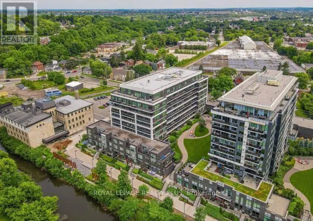 Arthur / Elizabeth This stunning suite offers approx. 657 sqft of living space including the balcony. The perfect blend of modern elegance. Thoughtfully designed with a spacious open-concept layout, it's ideal for both relaxed living and effortless entertaining. The dining area flows seamlessly into a bright, inviting living space, externing onto an oversized balcony-your private outdoor retreat to unwind. Inside, the upgraded kitchen is sure to impress, featuring sleek quartz counter-tops, stainless steel appliances, updated flooring throughout, a generous bathroom, in-suite laundry, and underground parking. Bu what truly sets this opportunity apart is the lifestyle. This complex offers resort-style amenities; a gym, elegant party room, pet spa, and beautifully designed outdoor spaces complete with BBQs and fire-pits. Enjoy the exclusive lounge, host unforgettable evenings in the Chef's Kitchen with private dining for 12, or simply relax in the Wi-Fi Lounge. Step outside and you're instantly connected to nature and the city. Located along the Speed River, with direct access to scenic trails leading all the way to Guelph Lake, and just steps to downtown restaurants, cafes, boutiques, and the Go Station - making commuting to Toronto effortless. This is the one buyers wait for. Book your private showing today - and experience it yourself. (id:27476)