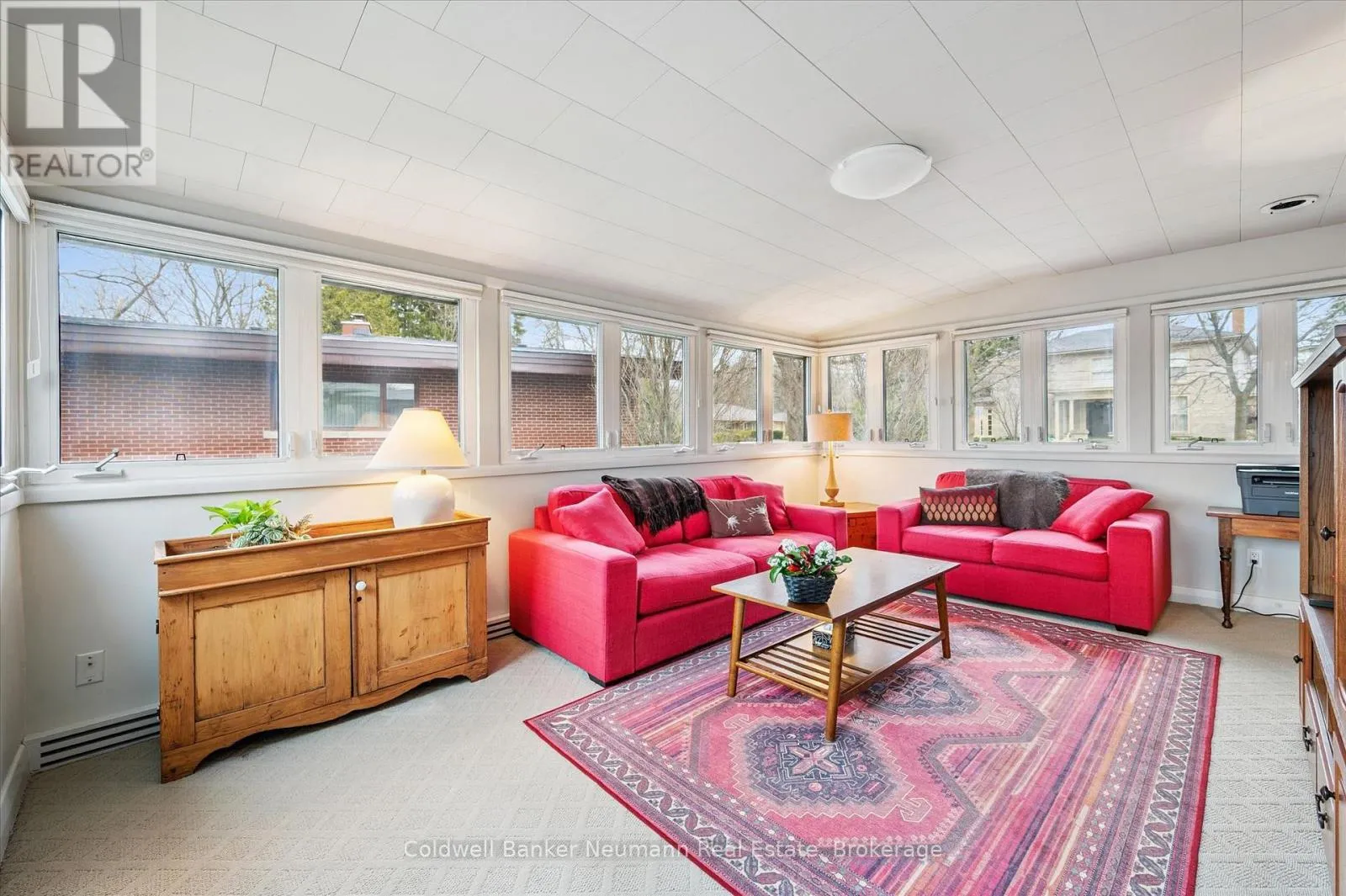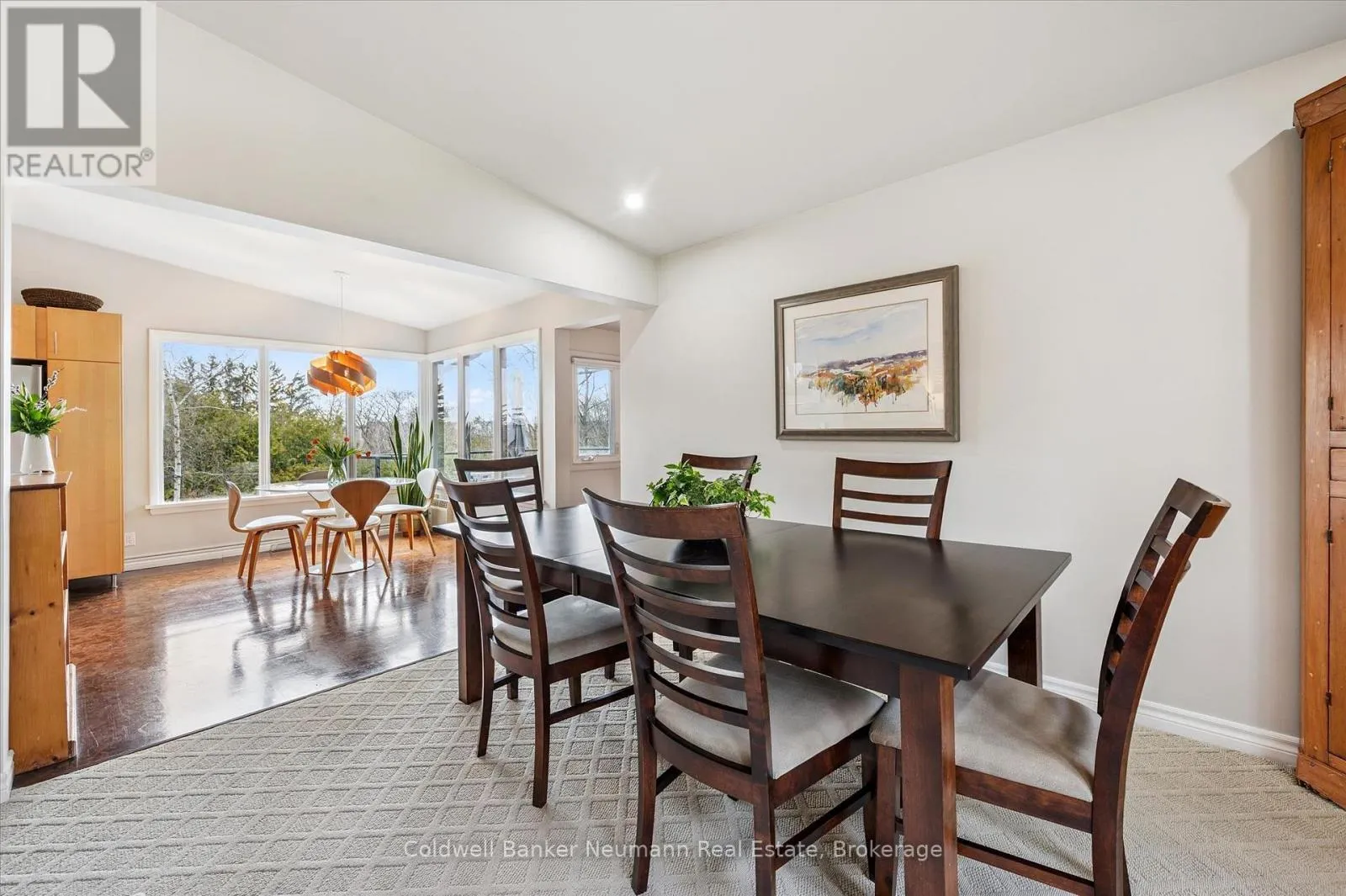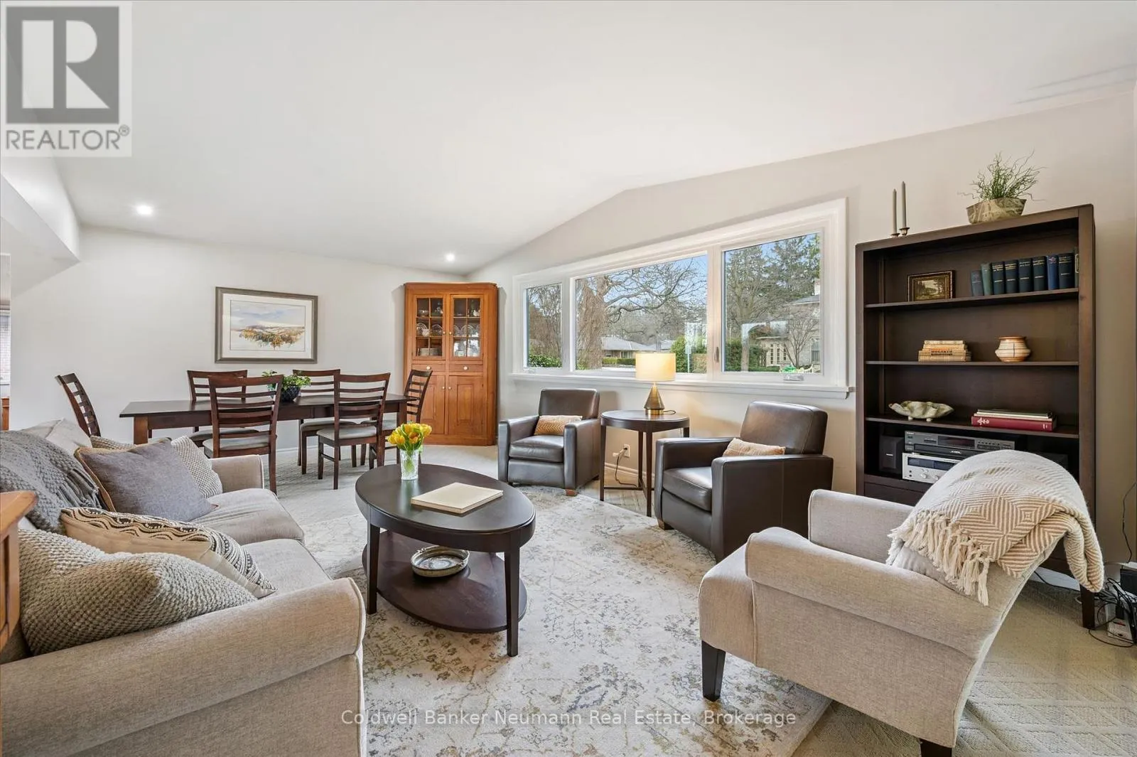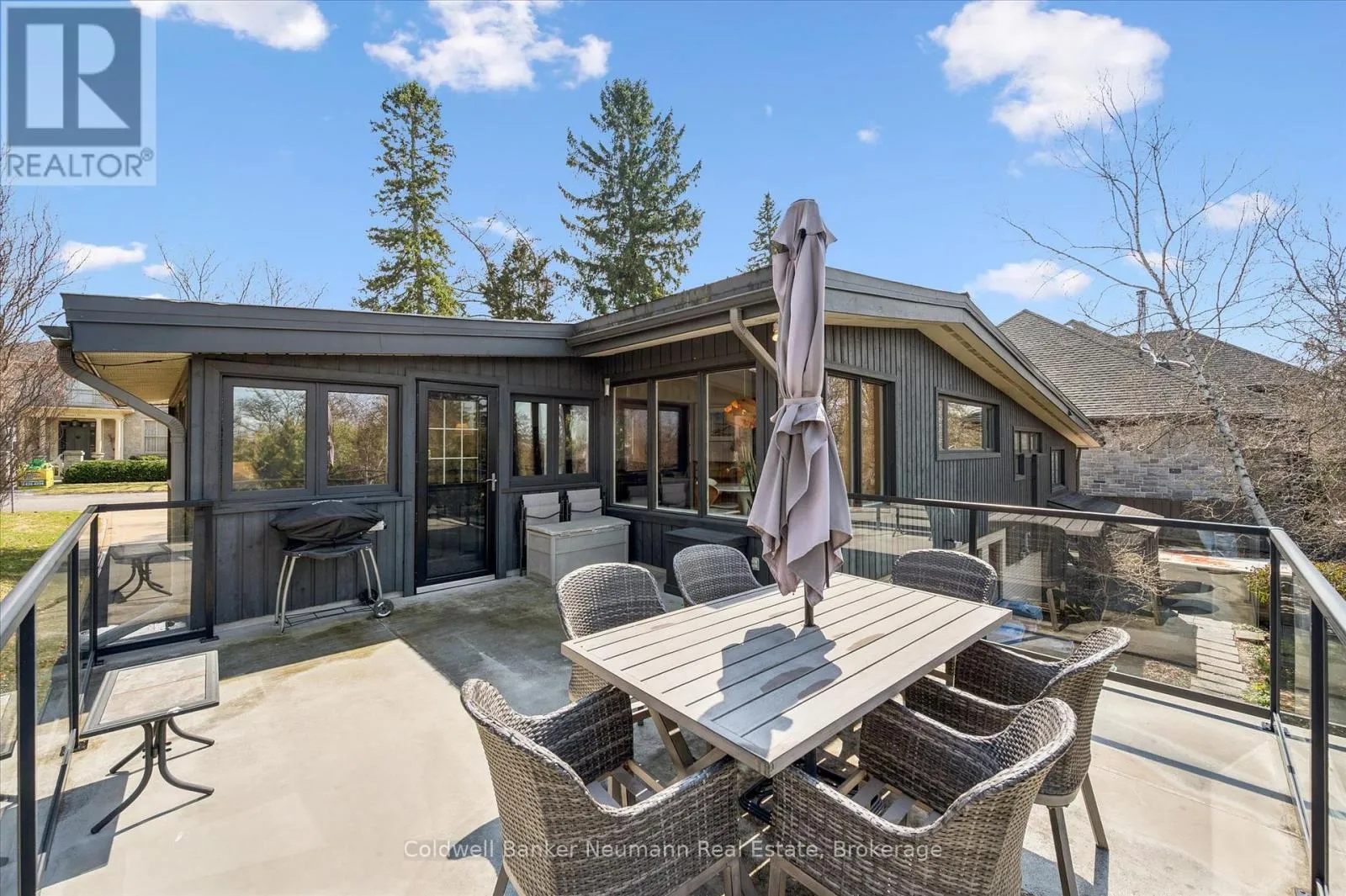 Cross Streets: Gordon at Dean. ** Directions: Gordon to Dean to Harcourt. Welcome to this architectural gem, nestled in Guelph's coveted Old University neighbourhood. This mid-century modern home commands panoramic views of downtown Guelph, proudly perched atop Gordon Street hill.Upon entry, a striking corner fireplace pays homage to classic mid-century design, immediately setting the tone for the home's timeless character and warmth. Thoughtfully designed for both everyday living and effortless entertaining, the home features an open-concept kitchen with an eat-in dining area framed by floor-to-ceiling windows overlooking the private backyard. This space flows smoothly into a sunlit living and dining room, where expansive front-facing views create an inviting atmosphere-ideal for hosting and relaxing. Adjacent to the kitchen, a beautifully appointed TV room is surrounded by windows on three sides, immersing the space in natural light and offering direct access to the deck. This private outdoor retreat overlooks the meticulously manicured yard and faces west-delivering unobstructed views and sunsets, all year-round.The primary bedroom enjoys peaceful views over the front yard, while the second bedroom overlooks the lush backyard. Both rooms feature generous built-in storage and ample closet space accompanied by a well-appointed four-piece bathroom. The lower-level walkout features a third bedroom which provides flexibility for growing families or guests, complemented by a three-piece bathroom. Additionally, there is a versatile space offering both an office and guest sleeping quarters. This walkout level connects seamlessly to the backyard and includes a mudroom with access to the laundry area and garage, offering both functionality and convenience. The backyard is exceptional, showcasing mature evergreens and meticulously maintained garden beds within a fully fenced setting. Lovingly maintained and thoughtfully cared for, this is a once-in-a-lifetime opportunity to own a distinctive piece of Guelph's architectural heritage. (id:27476)