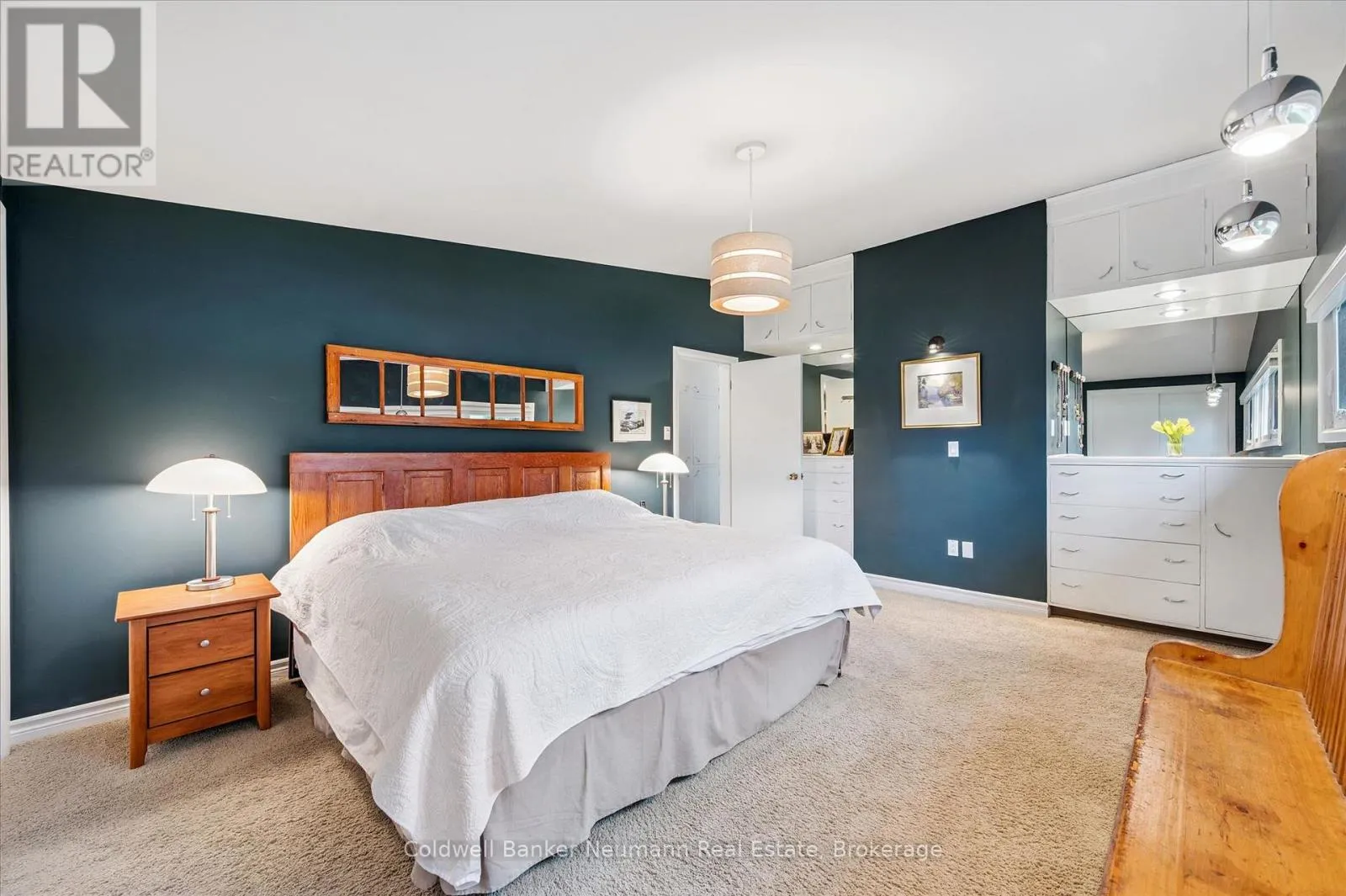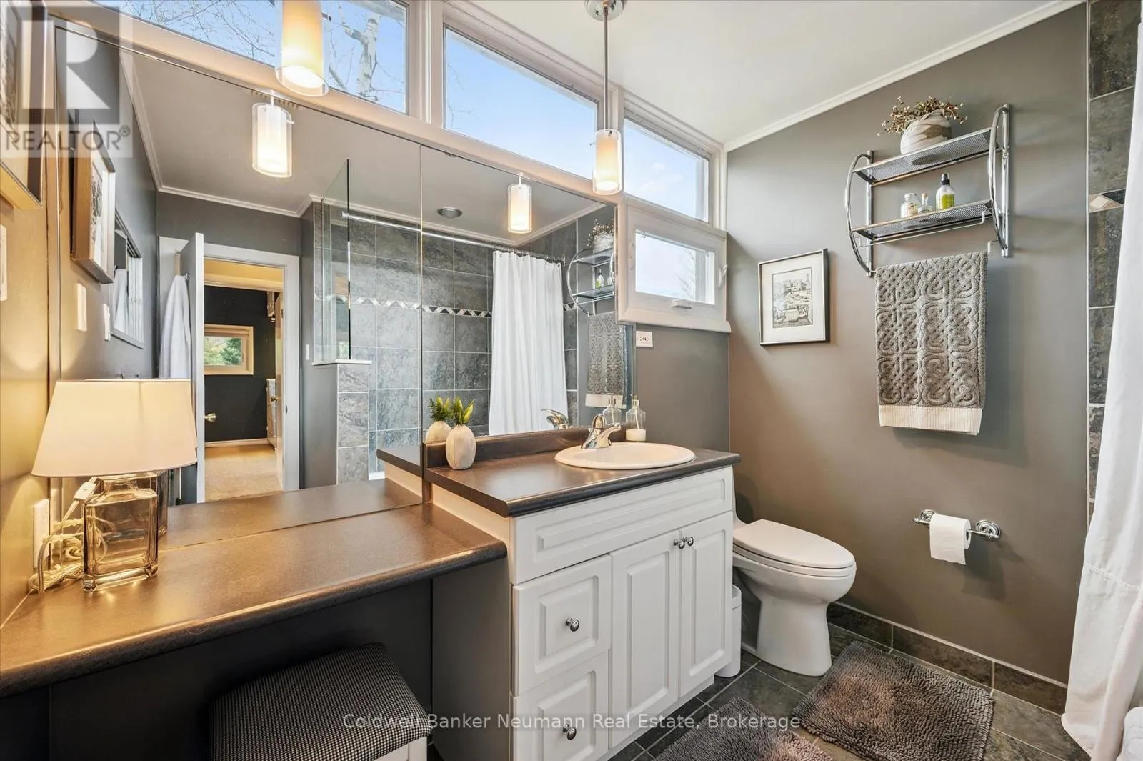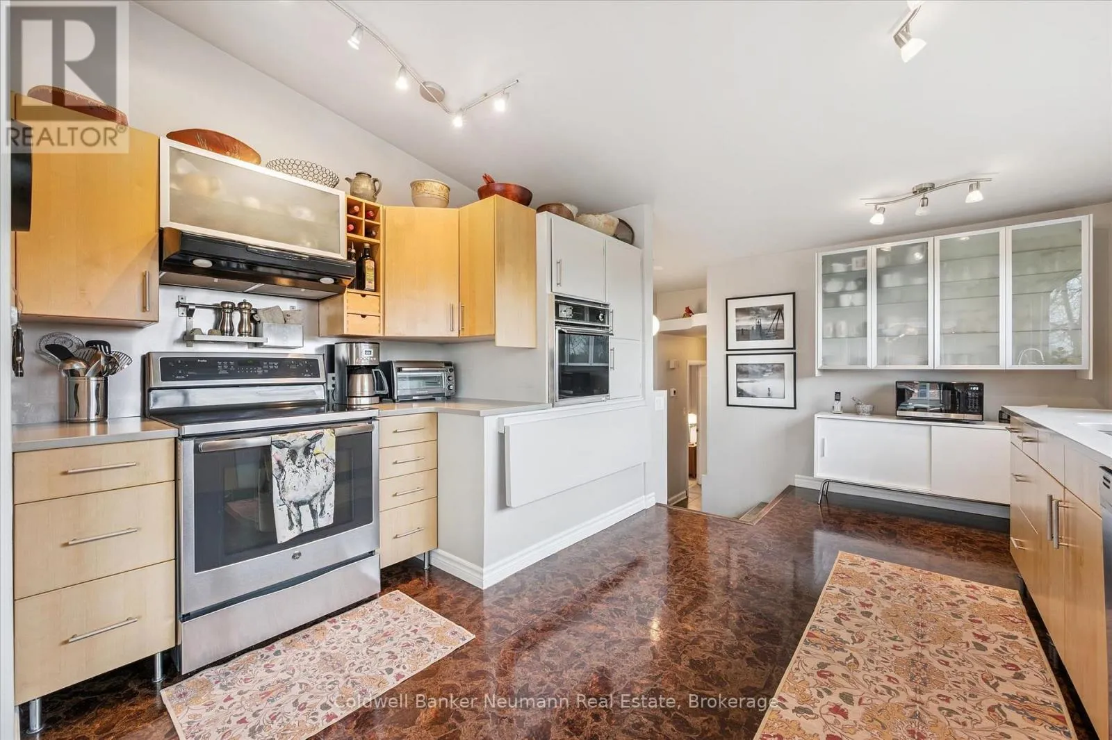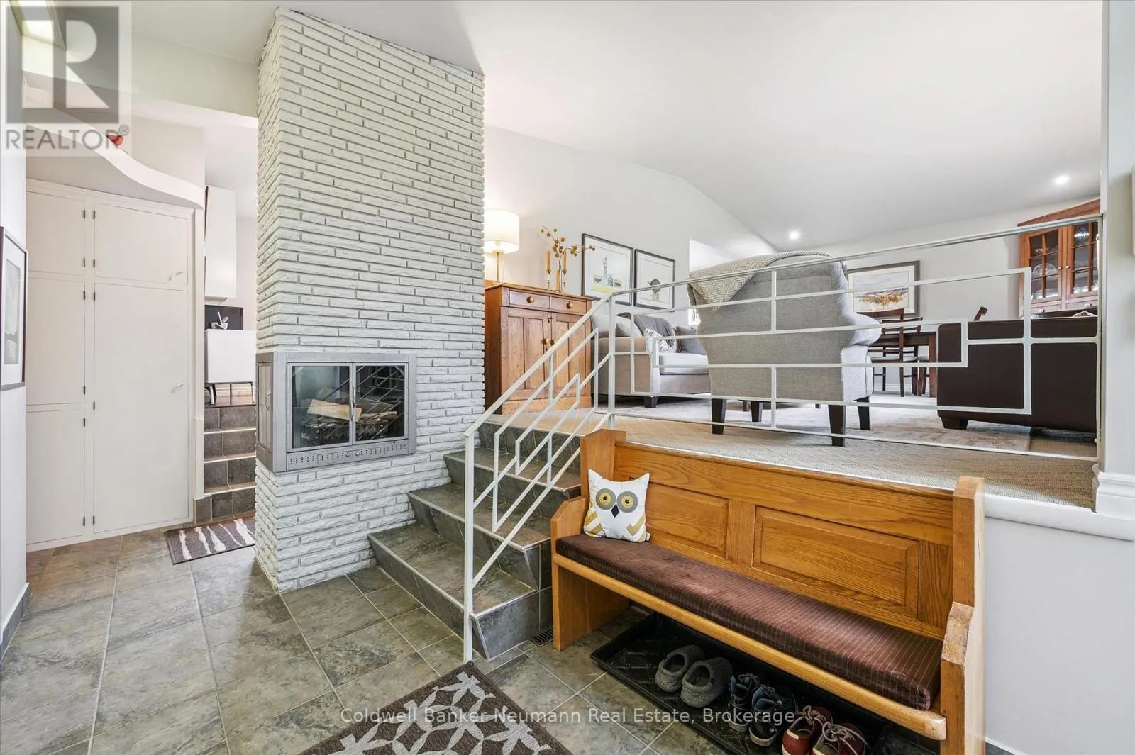 Cross Streets: Gordon at Dean. ** Directions: Gordon to Dean to Harcourt. Welcome to this architectural gem, nestled in Guelph's coveted Old University neighbourhood. This mid-century modern home commands panoramic views of downtown Guelph, proudly perched atop Gordon Street hill.Upon entry, a striking corner fireplace pays homage to classic mid-century design, immediately setting the tone for the home's timeless character and warmth. Thoughtfully designed for both everyday living and effortless entertaining, the home features an open-concept kitchen with an eat-in dining area framed by floor-to-ceiling windows overlooking the private backyard. This space flows smoothly into a sunlit living and dining room, where expansive front-facing views create an inviting atmosphere-ideal for hosting and relaxing. Adjacent to the kitchen, a beautifully appointed TV room is surrounded by windows on three sides, immersing the space in natural light and offering direct access to the deck. This private outdoor retreat overlooks the meticulously manicured yard and faces west-delivering unobstructed views and sunsets, all year-round.The primary bedroom enjoys peaceful views over the front yard, while the second bedroom overlooks the lush backyard. Both rooms feature generous built-in storage and ample closet space accompanied by a well-appointed four-piece bathroom. The lower-level walkout features a third bedroom which provides flexibility for growing families or guests, complemented by a three-piece bathroom. Additionally, there is a versatile space offering both an office and guest sleeping quarters. This walkout level connects seamlessly to the backyard and includes a mudroom with access to the laundry area and garage, offering both functionality and convenience. The backyard is exceptional, showcasing mature evergreens and meticulously maintained garden beds within a fully fenced setting. Lovingly maintained and thoughtfully cared for, this is a once-in-a-lifetime opportunity to own a distinctive piece of Guelph's architectural heritage. (id:27476)