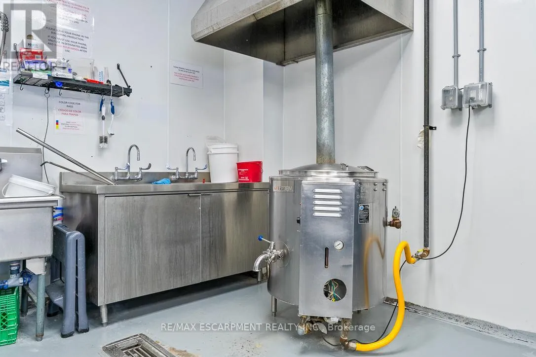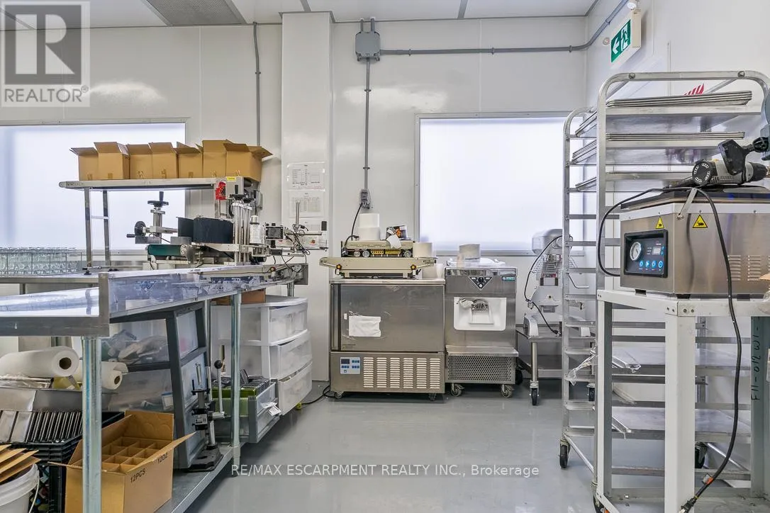 Elmira Rd N Exceptional opportunity to acquire an immaculate 2,100 sq. ft. industrial condo in one of North Guelph's most sought-after commercial hubs. This prime end-to-end unit is currently optimized for high-standard food production, featuring integrated clean rooms and extensive storage solutions that offer a "plug-and-play" advantage for specialized operators. The versatile B4 zoning permits a wide array of industrial and commercial uses, providing long-term investment flexibility. The functional layout includes a professional reception area, a private restroom, and a 10' x 12' grade-level overhead door with an automatic opener for seamless shipping and receiving. Situated in a high-visibility, high-traffic plaza with rapid access to major highways and exceptionally low condo fees, this well-maintained asset is perfect for owner-occupiers or savvy investors. City permits are available; Buyers/Agents to verify all zoning and permitted uses. (id:27476)