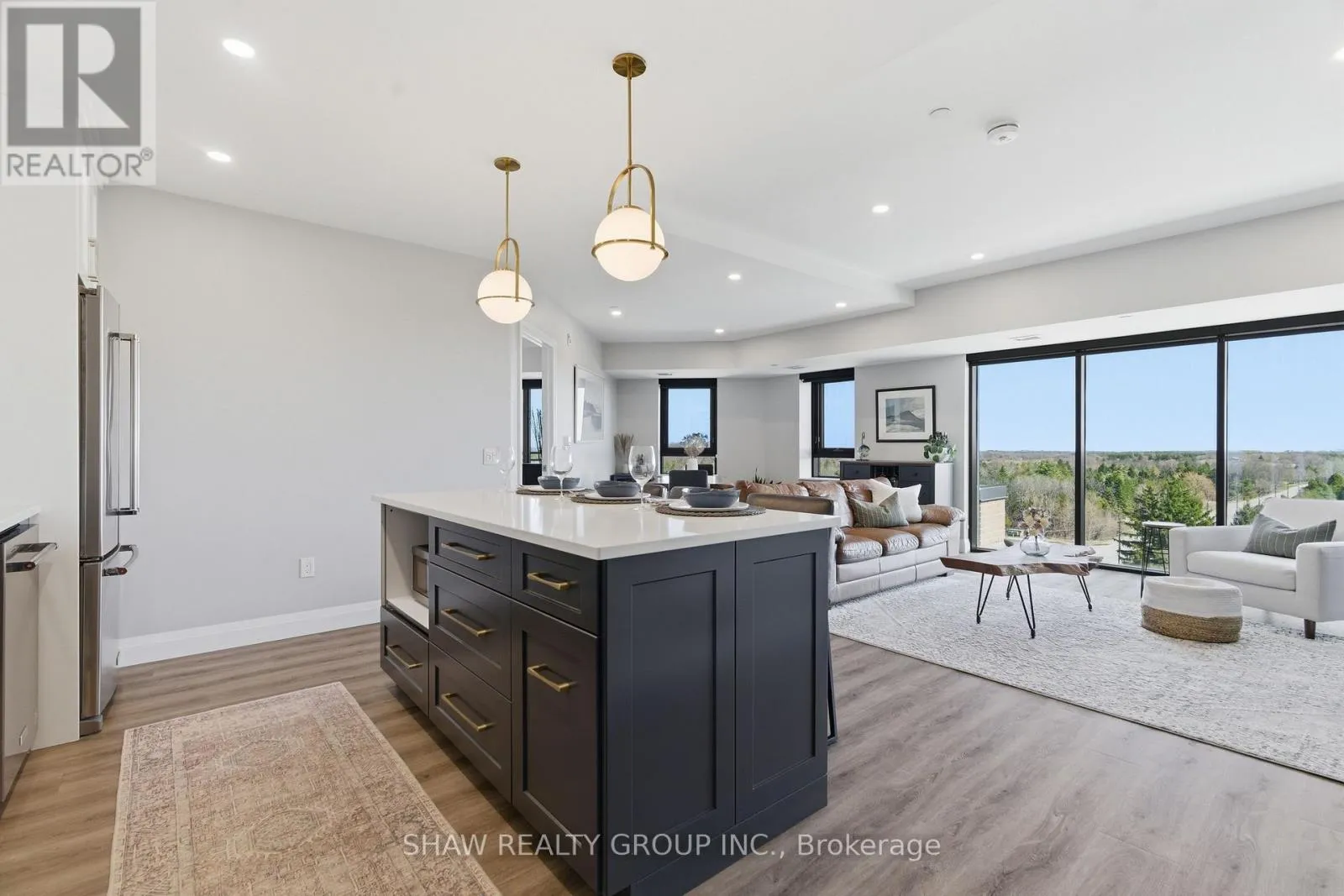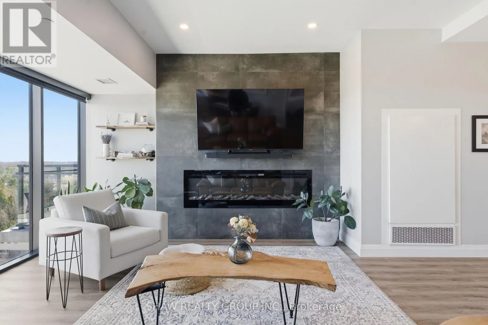 Cross Streets: GORDON ST / POPPY DR W. ** Directions: CLAIR RD W TO GORDON TO TO GOSLING GARDENS. Welcome to penthouse living at its finest in the heart of South Guelph. Perched above the trees, this renovated 2-bedroom, 2-bathroom condo offers a rare combination of privacy, space, and truly unobstructed views of lush greenery. Spanning just under 1,300 square feet, the thoughtful floor plan offers an ideal balance of open-concept living and well-separated bedroom spaces-perfect for both everyday comfort and entertaining. The main living area is flooded with natural light from expansive floor-to-ceiling windows, creating a bright and inviting atmosphere while showcasing the stunning panoramic views. Fully renovated from top to bottom, this suite features modern finishes throughout, including stylish accent walls and a sleek built-in fireplace with TV mount-creating a true focal point in the living space. The kitchen connects to the dining and living areas, making it ideal for hosting or relaxing. The spacious primary bedroom retreat includes walk-in closet and a beautifully updated ensuite, while the second bedroom offers flexibility for guests, an office, or growing family. Enjoy the luxury of two private balconies-perfect for coffee, unwinding, or simply taking in the peaceful surroundings. With desirable southern exposure, the unit is bathed in natural sunlight throughout the day. This condo offers a low-maintenance lifestyle-no stairs, no grass to cut, and no snow to shovel. Underground parking adds year-round convenience and ease. Residents also enjoy access to premium building amenities, including a fully equipped gym, a stylish party room for entertaining, and a dedicated media room-adding even more value and lifestyle appeal to this exceptional property. Located just minutes from everything you need, you're only a 5-minute drive to the highway and just 2 minutes from grocery stores, dining, gyms, and parks-offering the perfect blend of tranquility and accessibility. A rare penthouse opportunity in one of Guelph's most sought-after neighbourhoods. (id:27476)