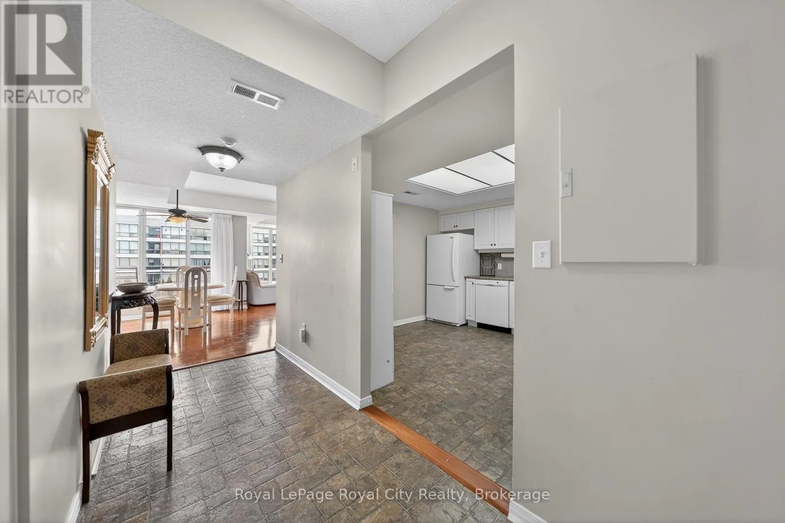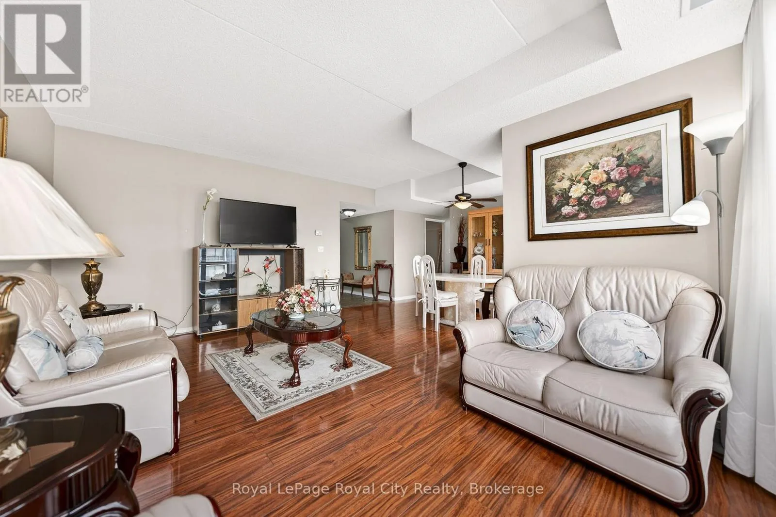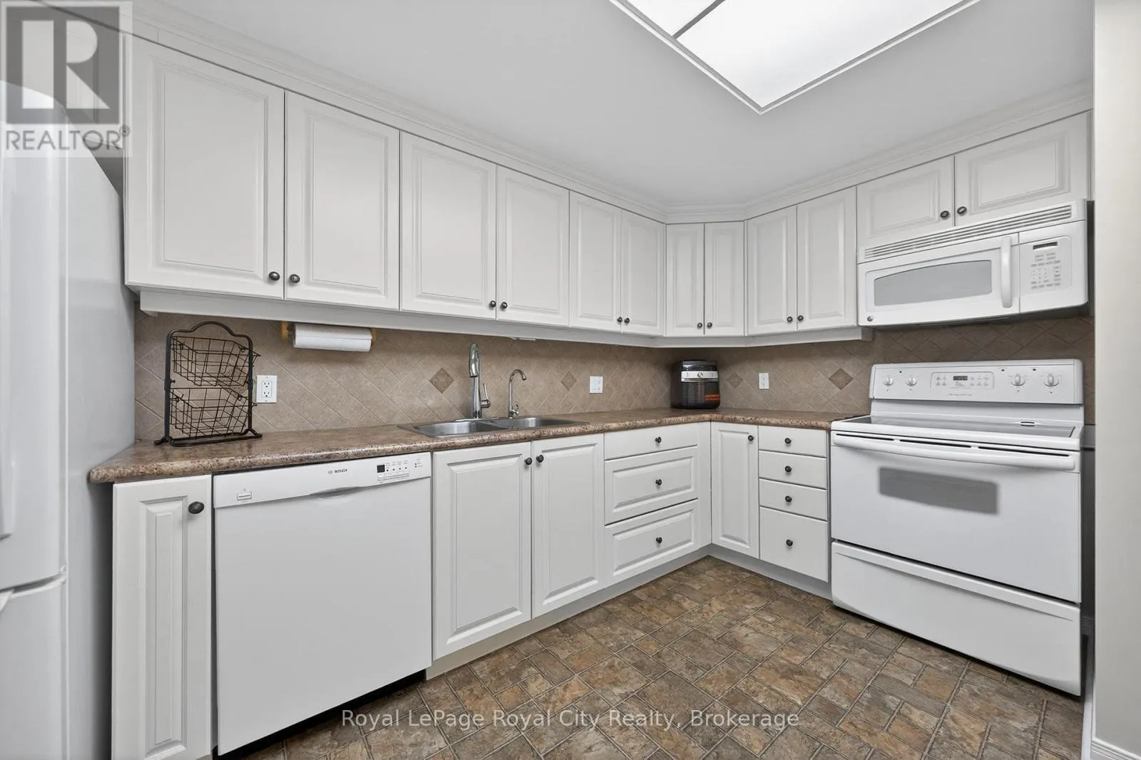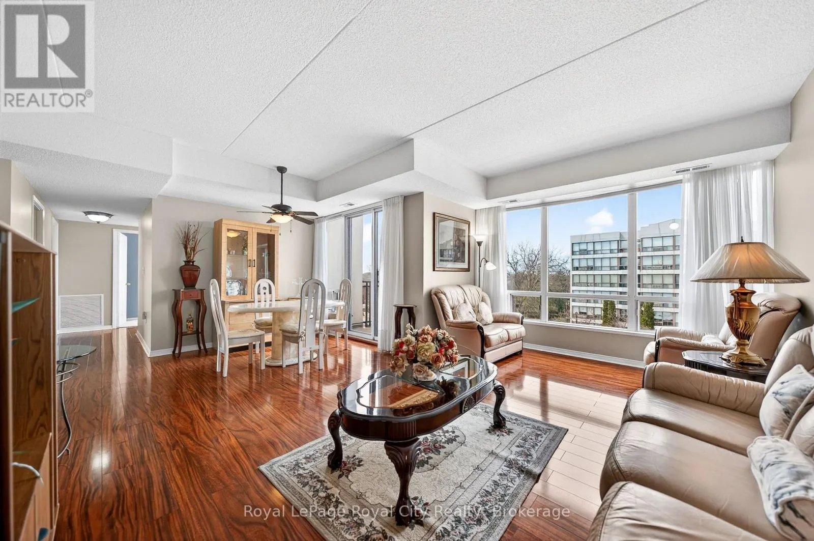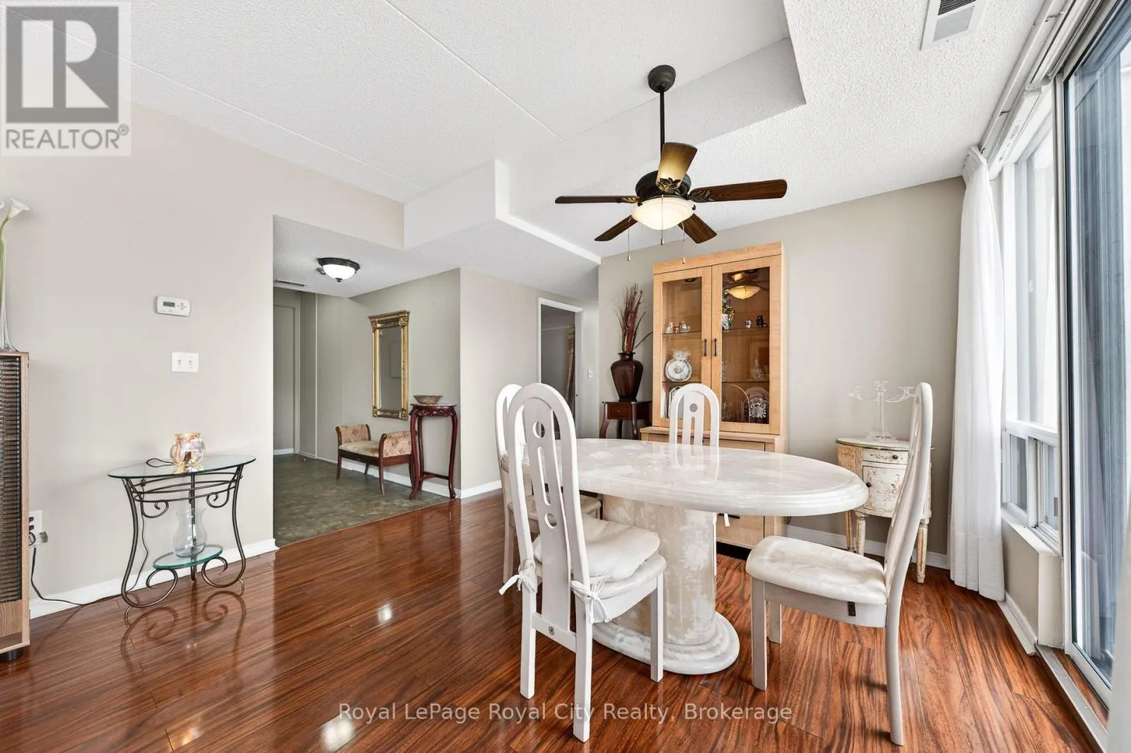Cross Streets: London Road West. ** Directions: Between Paisley Road West & Willow Road. This is one of those condos where the space and natural light just make you feel good the moment you walk in. As a corner unit, it is one of the largest in this quiet building, offering over 1,300 sq/ft of living space that feels open, airy, and incredibly bright. It is rare to find this much square footage in a condo setting, making it a perfect opportunity for anyone looking for the comfort of a house with the low-maintenance lifestyle of a condo. The living room layout is a real standout here. It is flooded with sun thanks to the high 8.5-foot ceilings and large windows that wrap around the unit, all featuring premium Hunter Douglas blinds. The kitchen is clean and functional, offering a practical setup with a classic tiled backsplash and everything you need for family gatherings or those nights filled with friends and laughs. The flow is perfect for day-to-day life, featuring a separate dining room for family meals and a private balcony that offers a nice, quiet spot to unwind at the end of a long day. You will find 3 generous bedrooms along with 2 full bathrooms. This includes a large main bedroom that serves as a true retreat, featuring its own private 3-piece ensuite bathroom. The home has been meticulously cared for and features quality vinyl flooring and fresh paint throughout, meaning you can move in and start enjoying the space immediately without the stress of a renovation. For extra convenience, the water is already included in your monthly fees, which makes budgeting simple and easy. Includes a large locker for storage, giving you extra space. Located in Guelph's West End, you are just a short walk to local shopping, grocery stores, and essential bus routes. You are also only a quick drive to the Hanlon Expressway, the University of Guelph, and everything else you need in the city. If you have been looking for a move-in-ready home that offers more space than your typical condo in a mature and serene setting, this is definitely one to see for yourself. (id:27476)