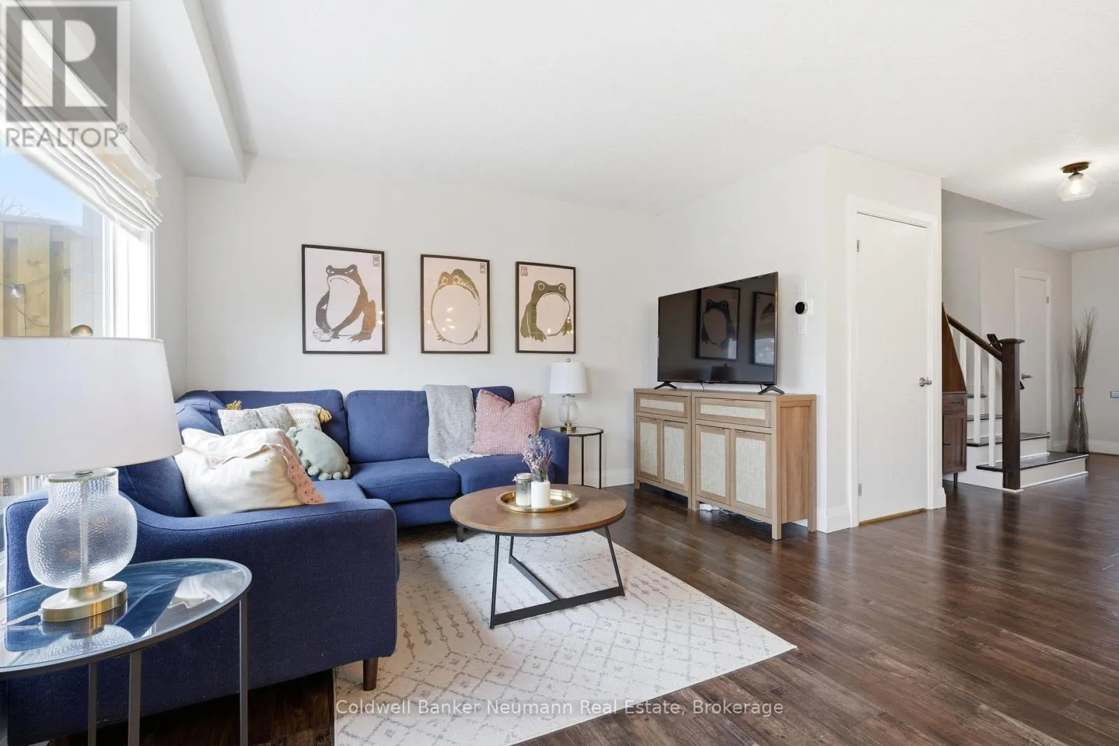 Cross Streets: Inverness/Simmonds. ** Directions: Victoria Road N. to Simmonds Drive, turn west (left), south on Wilton Road, property on right. Chic and completely move-in ready freehold townhome in Guelph's north end. Spacious, open concept, Reid's Heritage-built 2-storey home with 3 bedrooms and 3 baths. As you enter, you are welcomed into the custom white kitchen with dark granite counters, farmer's sink, stainless steel appliances, under cabinet lighting, and pendulum lighting over a handy breakfast bar. Bright and airy living and dining space, with a sliding door that leads out to the newer deck (2024) and spacious, fully fenced yard (2024). Convenient access to the yard via alleyway from garage as well - ideal for bringing your patio furniture, BBQ or lawn maintenance tools through! There is also an updated main floor 2pc with white vanity, chic gold hardware and shiplap accents. Upstairs are 3 sizeable bedrooms, a 4pc bath with wainscotting, updated white vanity, trendy dark hardware and tub insert. The primary bedroom is enormous and bright, with tons of natural light and dual closets. Downstairs, you will find a fully finished basement, with large rec room, ideal for entertainment/theater room, play area or gym setup. Another recently updated 2pc bath with white vanity and charcoal honeycomb tile flooring offer convenience when entertaining. Engineered hardwood floors through main and upper level, LVP in basement - completely carpet free! All light fixtures have been updated. Furnace and AC are newer as well (2020 and 2021, respectively)! Parking for 3 cars (1 car in garage and 2 tandem in driveway). Ideal starter or young family home, located on a quiet street that is close to neighbourhood parks and walking trails that lead to the beauty and nature at Guelph Lake, or connect to downtown. Easy access to amenities, or to head to KW, Elmira, Fergus or Erin! (id:27476)
