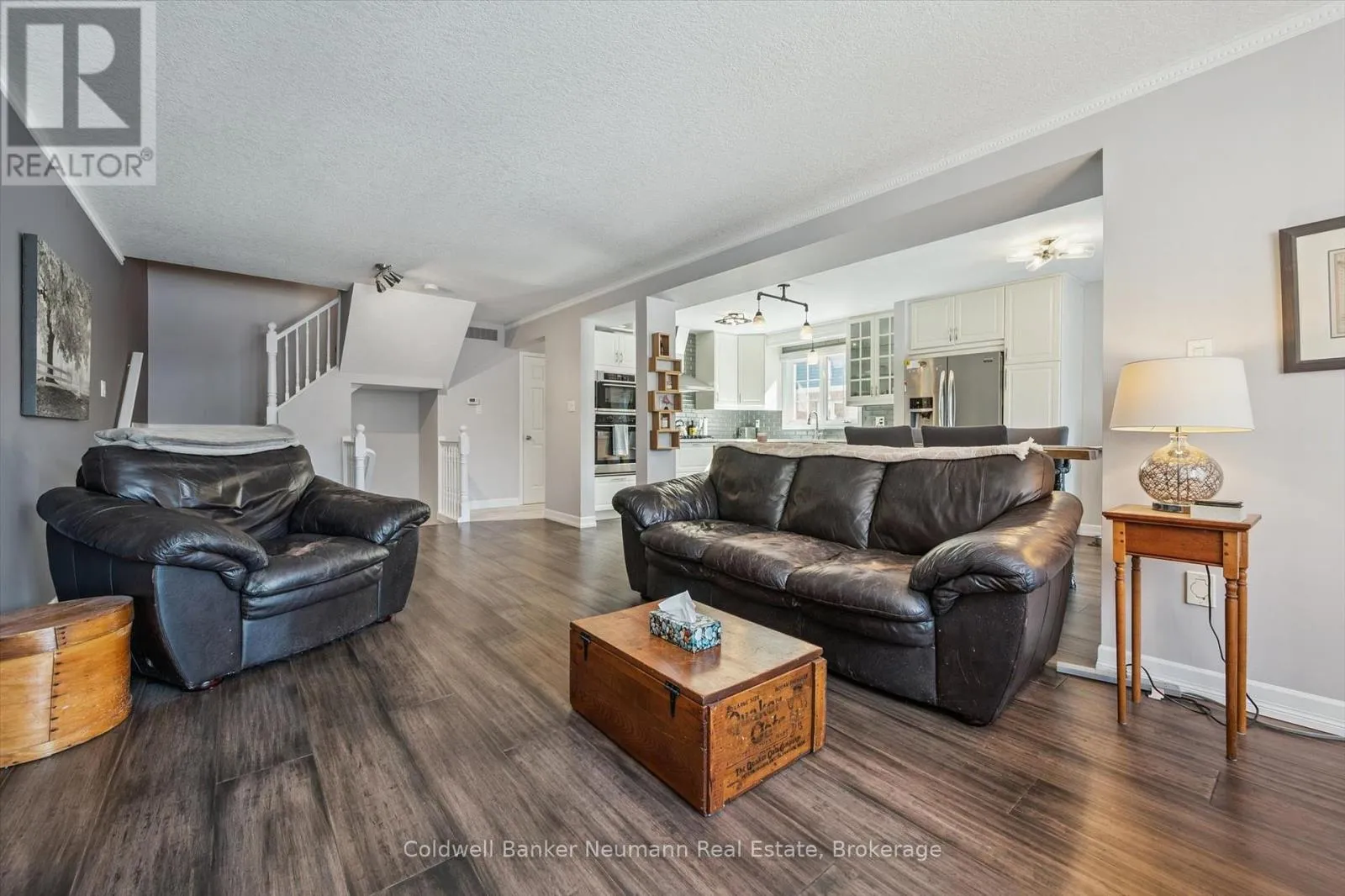 Gordon x Kortright Discover the perfect blend of comfort and community in this spotless townhouse, set within the established Parc Place complex in Guelph's Kortright West neighbourhood. One of the desired back units, this home sits against a backdrop of manicured green space, delivering the kind of quiet, private setting that rarely comes available in this community. The interior impresses with a sun-filled, open-concept layout anchored by a stylishly updated kitchen, complete with a built-in wall oven and microwave. Flowing naturally from the living and dining areas, the oversized rear deck with a gas BBQ hookup makes outdoor living effortless, whether you're hosting friends or enjoying a quiet evening outside. Three bedrooms and four bathrooms offer plenty of room for the whole family, while the fully finished and updated basement adds valuable flexibility, equally suited as a family room, guest suite, or dedicated workspace. Parc Place residents enjoy resort-style amenities, including a pool and tennis courts, all while being steps to a bus route and a short drive to the University of Guelph, parks, shopping, and Highway 401. Move-in ready, meticulously cared for, and ideally located. This one checks every box. (id:27476)