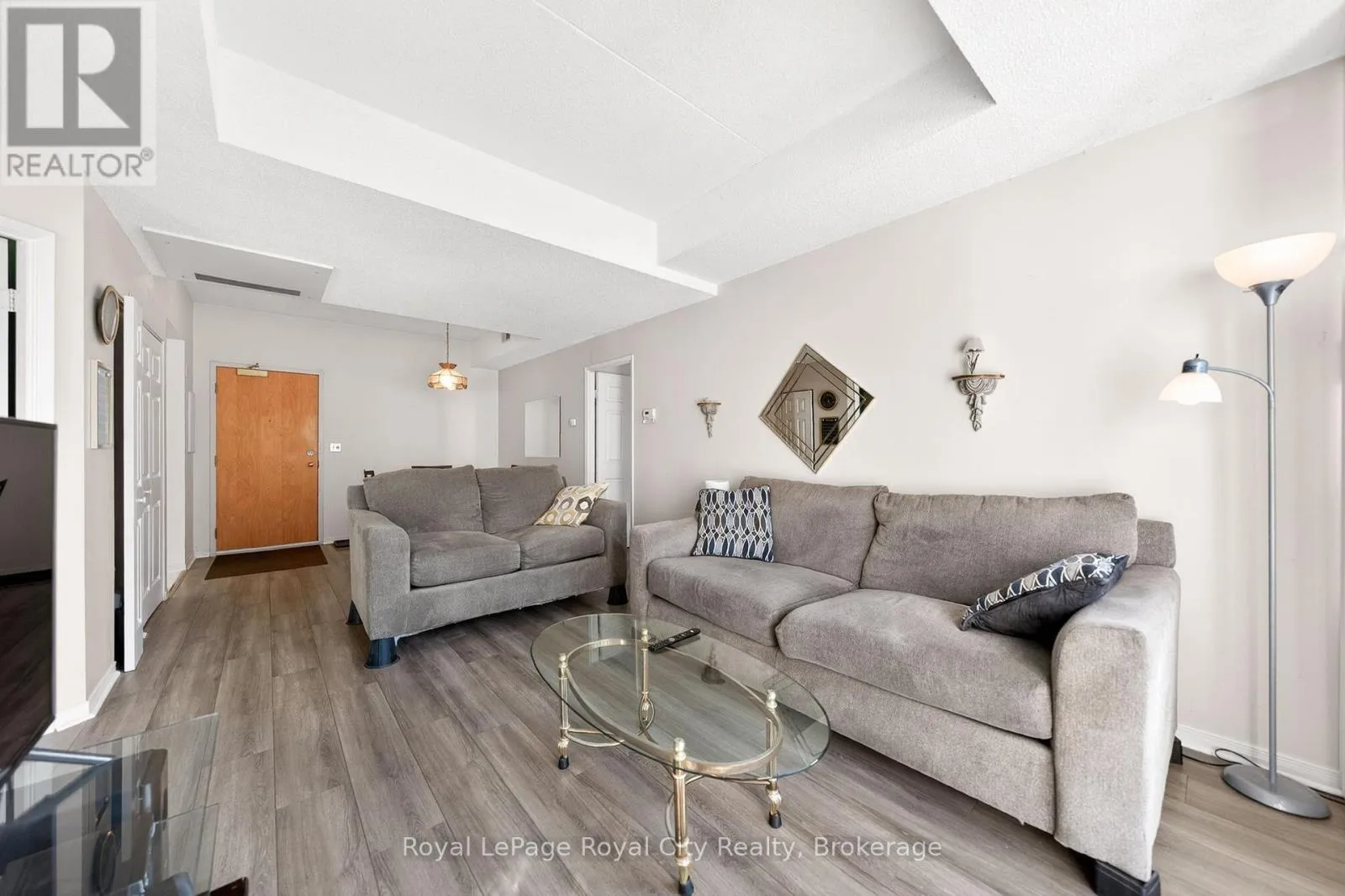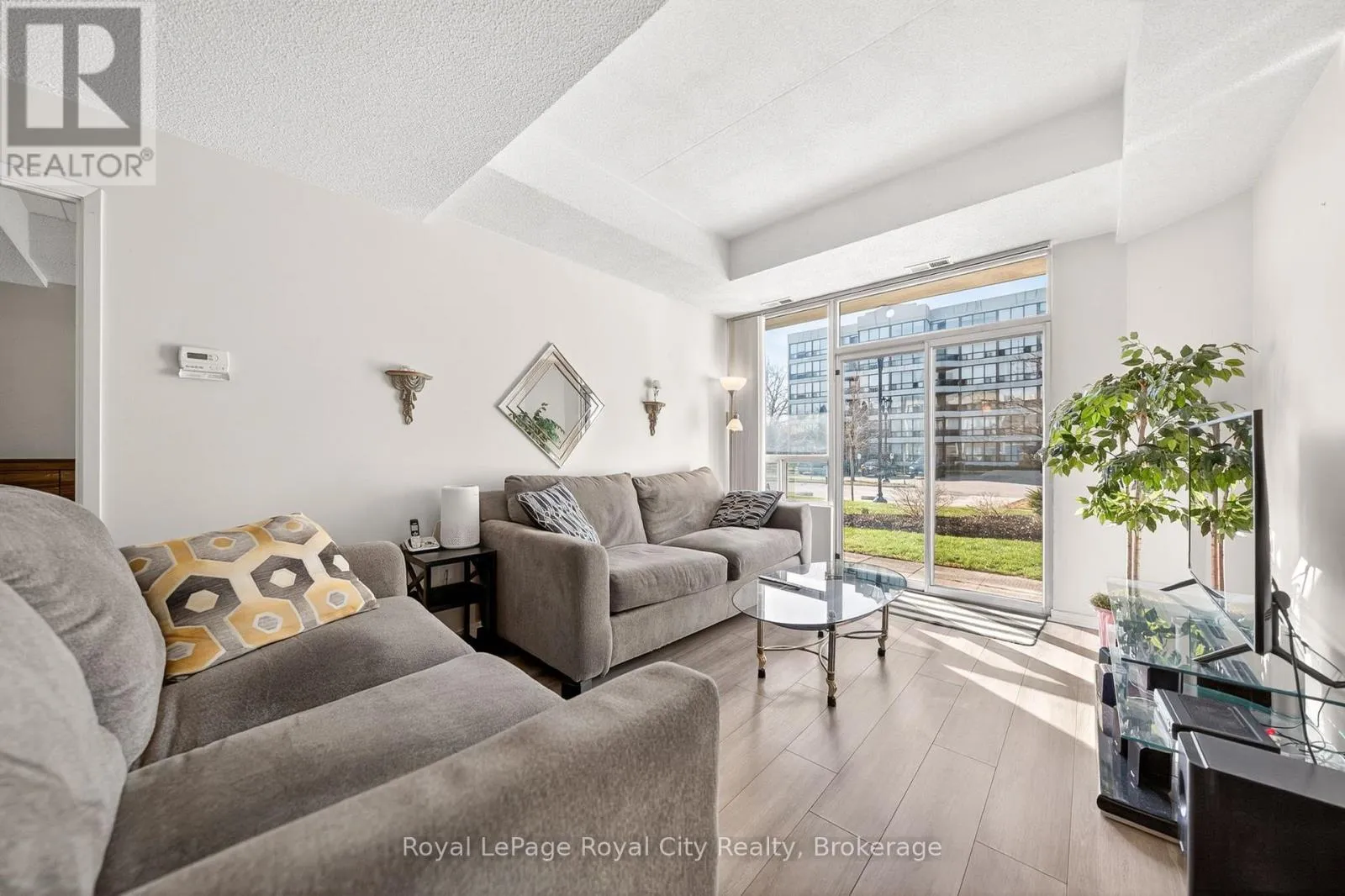 Cross Streets: Paisley Road or Willow Road. ** Directions: Willow Road to Bagot St. Welcome Home to this hidden gem in a peaceful, well-maintained community that offers a quiet and intimate setting. Whether you're a first-time homebuyer or looking to downsize, this charming 2-bedroom, 2-bathroom condo offers the ideal blend of comfort, convenience, and low-maintenance living. Step inside to an inviting open-concept living and dining area perfect for relaxing or entertaining. Enjoy the well appointed kitchen and the convenience of in-suite laundry. Thoughtfully designed with practical living in mind, this unit offers an abundance of natural light from large west-facing windows. Walk directly from your parking spot right to your private garden-level entrance, no stairs, no hassle. Love to garden? A small plot just outside your terrace door lets you enjoy the outdoors without the burden of full yard maintenance.Your condo fees include water and common area maintenance providing worry-free living. Lock up and travel with peace of mind. Guests will love the abundance of visitor parking, an uncommon perk in most condo buildings. Walkable to shopping, restaurants, schools, churches and directly on the transit route. Don't miss your chance to live in this warm and welcoming community. Book your showing today! (id:27476)
