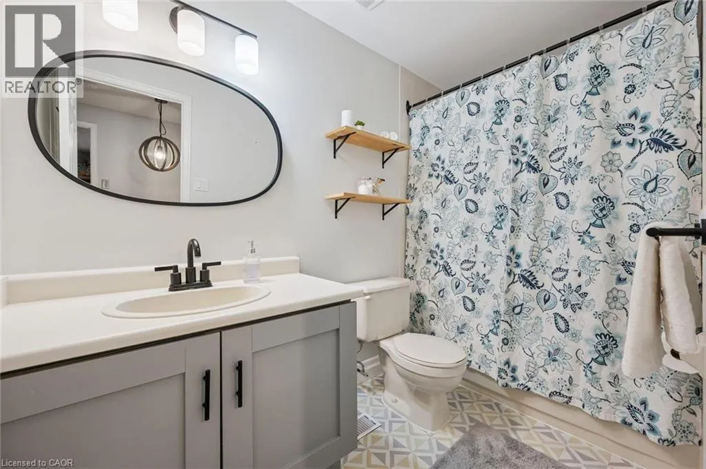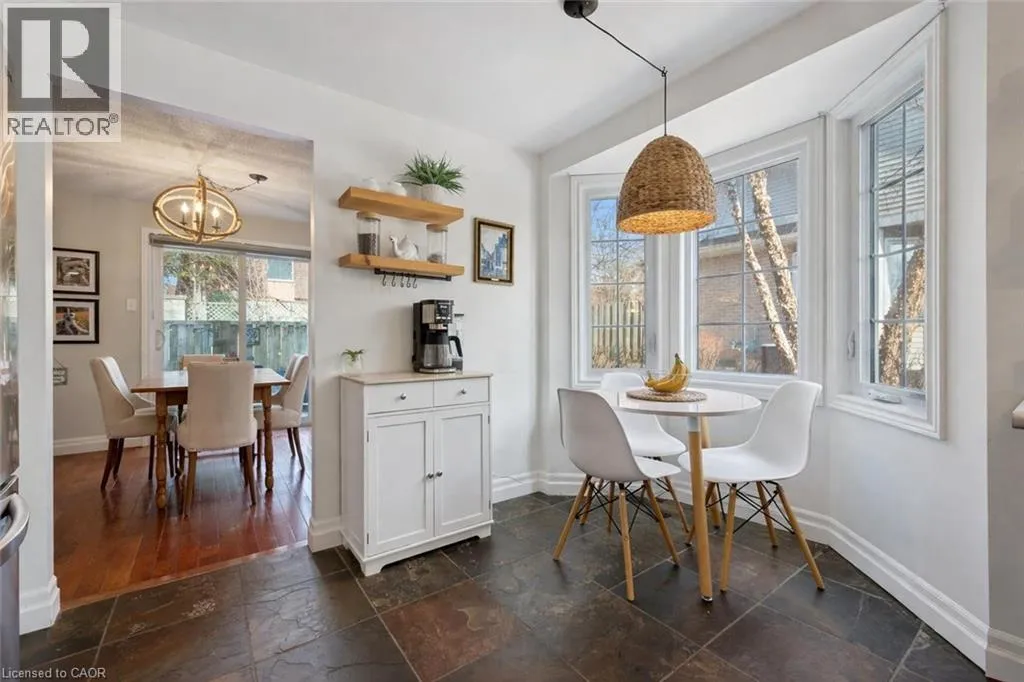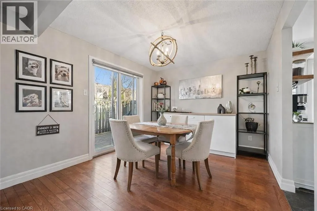 Country Club Dr Beautifully renovated 2-bdrm, 3.5-bath townhome offering stylish move-in-ready living in highly desirable community W/in-ground pool & tennis/pickleball courts! From the moment you step inside youâll notice warmth of hardwood flooring & thoughtful updates throughout. Eat-in kitchen W/sleek grey cabinetry, tile backsplash, S/S appliances & lots of counter space. Rustic wood display shelving adds character while the bay window nook creates perfect spot to enjoy morning coffee surrounded by natural light. Formal dining area offers elegant setting for entertaining W/stunning light fixture & sliding doors that lead to private backyard creating seamless indoor-outdoor flow. Living room W/gas fireplace & custom B/I shelvingâperfect place to unwind at the end of the day. Convenient 2pc bath completes this level. Upstairs the primary bdrm offers hardwood, large windows & W/I closet. A versatile nook within the room offers perfect space for a dressing area, home office or reading corner. Ensuite is tastefully updated W/stylish vanity. 2nd bdrm offers custom B/Is & is complemented by 4pc bath W/large vanity & shower/tub. Finished lower level offers incredible versatility W/rec area highlighted by stylish shiplap fireplace & rustic wood mantel creating a warm elevated feel. Updated bathroom W/modern vanity & dedicated laundry room complete this level. Meticulously maintained & thoughtfully updated: furnace 2019, water softener 2021 & HWT 2023. Step outside to private fully fenced backyard W/large deck, mature trees & lots of space to relax & entertain. Residents of this well-maintained complex enjoy access to inground pool, tennis & pickleball courts & visitor parkingâall the benefits without the maintenance. Nearby walking path connects to Royal Recreational Trail offering riverside pathways leading all the way to Guelph Lake. Short walk to Riverside Park, nearby golf course & amenities. Complete W/attached 1-car garage this is truly a turnkey opportunityâjust move in & enjoy (id:27476)