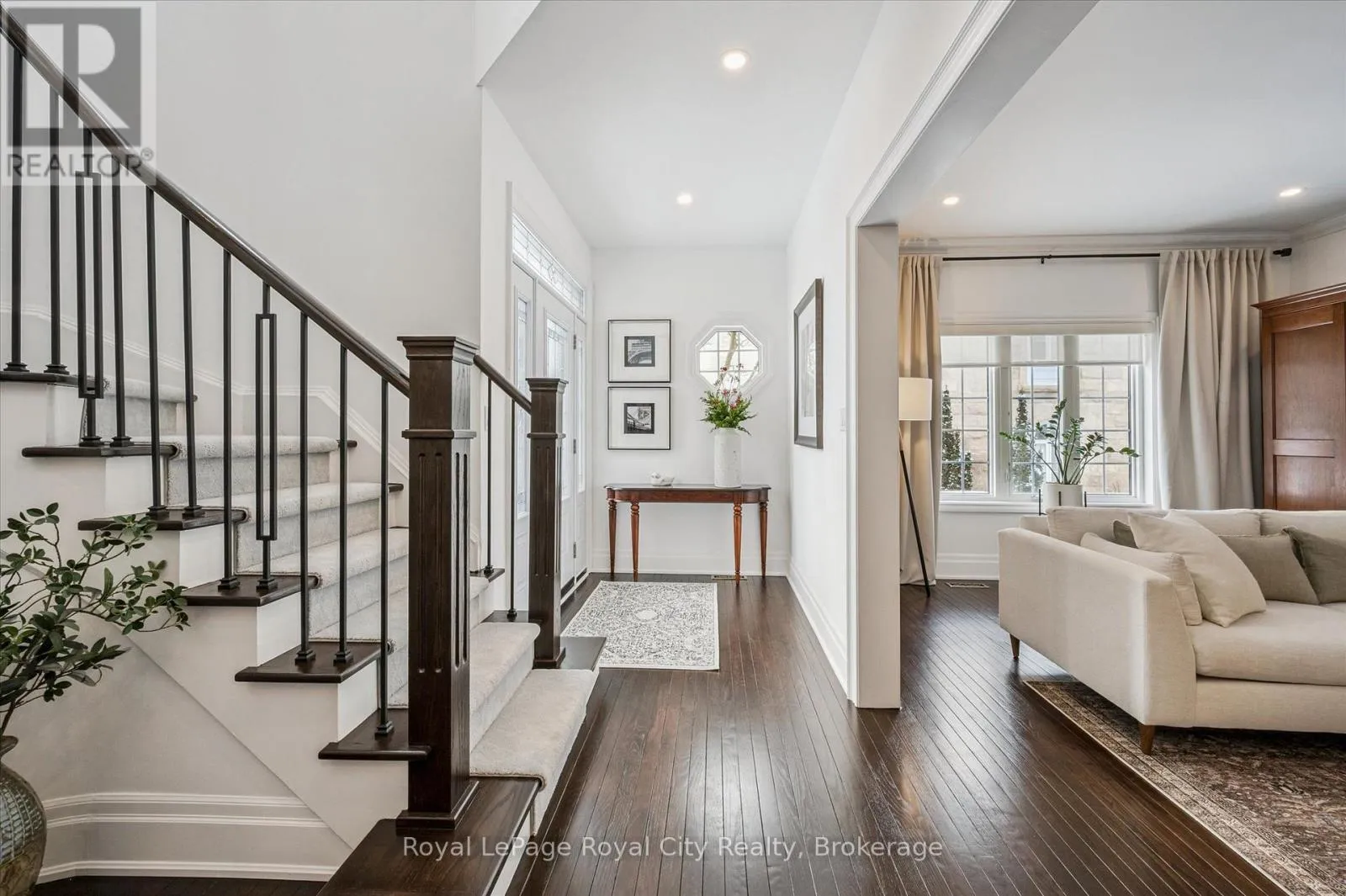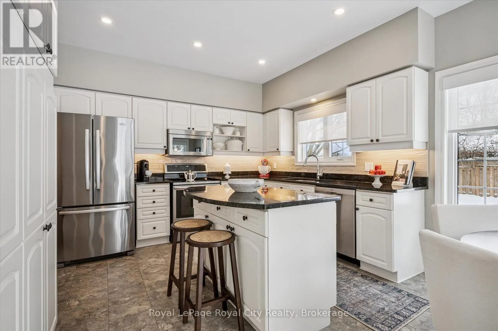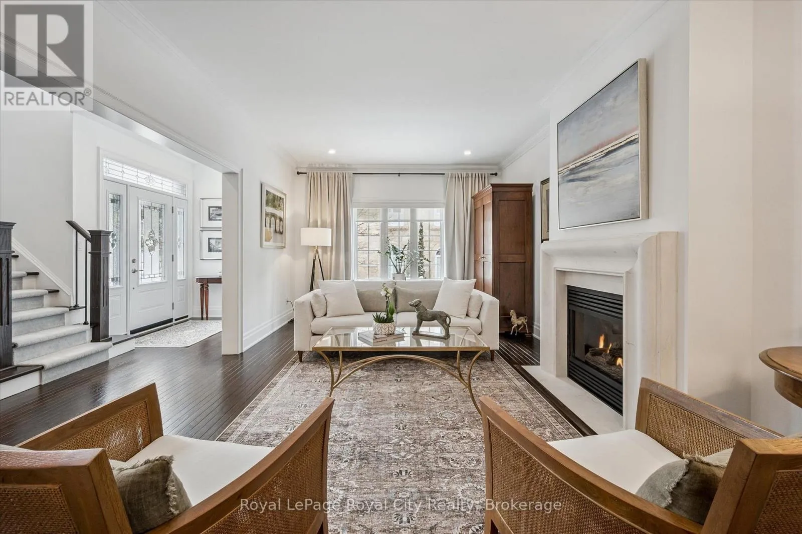Cross Streets: Edinburgh Rd and Manor Park Cres. ** Directions: Edinburgh Rd. to Manor Park Cres. Enter through front gates & home is on the left around the loop of the crescent. Tucked away in Manor Park Mews, a charming cul-de-sac of just 12 detached homes surrounding the historic Manor Park house, this impressive stone home is designed for both everyday comfort and elegant entertaining. The main floor welcomes you with a stunning entry, rich hardwood floors, crown moulding, recessed lighting, and custom blinds throughout. A gracious living room with fireplace flows seamlessly into the formal dining room, where a statement chandelier creates an inviting setting for memorable gatherings. The bright, eat-in kitchen features stainless steel appliances, granite countertops accented by under-cabinet lighting, and a breakfast area with a walkout to the spacious backyard. A classic curved staircase leads to the upper level, where a generous landing with a sitting area enhances the sense of space and light. All three bedrooms feature their own private ensuite, offering exceptional comfort and privacy. The primary suite is a true retreat, complete with a walk-in closet and spa-inspired ensuite with soaker tub. A convenient second-floor laundry room adds everyday ease. Set along the riverbank with direct access to scenic walking trails and a community tennis court, this home offers a fabulous low-maintenance lifestyle just steps from downtown shops, cafés, and restaurants! (id:27476)