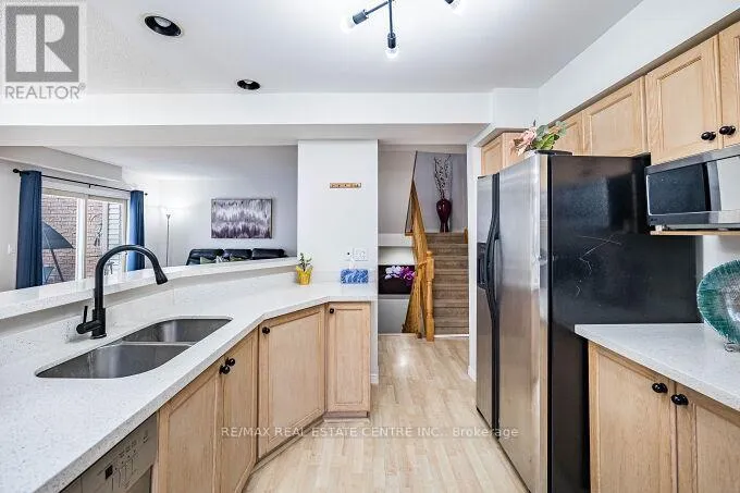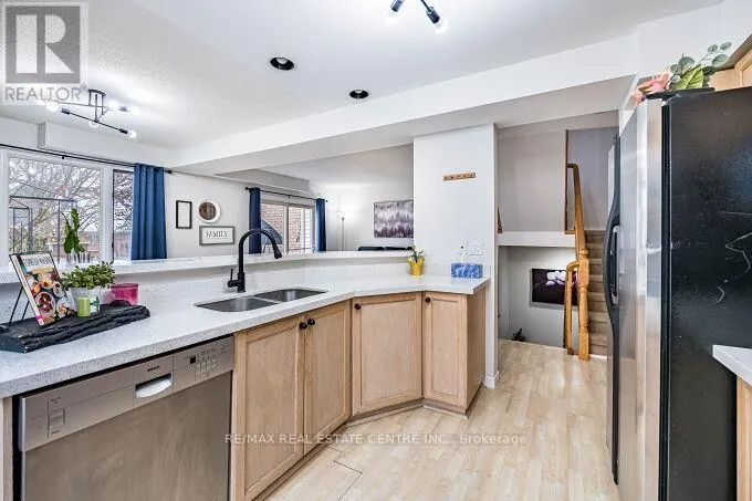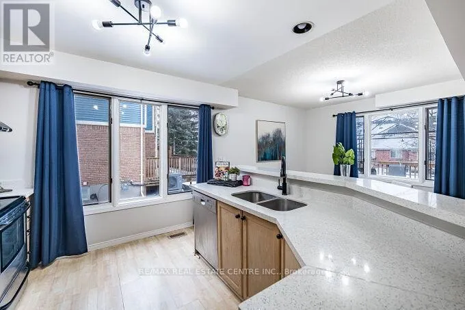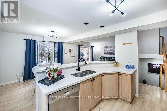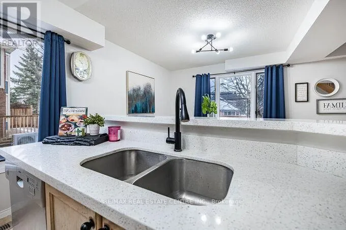 Cross Streets: Kortright Rd W & Gordon St. ** Directions: North-West corner of Kortright Rd W. Welcome to this prime townhome in a desirable location, featuring 3 bedrooms, 4 bathrooms, and a spacious 24 ft deck overlooking meticulously maintained lawns. Laminate flooring enhances the open-concept main floor, allowing for abundant natural light. Upstairs, three generous bedrooms include a master with an ensuite and walk-in closet, along with a main bathroom. The finished basement offers versatility with a kitchen, a four-piece bathroom, and a large recreation room featuring a cozy gas fireplace. Ideal for those seeking comfort, space, and a serene environment. A smart investment opportunity with its multifunctional layout and proximity to parks, schools, transit, hospital, Rec. and more. Schedule a viewing to explore this property's full potential.(Photos shown were taken during a previous staging and may not reflect the property's current presentation.) (id:27476)