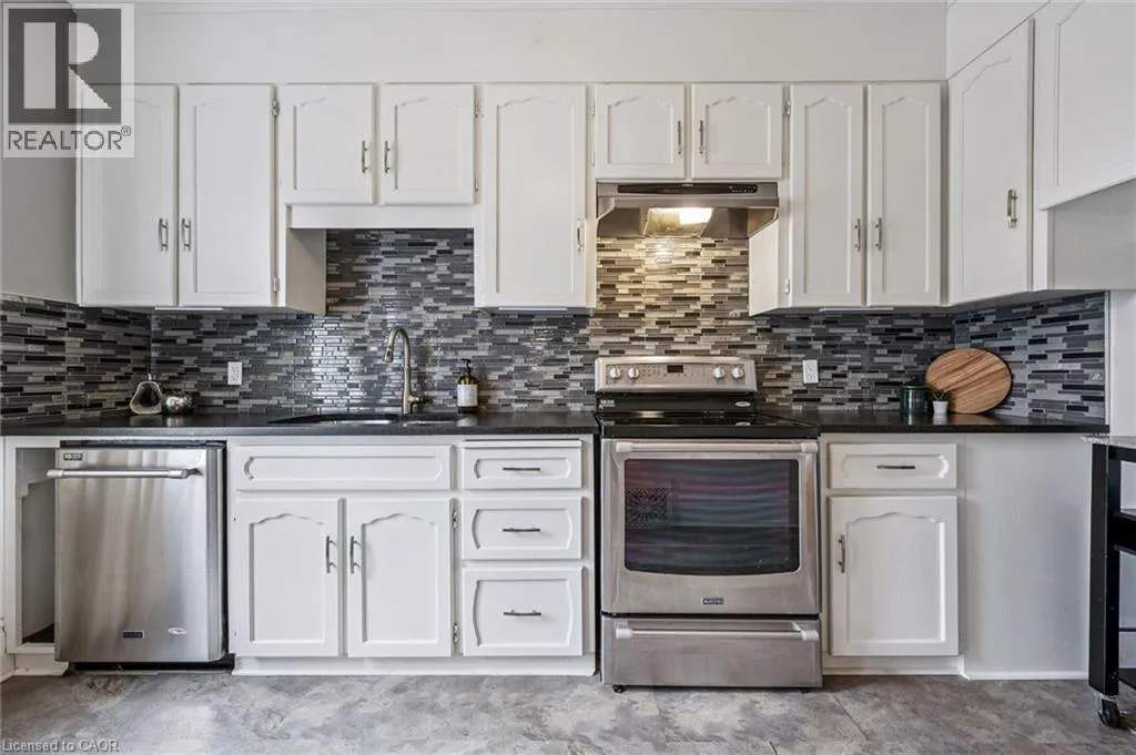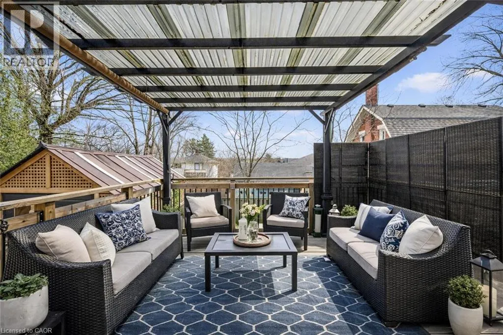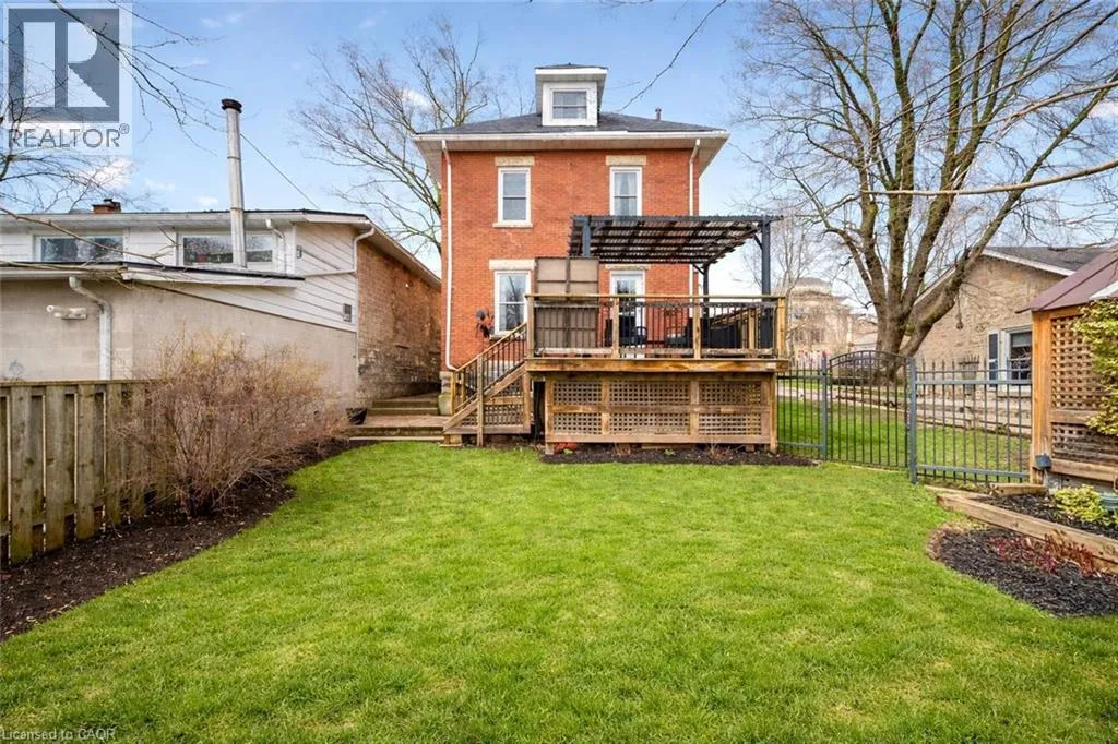 Yorkshire St S 166 Waterloo Ave is a beautifully updated 4-bdrm red brick century home that blends timeless charm W/modern comfort in one of Guelphâs most desirable central locations! Youâre welcomed by charming enclosed sunroomâinviting space to enjoy your morning coffee while keeping coats & shoes neatly tucked away. Inside glass-panelled French doors open to bright living & dining space where high ceilings, rich hardwood floors & oversized windows fill the home W/natural light. Kitchen has been thoughtfully updated W/white cabinetry, backsplash, S/S appliances & leathered granite countertops. Upstairs, solid wood stairs lead to 3 spacious bdrms each W/hardwood floors & large windows. The main bathroom is well-appointed W/sleek quartz vanity & tiled shower/tub. Large W/I closet offers the potential to be converted into an ensuite W/plumbing already behind the wall. Upper loft level adds incredible flexibility W/2 areas that can be used as 4th bdrm, home office, playroom or secondary living space, perfect for growing families & guests. Finished bsmt extends the living space W/large rec room & gas stove that creates a warm & inviting atmosphere. With separate side entrance & full bathroom this level offers excellent potential for an in-law suite or income opportunity. Step outside to private backyard W/deck, perennial gardens & mature treesâideal for relaxing, entertaining or enjoying quiet evenings. Detached garage along W/ample driveway parking adds everyday convenience. Home has been well maintained W/key updates: windows 2010 & 2017, plumbing & sewer line 2015, 100amp electrical 2015, roof 2021 W/20yr warranty, water softener 2017, hot water tank 2022 & deck 2015. Around the corner from Royal Recreation Trail along the river & only a short walk to downtown, youâll enjoy access to restaurants, boutiques, nightlife, entertainment, GO Station as well as nearby parks & schools. Rare opportunity to own a character-filled home W/modern updates, income potential & unbeatable location (id:27476)