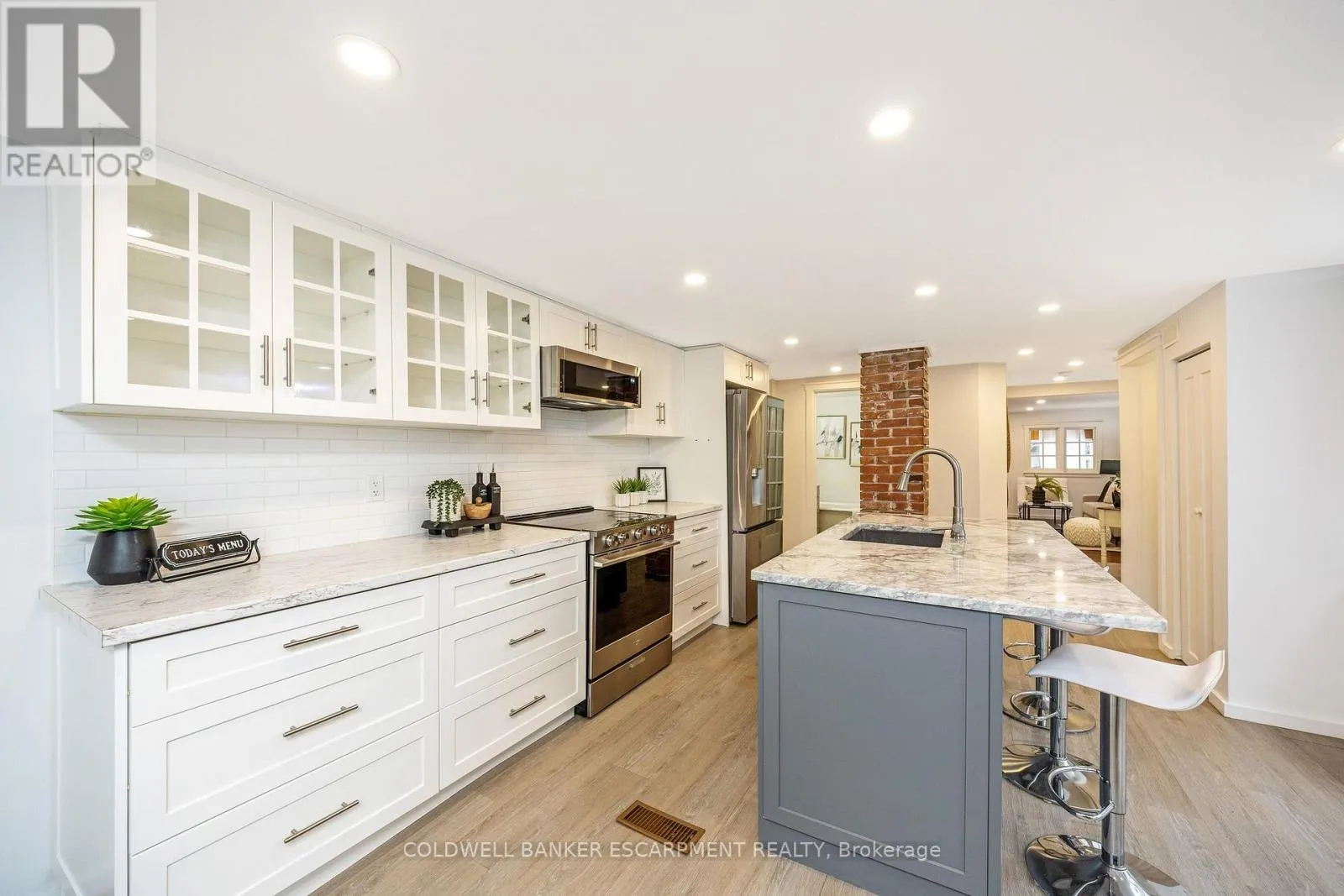 Cross Streets: Palmer & Stevenson. ** Directions: Stevenson to Palmer to Laurine. Looking for Extraordinary? This gorgeous home at 14 Laurine Ave in Guelph's St George's district will have you captivated. Known as the "Rose Cottage", you will appreciate modern upgrades blended with romantic charm. Where granite meets exposed brick and stainless steel dances with frosted glass. Summer breezes carry floral scents from the lush perennial gardens and changing seasons are admired from cozy sunrooms. The updated open concept chef's kitchen is central to the home and the perfect gathering place. Relax in the comfortable living room or lounge in the gracious rear sunroom that offers a flexible transition space between indoor and outdoor living. The second bedroom is tucked towards the rear of the home making it an ideal spot for guests. Turn-key single level living PLUS a spacious basement offering you a clean palette with tons of storage. Steps from John Galt PS, walk to St. George's park, historic downtown Guelph and major retailers/amenities. Forget concrete and condo fees and enjoy the grass under your feet! (id:27476)