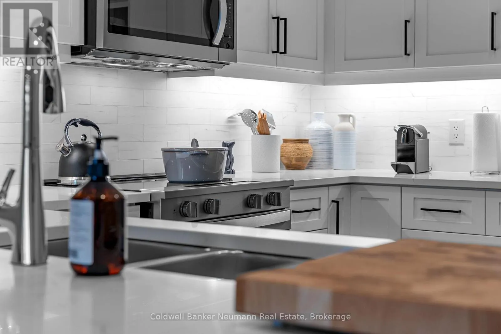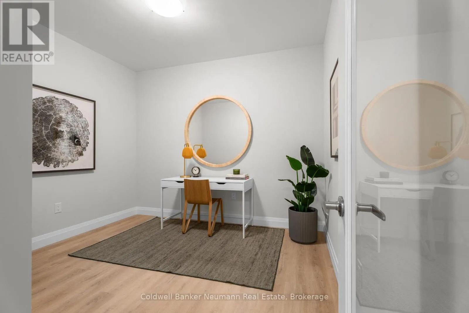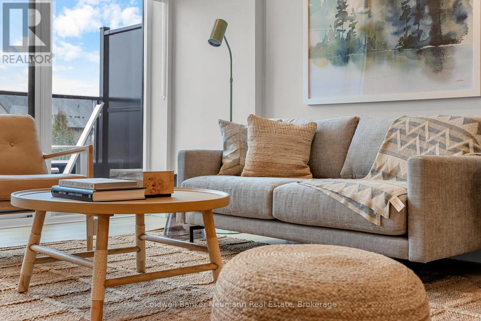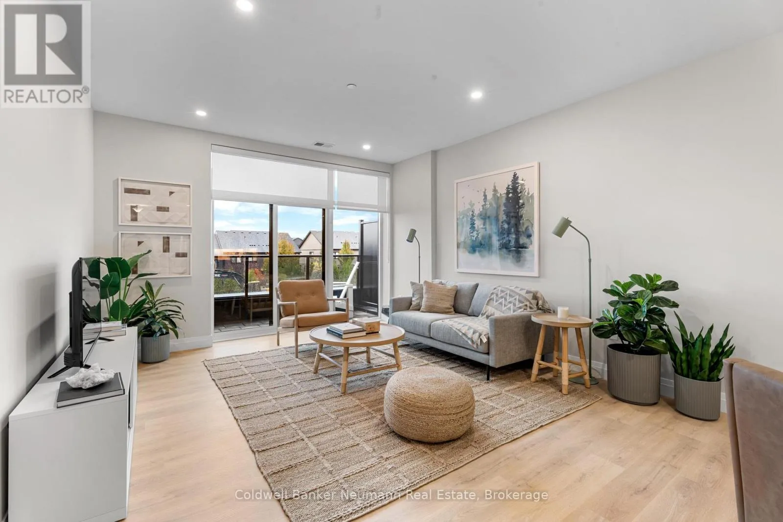 Cross Streets: Gordon St and St. Clair. ** Directions: Gordon St to Gosling. This thoughtfully designed 2-bedroom + den, 2-bath suite offers 1,495 sq ft of well-appointed living space, combining comfort, functionality, and modern design. The open-concept layout seamlessly connects the kitchen, dining, and living areas, creating a space that is both inviting and practical for everyday living and entertaining. The kitchen features ample cabinetry and a functional layout, while large windows fill the space with natural light.The primary bedroom serves as a private retreat, complete with a walk-in closet and ensuite. A second bedroom and separate den provide flexibility for guests, a home office, or additional living space. A private balcony extends the living area outdoors, offering a comfortable place to relax.Residents of Gordon Square III enjoy access to an exceptional selection of amenities, including a residents' lounge, fitness centre, golf simulator, and guest suites, all designed to enhance a low-maintenance lifestyle.Ideally located in Guelph's south end, this home is just minutes from Highway 401, making commuting simple. You're also within close proximity to three major grocery stores, well-known coffee shops, and a variety of restaurants, offering everyday conveniency. (id:27476)