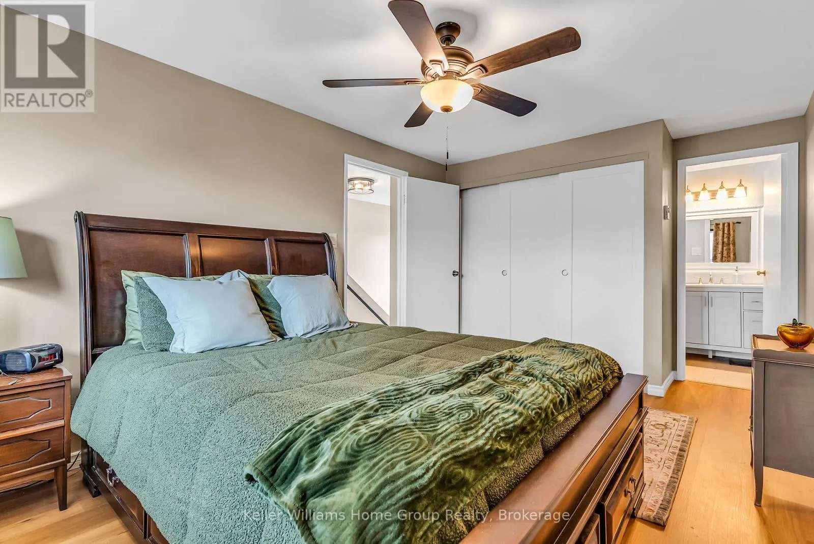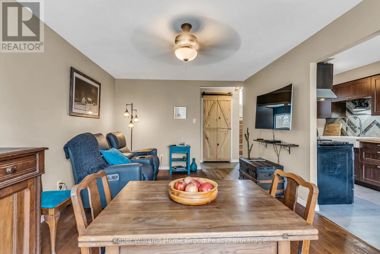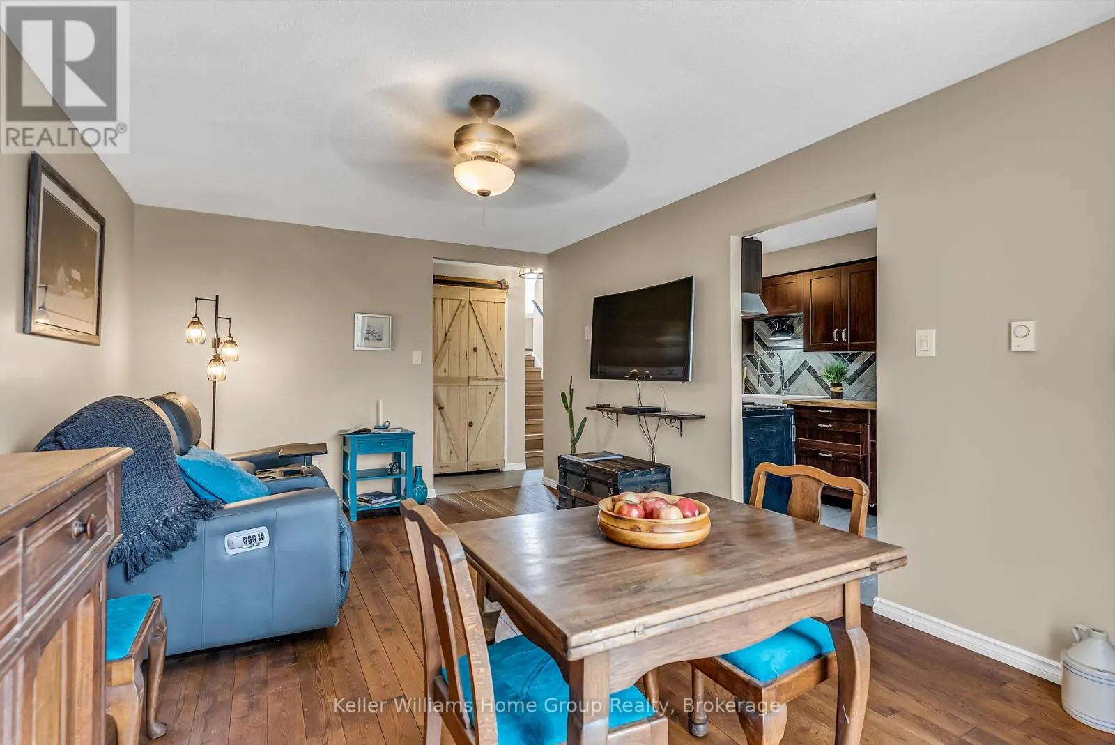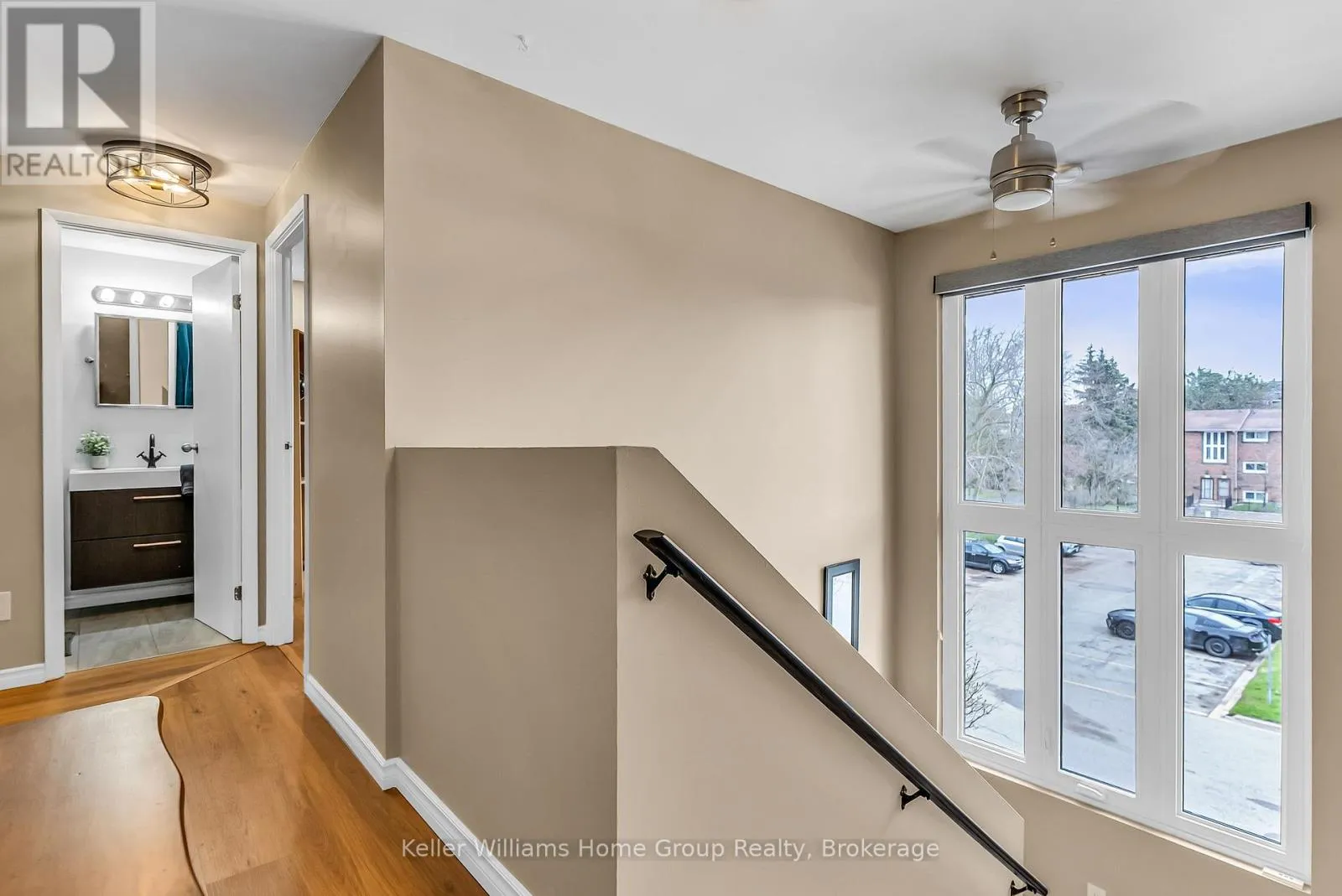 Cross Streets: Willow and Hanlon Pkwy. ** Directions: Hanlon to Willow to Rhonda. Welcome to this beautifully renovated, centrally located townhouse offering the rare convenience of four bedrooms all on one level. Ideally situated near shopping, transit, and one of Guelph's most enjoyable dog parks, this home combines comfort, functionality, and community living. The main floor features a bright and spacious layout, seamlessly integrating the kitchen, laundry area, and a convenient two-piece bath with an oversized family room. Sliding doors lead to a private balcony overlooking a serene shared greenspace with mature trees, providing a peaceful outdoor retreat. Upstairs, you'll find four generously sized bedrooms, including a large primary with a four-piece ensuite. The remaining bedrooms share a second full four-piece bathroom. The entire upper level has been fully renovated and freshly repainted, and the home is completely carpet-free for a clean, modern feel. One of the standout features of this property though, is its strong sense of community. Many residents have called this complex home for years-even decades-making it a stable and welcoming environment where listings are rarely available. The condominium is well managed, with recent updates including new windows throughout. A fantastic opportunity to own in a sought-after, tightly held community-don't miss it! (id:27476)