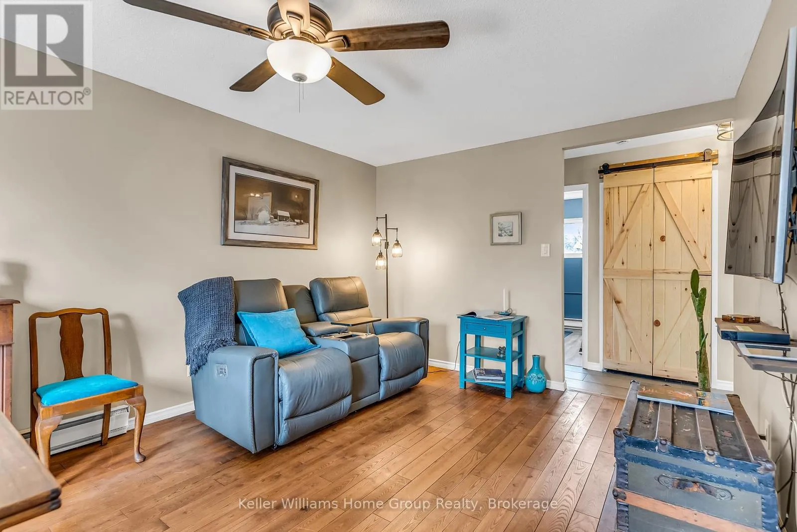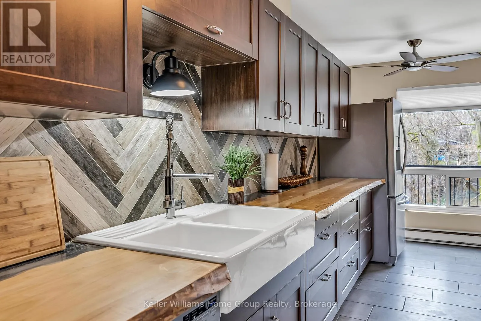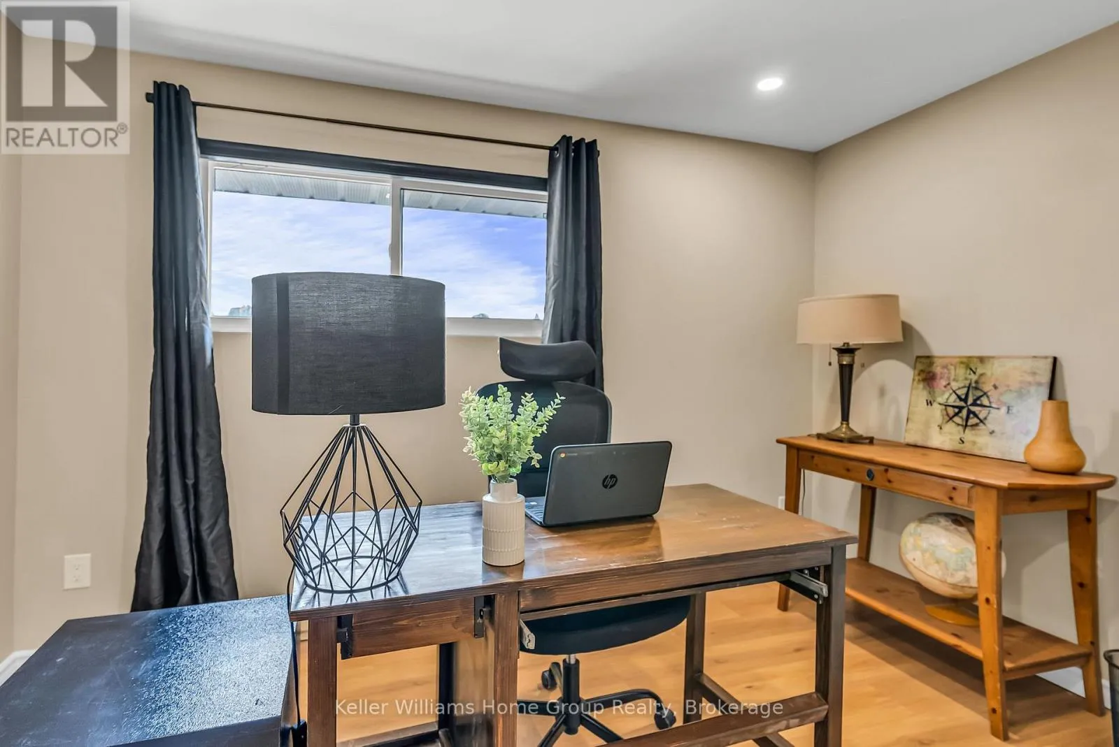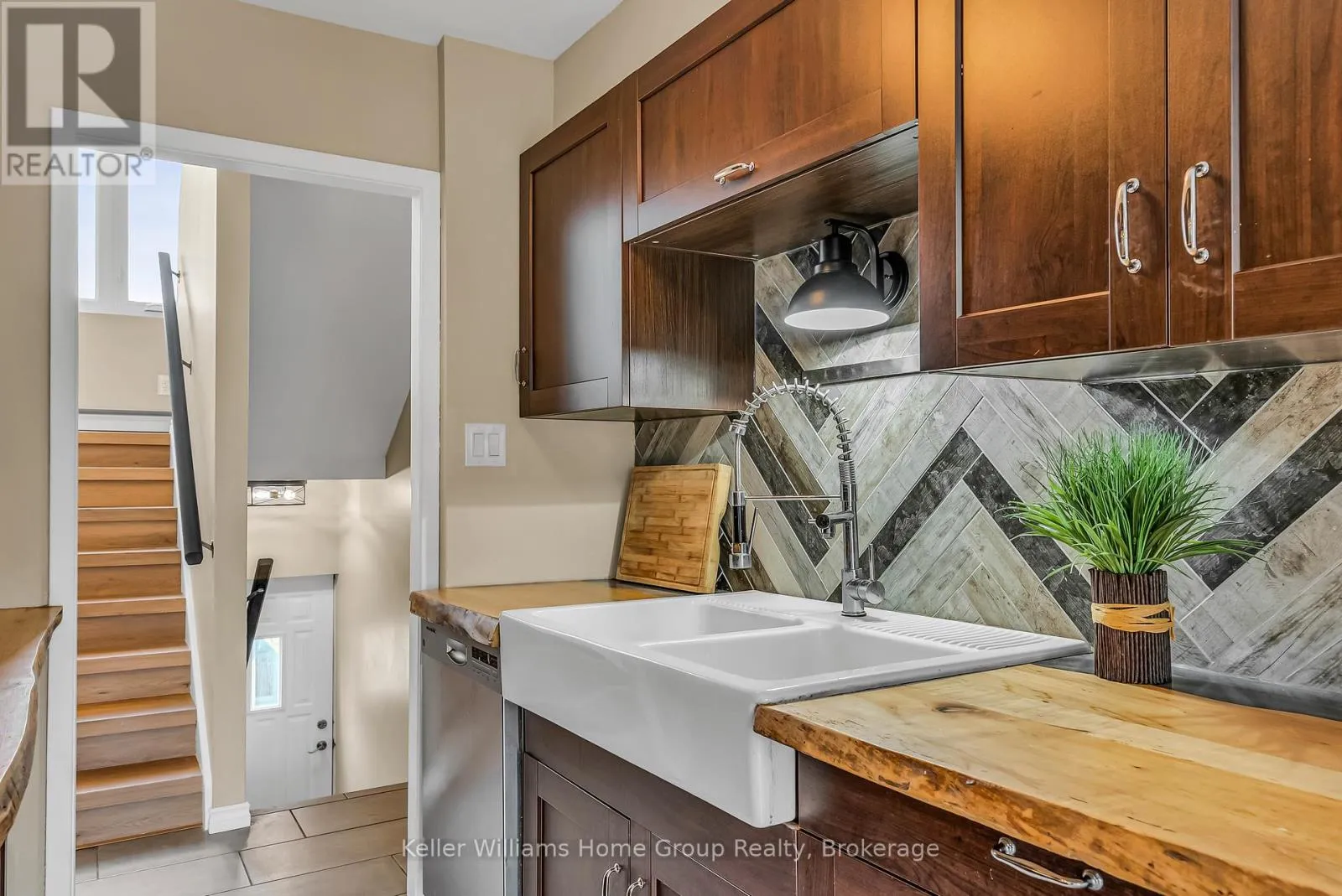 Cross Streets: Willow and Hanlon Pkwy. ** Directions: Hanlon to Willow to Rhonda. Welcome to this beautifully renovated, centrally located townhouse offering the rare convenience of four bedrooms all on one level. Ideally situated near shopping, transit, and one of Guelph's most enjoyable dog parks, this home combines comfort, functionality, and community living. The main floor features a bright and spacious layout, seamlessly integrating the kitchen, laundry area, and a convenient two-piece bath with an oversized family room. Sliding doors lead to a private balcony overlooking a serene shared greenspace with mature trees, providing a peaceful outdoor retreat. Upstairs, you'll find four generously sized bedrooms, including a large primary with a four-piece ensuite. The remaining bedrooms share a second full four-piece bathroom. The entire upper level has been fully renovated and freshly repainted, and the home is completely carpet-free for a clean, modern feel. One of the standout features of this property though, is its strong sense of community. Many residents have called this complex home for years-even decades-making it a stable and welcoming environment where listings are rarely available. The condominium is well managed, with recent updates including new windows throughout. A fantastic opportunity to own in a sought-after, tightly held community-don't miss it! (id:27476)