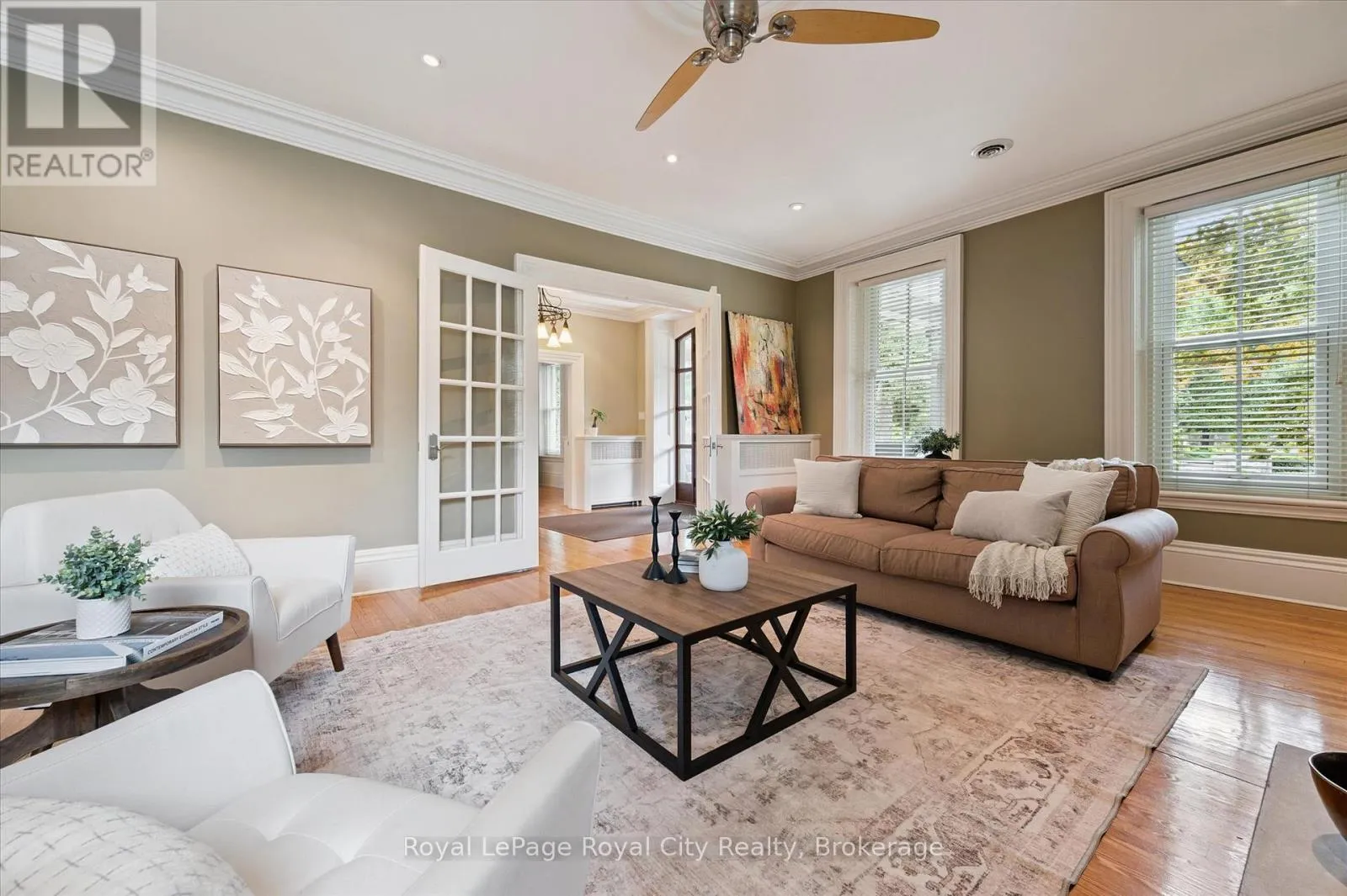 Stevenson Street N to Grange Street Welcome to 66 Grange Street, an inviting blend of elegance and comfort in Guelphs beloved St. Georges Park. Bright and airy, this impressive manor features nearly 5,000 square feet of living space, thoughtfully designed for family gatherings and relaxing evenings at home. From dual grand staircases to spacious, sunlit principal rooms with timeless architectural touches, every corner invites you in.The open chefs kitchen is the perfect place to whip up family favourites or entertain friends, flowing seamlessly into generous living and dining spaces. With five bedrooms and six bathrooms, everyone has their own spot to unwind, and the primary suite feels like a private retreat with its spa-inspired amenities and calming views of the lush backyard.Downstairs, a finished basement with a separate entrance adds flexibility for guests or home office needs. Step outside to enjoy your own backyard oasis, complete with an inground pool, outdoor kitchen, and beautifully landscaped grounds that make summer gatherings a delight. Theres plenty of room for vehicles too, thanks to a circular brick driveway and double garage.Set on a rare half-acre parcel that spans four city lots, this home offers space to grow and endless possibilities. Enjoy strolls to parks, top schools, and local amenities, all just minutes away. If youve been searching for a place where luxury feels easy and every day is a little brighter, 66 Grange Street is ready to welcome you home. (id:27476)
