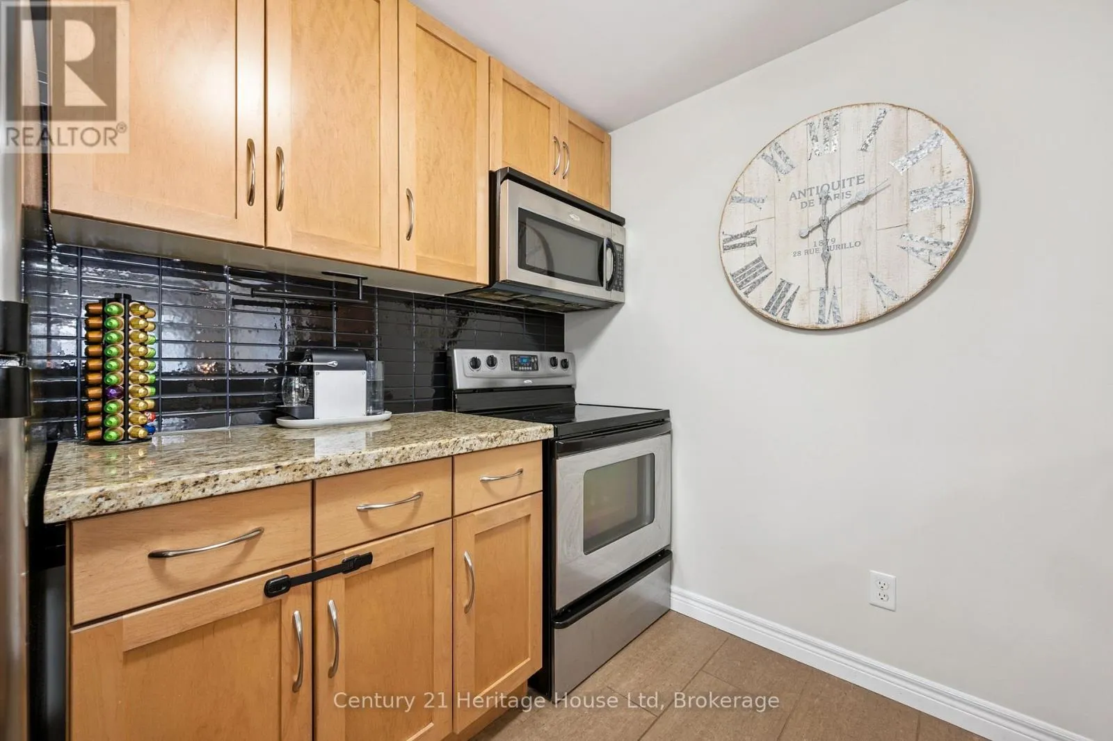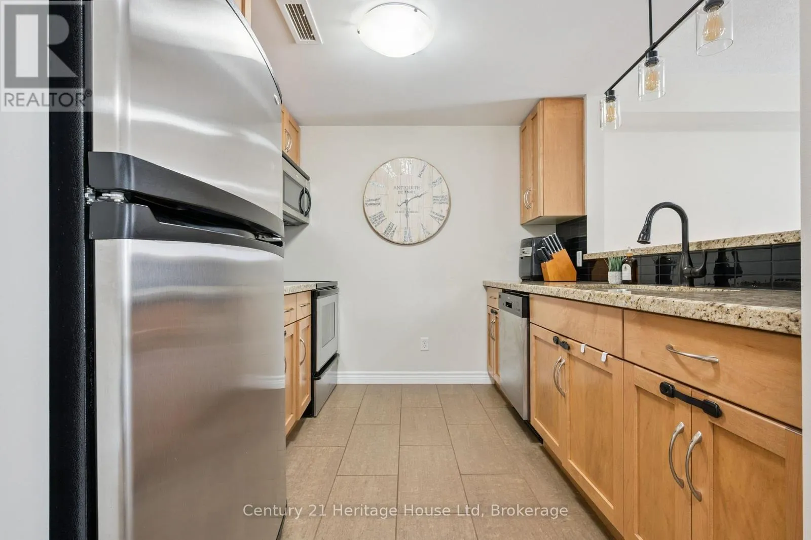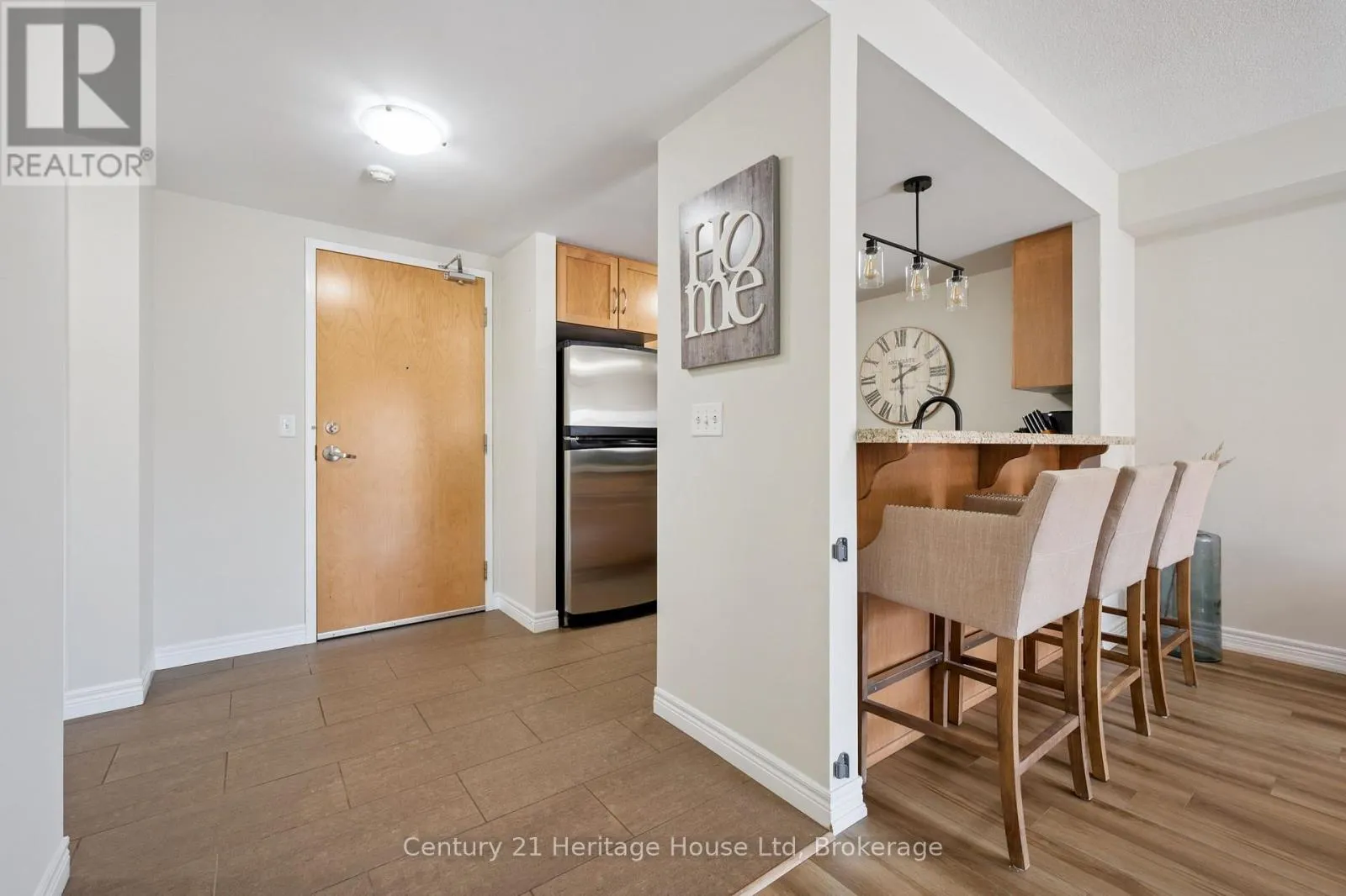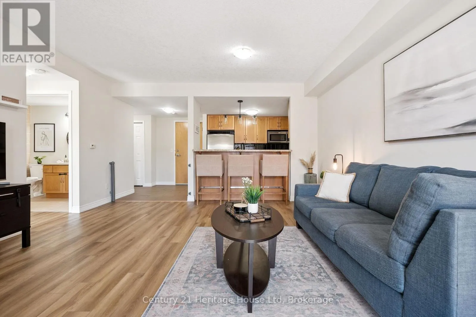 Cross Streets: Paisley and Imperial. ** Directions: Paisley Rd. Welcome to this bright and spacious suite in the highly desirable west end of Guelph. This well maintained unit offers an open and inviting layout featuring one generous bedroom, a large flexible living area and updated kitchen, showcases granite countertops, modern flooring, and stylish finishes, complemented by a freshly painted interior including ceiling and base that creates a move in ready feel throughout. Step outside to your large balcony Terrace an ideal spot to relax, unwind, or enjoy your morning coffee. This unit includes one parking space and a locker, with the option for additional parking that is available. Conveniently located within walking distance to shopping, banking, restaurants, and every day amenities, with nearby public transit and easy highway access. Experience convenient condo living at an attractive price. (id:27476)