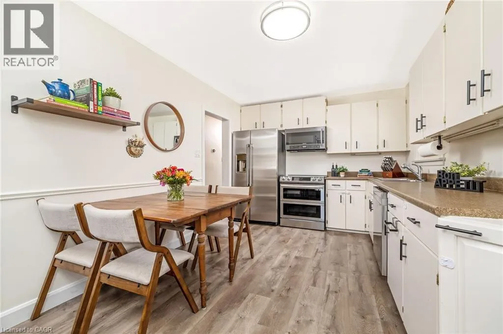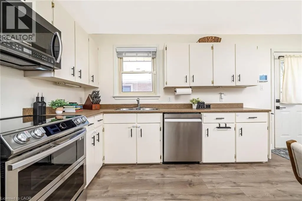 Speedvale and Stevenson WELCOME all FIRST-TIME HOMEBUYERS, INVESTORS and DOWN-SIZERS! This charming 3+1 bedroom ALL-BRICK BUNGALOW in Guelphâs family-friendly Riverside Park neighbourhood is ready and waiting for you! Take in the pretty curb appeal as you approach the home. It features a bright and spacious EAT-IN KITCHEN with new high-end stainless steel appliances, a large family room with stylish feature wall and over-sized picture window to let the natural light in, three bedrooms and a full 4-pc family bathroom. The finished lower level boasts large above-grade windows, an over-sized 3-pc bathroom with glass shower, FOURTH BEDROOM, recreation room with electric fireplace and stylish barn doors, and a recently renovated laundry room. The generous rear yard is surrounded by mature trees and features an over-sized deck with a pretty gazebo to BBQ, entertain or simply relax â and the yard is the perfect space to let the kids play. Additional features include: new high-end stainless steel appliances - washer & dryer (2024), fridge (2024), stove and dishwasher (2023); laundry room (2024), basement freshly painted in calm soothing tones (2025), gutter guards (2022), living room blinds (2023), roof (2019), forced air gas furnace (2019), smart color changing pot lights in soffits (2019), new flooring throughout (2020), new basement windows (2020), back deck (2021), new shed and gazebo (2021) and a private driveway that can accommodate PARKING for 3 â 4 VEHICLES. Ideally located close to all amenities: public transit, schools (Public, Catholic, French and Christian schools), daycare, shops, golf, grocery, Timmys, LCBO, bank, restaurants are ALL nearby. This lovely home is move-in ready and waiting for you ⦠THIS IS THE ONE! (id:27476)