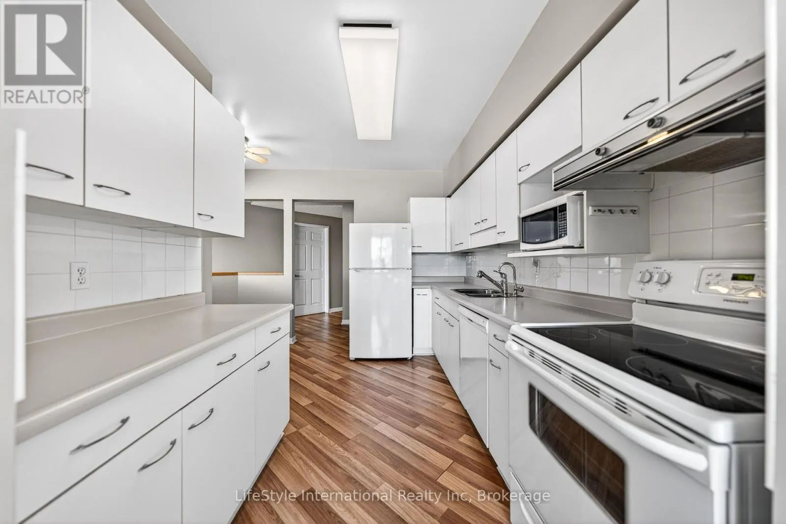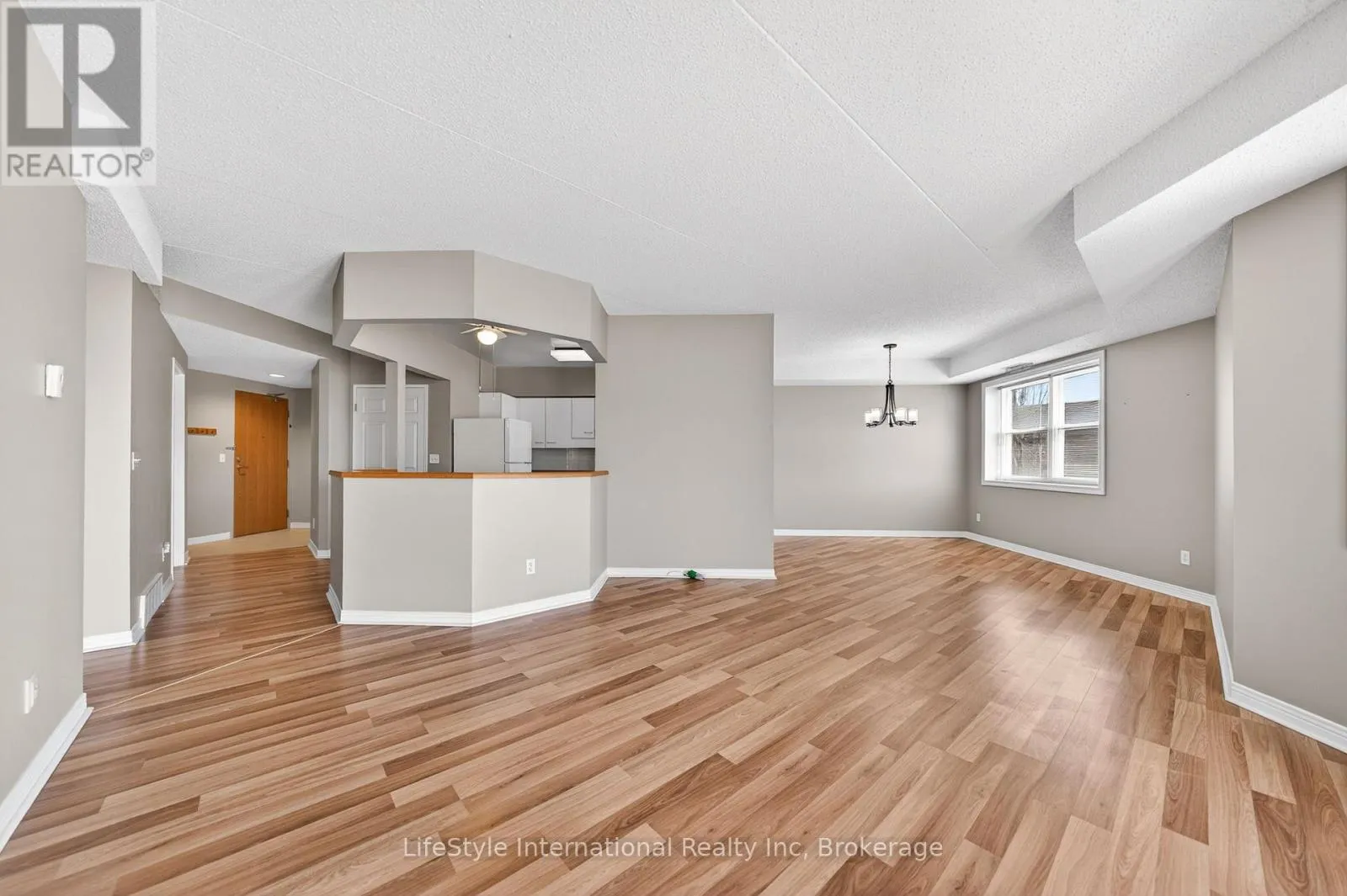 Cross Streets: Silvercreek/Speedvale. ** Directions: Take either Willow Road or Speedvale Ave to Silvercreek Parkway North, take the 208 entrance, Lutheridge is ahead on the left. This large, two bedroom unit has 1,300 square feet of beautiful finished living space with gleaming laminate throughout and is located in an incredibly friendly not for profit, non-denominational, senior lifestyle community. The kitchen boasts ample storage, a walk-in pantry, a brand new dishwasher and an eat-in space large enough for a bistro-style dining set. This unit also has a formal dining room, and spacious living room with plenty of natural light and a sliding patio door to your Juliet balcony. The oversized primary bedroom features a large walk-in closet, and a private 3-piece washroom. In addition to the bedroom closets you have added storage space in the foyer closet, sizable kitchen pantry, as well as the utility room, which features your own in-suite laundry. This is a wonderful place for entertaining all your family and guests. When you require additional space for large gatherings you can use the common room, and for overnight or out of town guests, for a small fee you can rent the guest suite. You also have 24/7 access to the gym, library, and a fully stocked workshop for all your mending and tinkering needs. LSRC's intent is to provide quality, reasonably priced senior lifestyle living for those living in Guelph. We aim to foster an atmosphere of positivity, and community for the benefit of all its residents. Lutheridge is a non-smoking building. This property is a Life Lease building, and requires cash only offers as no mortgage can be registered against a life lease, however no land transfer tax, or legal fees are paid on closing. The monthly fee includes property taxes and municipal water. (id:27476)