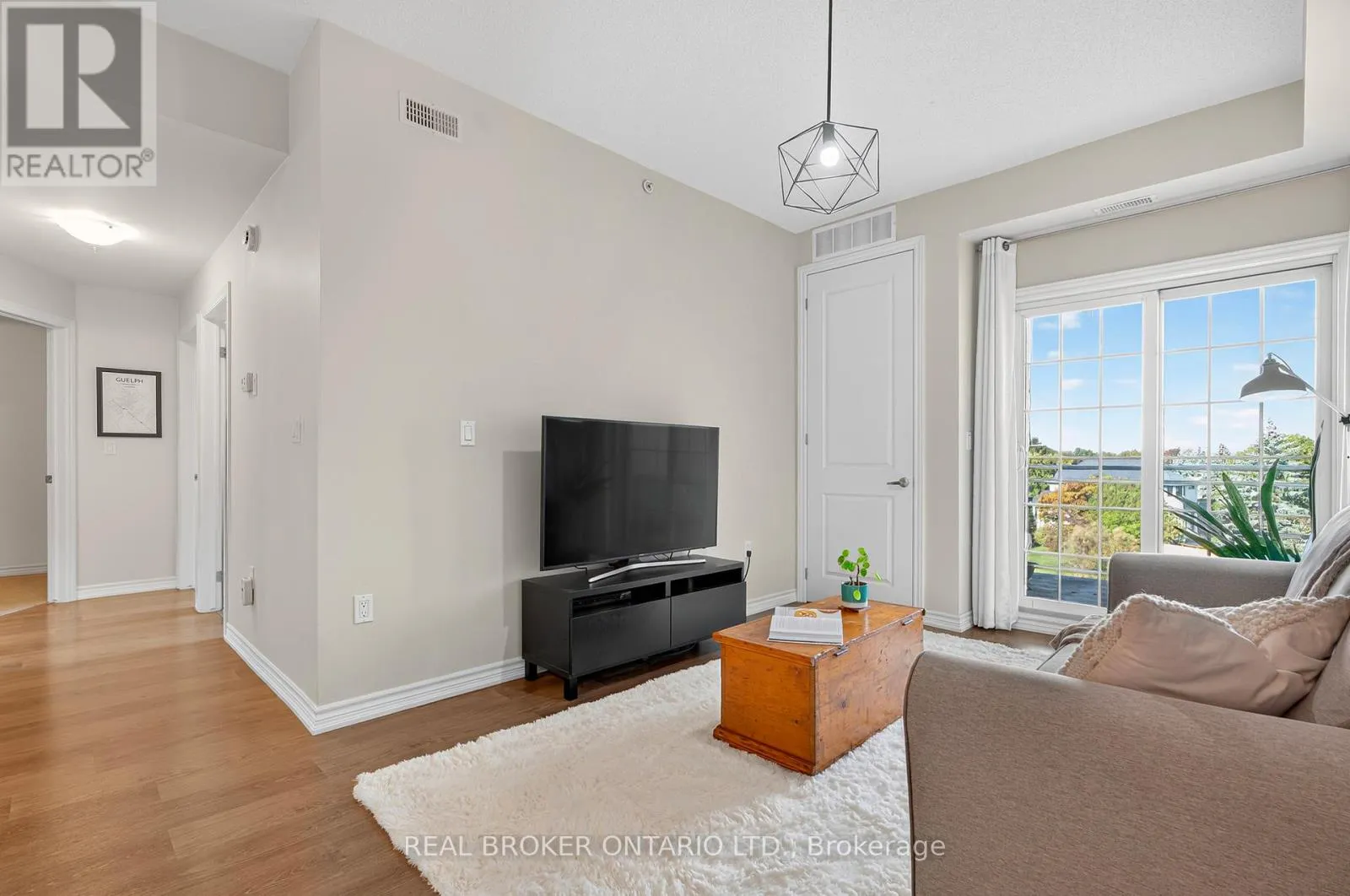 Cross Streets: Gordon & Kortright. ** Directions: Gordon St. Welcome to Unit 403 at 1083 Gordon Street! - an exceptional condo in Guelph's vibrant and amenity-rich south end. With quick access to the University of Guelph, downtown, and major amenities, this location offers outstanding convenience while appealing to a wide range of lifestyles. This bright, well-maintained unit features a functional open-concept layout, filled with natural light from large windows. With (2) Bedrooms, (1) 4-Piece Bath, and a Den, the space is comfortable and practical for everyday living, with a layout that emphasizes ease and simplicity. The bedrooms are spacious and inviting, offering plenty of room to relax and unwind, complemented by a clean and modern bathroom. The den is perfect for a home office, comfy reading nook, or simply extra storage. In-suite laundry adds everyday convenience. Underground parking provides year-round comfort and practicality, while the low-maintenance condo lifestyle makes ownership simple and stress-free. Step outside and enjoy one of Guelph's most convenient neighbourhoods. With Centurion Coffee, Manhattan's, and a variety of other nearby restaurants, cafes, and grocery stores, everything you need is within reach! Outdoor enthusiasts will love being close to Preservation Park, offering beautiful trails and green space. The area is also well-served by respected schools including Westminster Woods Public School, Bishop MacDonnell Catholic High School, and Centennial Collegiate Vocational Institute. Residents benefit from secure entry and access to a party room, perfect for hosting larger gatherings when needed. Whether you're looking for a comfortable place to call home or an investment in a prime location, Unit 403 delivers an excellent balance of lifestyle, location, and value. (id:27476)