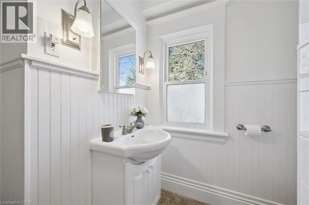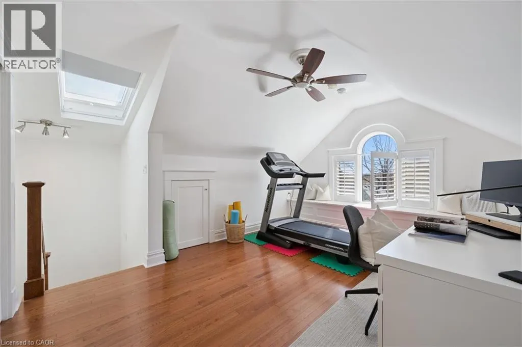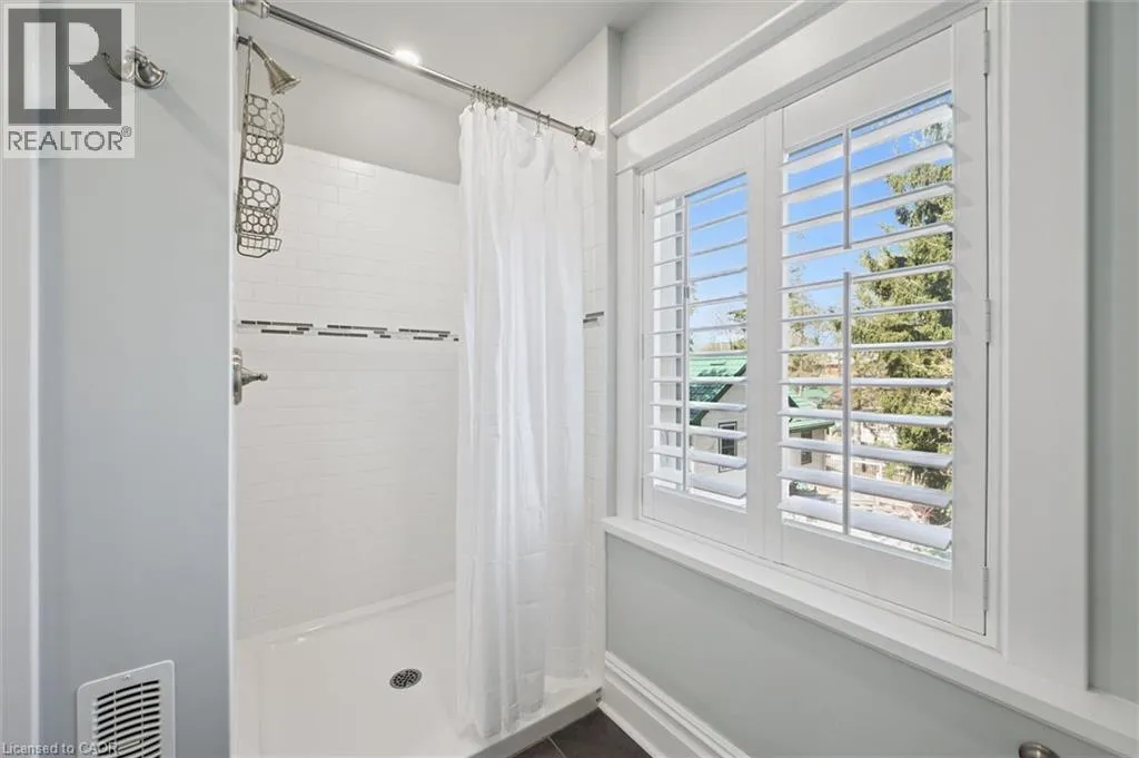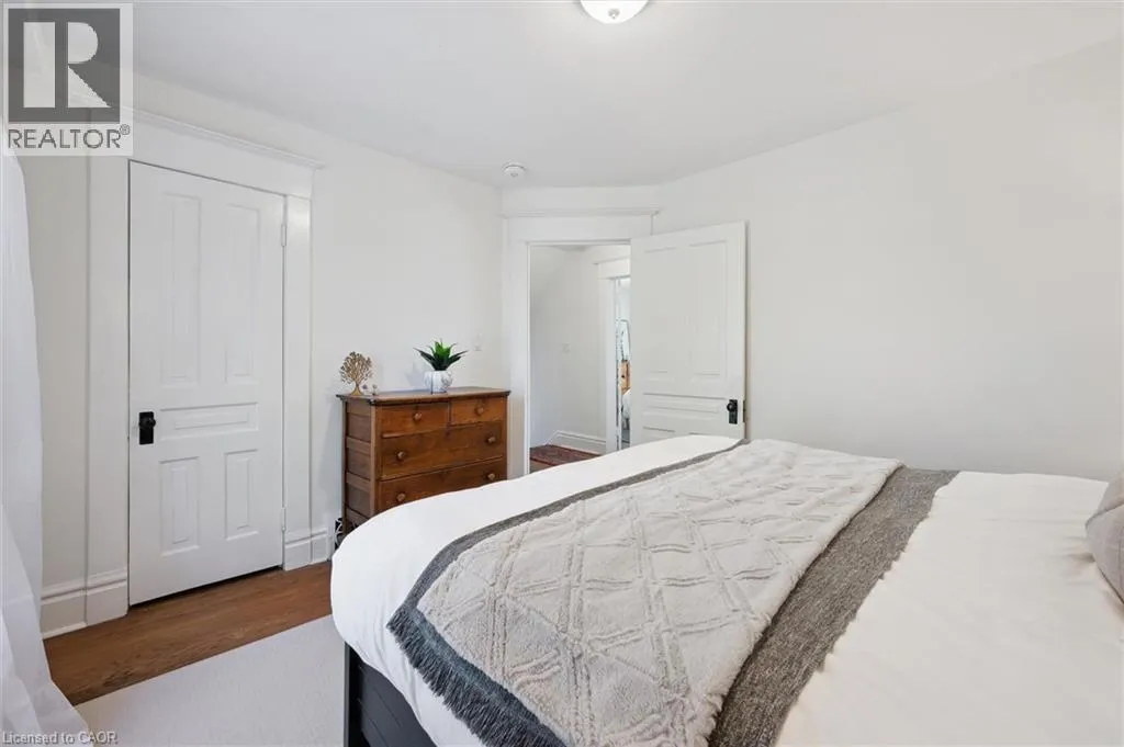 Woolwich to Powell - East to #24 Tucked into one of Guelph's most coveted neighbourhoods, Exhibition Park, this classic 2.5 story home delivers the rare combination of architectural character and modern comfort. Hardwood floors inlaid with walnut detail, original millwork, and a sit out and meet the neighbours front porch speak to the home's 1915 pedigree, while a fully renovated primary bedroom and ensuite and updated systems make daily life effortless. The main level flows from a gracious entry hall through a sun-drenched living room into a formal dining room sized for holiday gatherings. The kitchen opens to a private patio and landscaped garden-an entertainer's dream steps from the house. Upstairs, four generous bedrooms share two renovated baths; the primary suite offers privacy and flexibility being on it's own floor - perhaps you would prefer an office, a gym or a loft entertainment space? It's all possible! Set on a family friendly street with mature plantings, steps to trails and the river, Exhibition Park, bakeries and neighbourhood restaurants, coveted schools and downtown amenities only a 10 minute walk away, this is a forever home. Recent upgrades of over $440,000 include a completely new 3rd floor with a primary bedroom and 3 piece ensuite, heat pump for AC/heat for the 3rd level, new electrical, new eavestroughs, many new windows, new landscaping - the list goes on! (Full list available) Experience the charm of this century home for yourself. (id:27476)