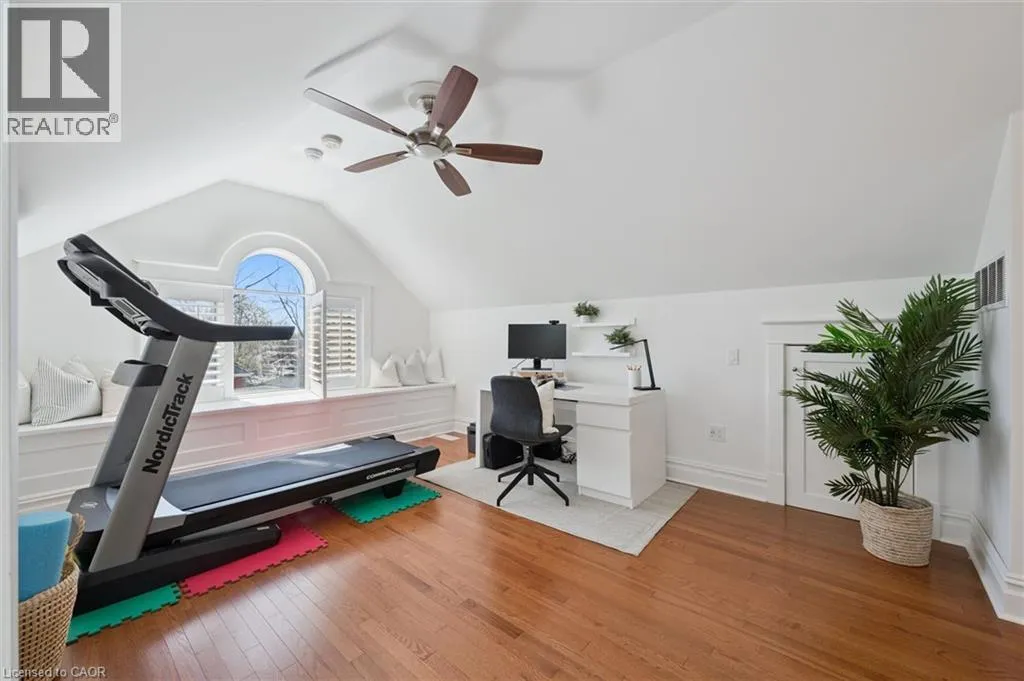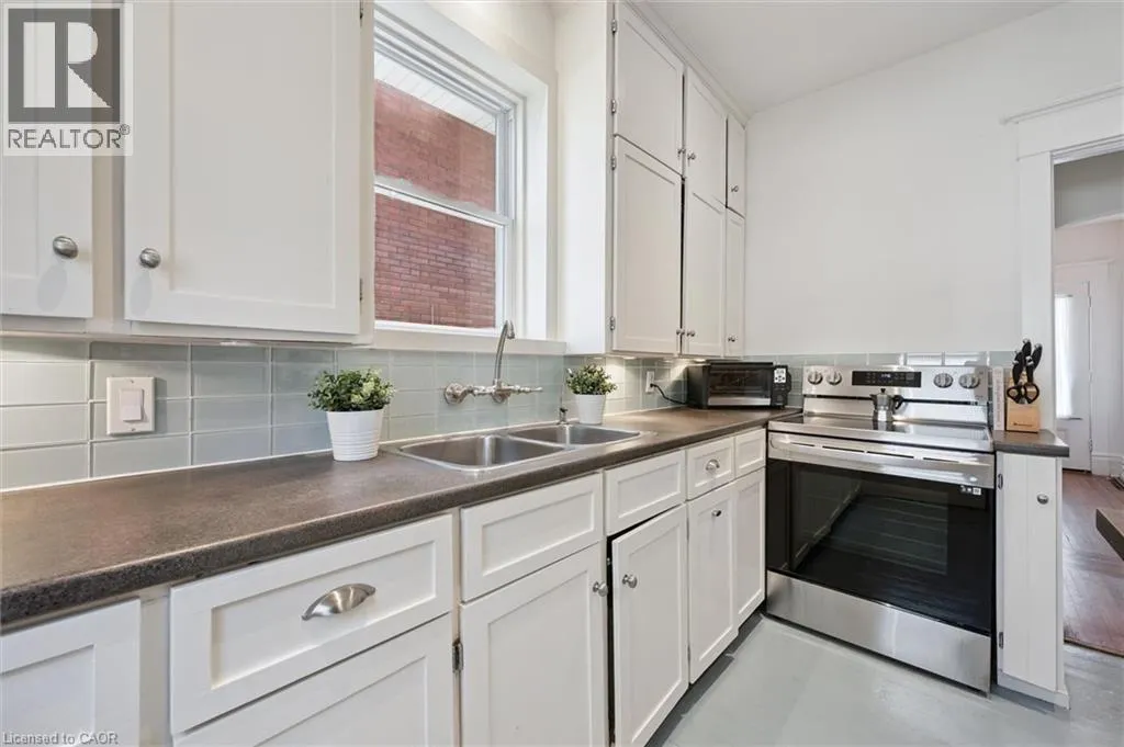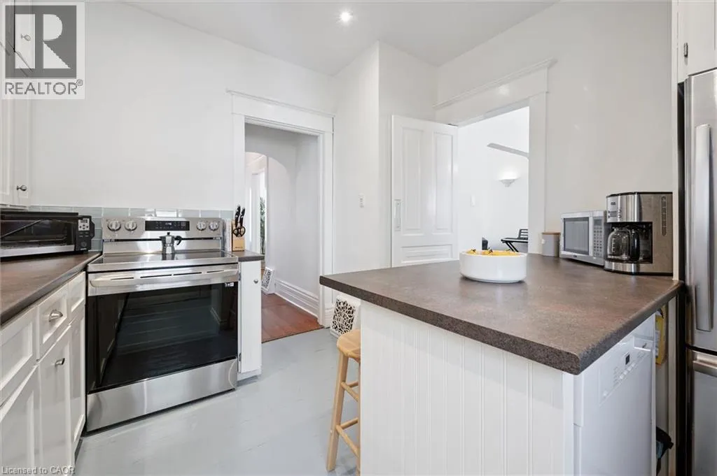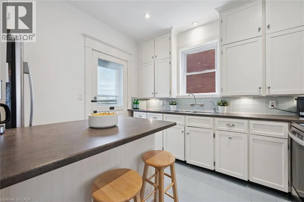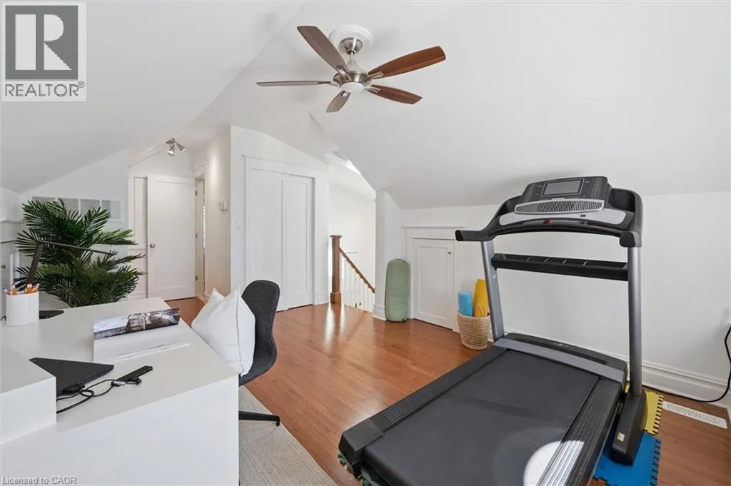 Woolwich to Powell - East to #24 Tucked into one of Guelph's most coveted neighbourhoods, Exhibition Park, this classic 2.5 story home delivers the rare combination of architectural character and modern comfort. Hardwood floors inlaid with walnut detail, original millwork, and a sit out and meet the neighbours front porch speak to the home's 1915 pedigree, while a fully renovated primary bedroom and ensuite and updated systems make daily life effortless. The main level flows from a gracious entry hall through a sun-drenched living room into a formal dining room sized for holiday gatherings. The kitchen opens to a private patio and landscaped garden-an entertainer's dream steps from the house. Upstairs, four generous bedrooms share two renovated baths; the primary suite offers privacy and flexibility being on it's own floor - perhaps you would prefer an office, a gym or a loft entertainment space? It's all possible! Set on a family friendly street with mature plantings, steps to trails and the river, Exhibition Park, bakeries and neighbourhood restaurants, coveted schools and downtown amenities only a 10 minute walk away, this is a forever home. Recent upgrades of over $440,000 include a completely new 3rd floor with a primary bedroom and 3 piece ensuite, heat pump for AC/heat for the 3rd level, new electrical, new eavestroughs, many new windows, new landscaping - the list goes on! (Full list available) Experience the charm of this century home for yourself. (id:27476)