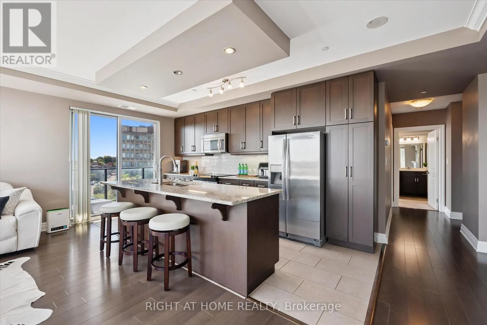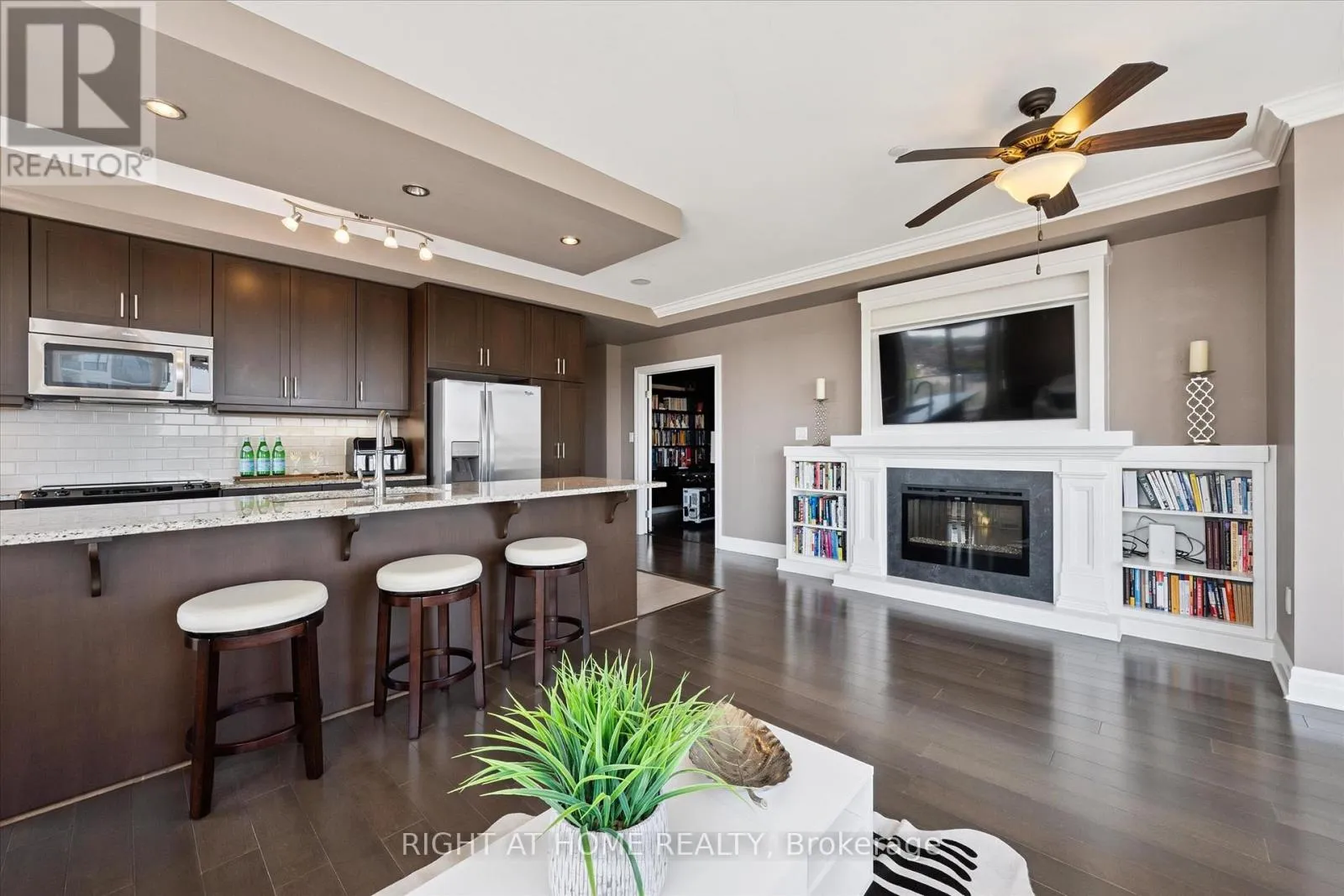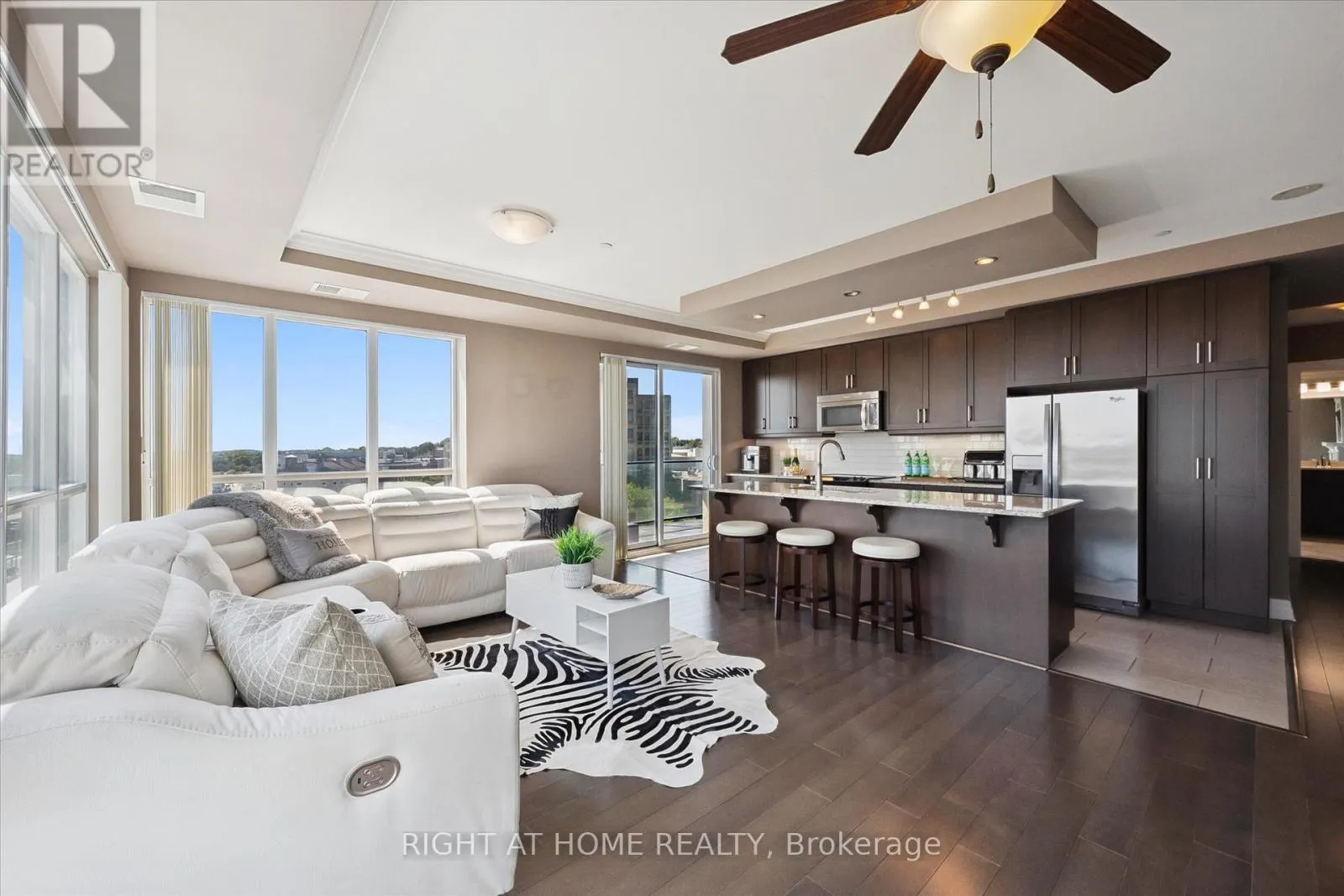 Wellington & Macdonell St. Discover a residence that transcends expectation, offering timeless sophistication at every turn. Welcome to this 2 bedroom + den, 2 bathroom residence in the coveted RiverHouse condos, crafted for the discerning professional. A grand open-concept kitchen with rich cabinetry flows into a sun-filled living room featuring floor-to-ceiling windows, an elegant fireplace, and patio doors opening to a sprawling balcony with breathtaking downtown views. The versatile den serves perfectly as a stylish home office. Two premium parking spaces with EV charger and exclusive access to a state-of-the-art fitness centre, outdoor BBQ terrace, media room, and guest suites complete this unparalleled urban retreat. Arrange your showing today and see firsthand the elegance and attention to detail that sets this home apart. (id:27476)