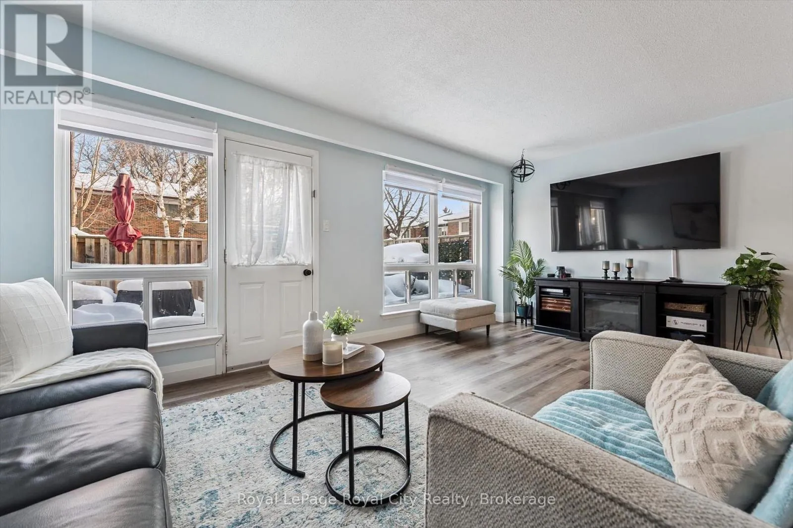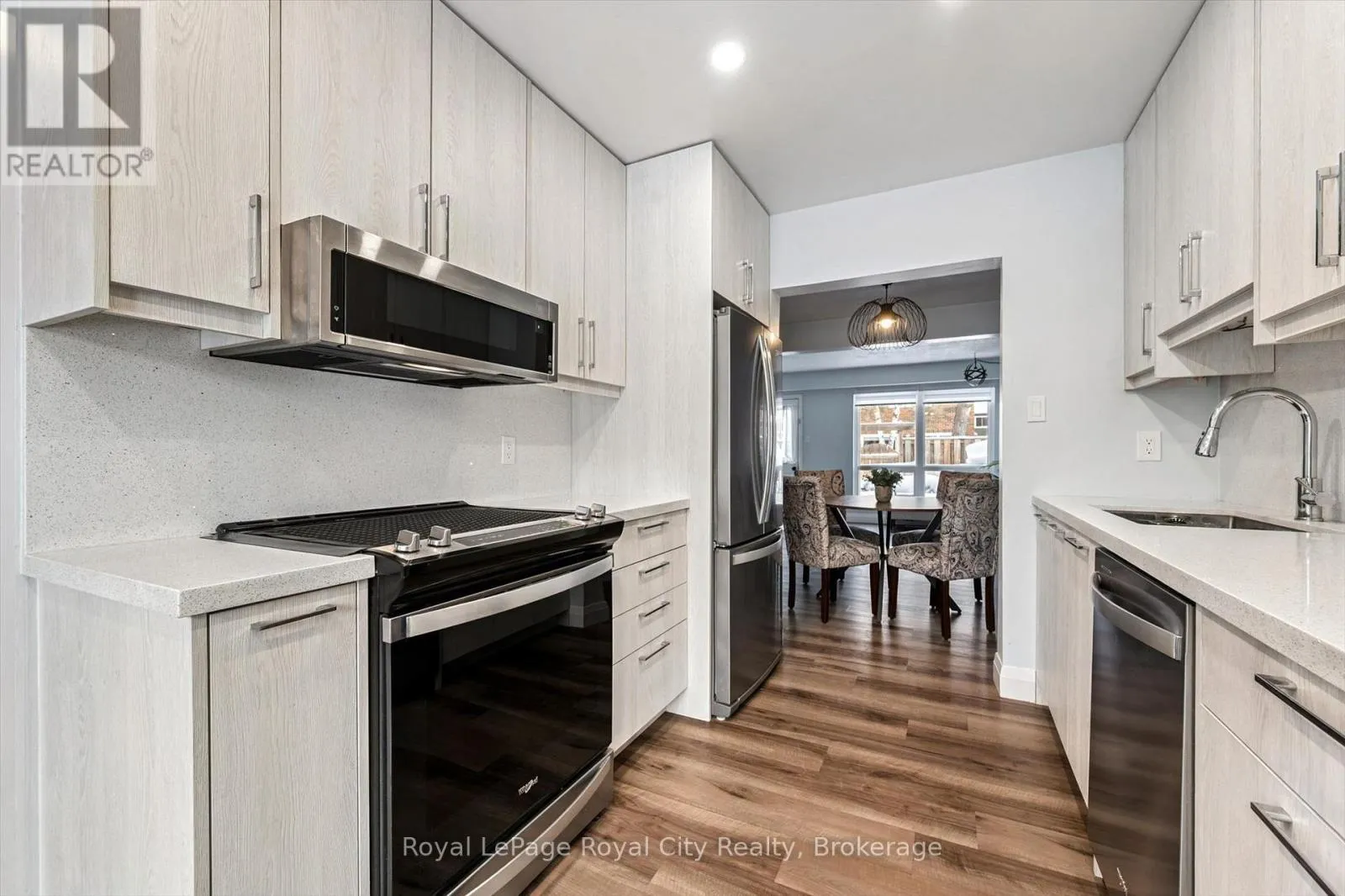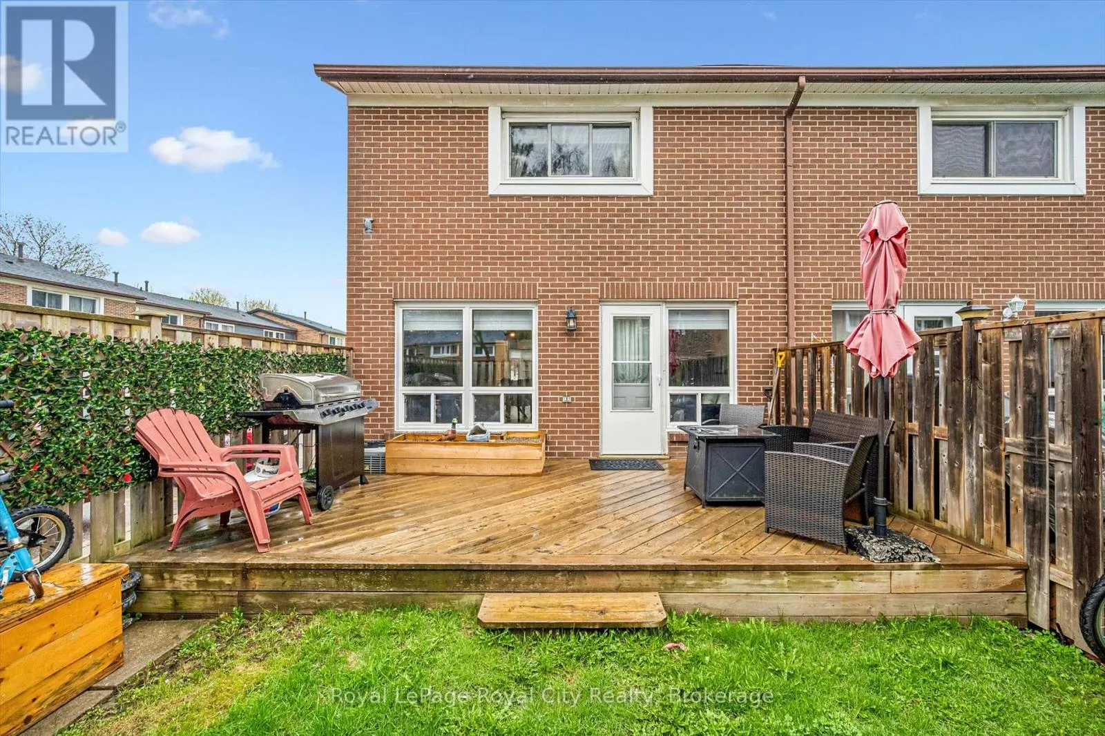 Cross Streets: Edinburgh Road North and Willow Road. ** Directions: Edinburgh Road North to Willow Road. Tucked away in one of Guelph's best-kept secrets, this charming townhouse complex offers the perfect blend of convenience and community. Surrounded by mature greenery and close to all amenities, it truly feels like a little neighbourhood of its own. Welcome to this beautifully maintained end-unit townhouse, where significant updates and pride of ownership shine throughout. In July 2023, the entire main floor underwent a full renovation - featuring all-new kitchen cupboards, brand new stainless steel appliances including a stove, fridge, microwave range hood, and dishwasher, plus a new washer and dryer. Stylish new flooring and contemporary light fixtures complete the transformation, creating a bright, modern, and inviting atmosphere. A charming breakfast nook adds the perfect spot for your morning coffee. Upstairs, you'll find three generously sized bedrooms - impressively spacious by condo standards - offering plenty of room for family, guests, or a home office. The finished recreation room in the basement provides additional living space, perfect for movie nights, a playroom, or a cozy retreat. A new Lennox high-efficiency furnace, installed in fall 2022, ensures reliable and cost-effective comfort year-round. Step outside to your private, fully fenced backyard with a deck - ideal for summer barbecues or simply unwinding at the end of the day. Two parking spots are included: one covered in your condo fees, and a second transferable to the new owners for just $80/month. Speaking of condo fees - they go above and beyond, covering all exterior maintenance including snow removal right to your front door, plus a Rogers cable package with 300 channels and unlimited high-speed internet. Lovingly cared for and truly move-in ready, this home is waiting for its next owners to settle in and make it their own. A rare opportunity to enjoy low-maintenance living in a wonderful community you'll be proud to call home. (id:27476)