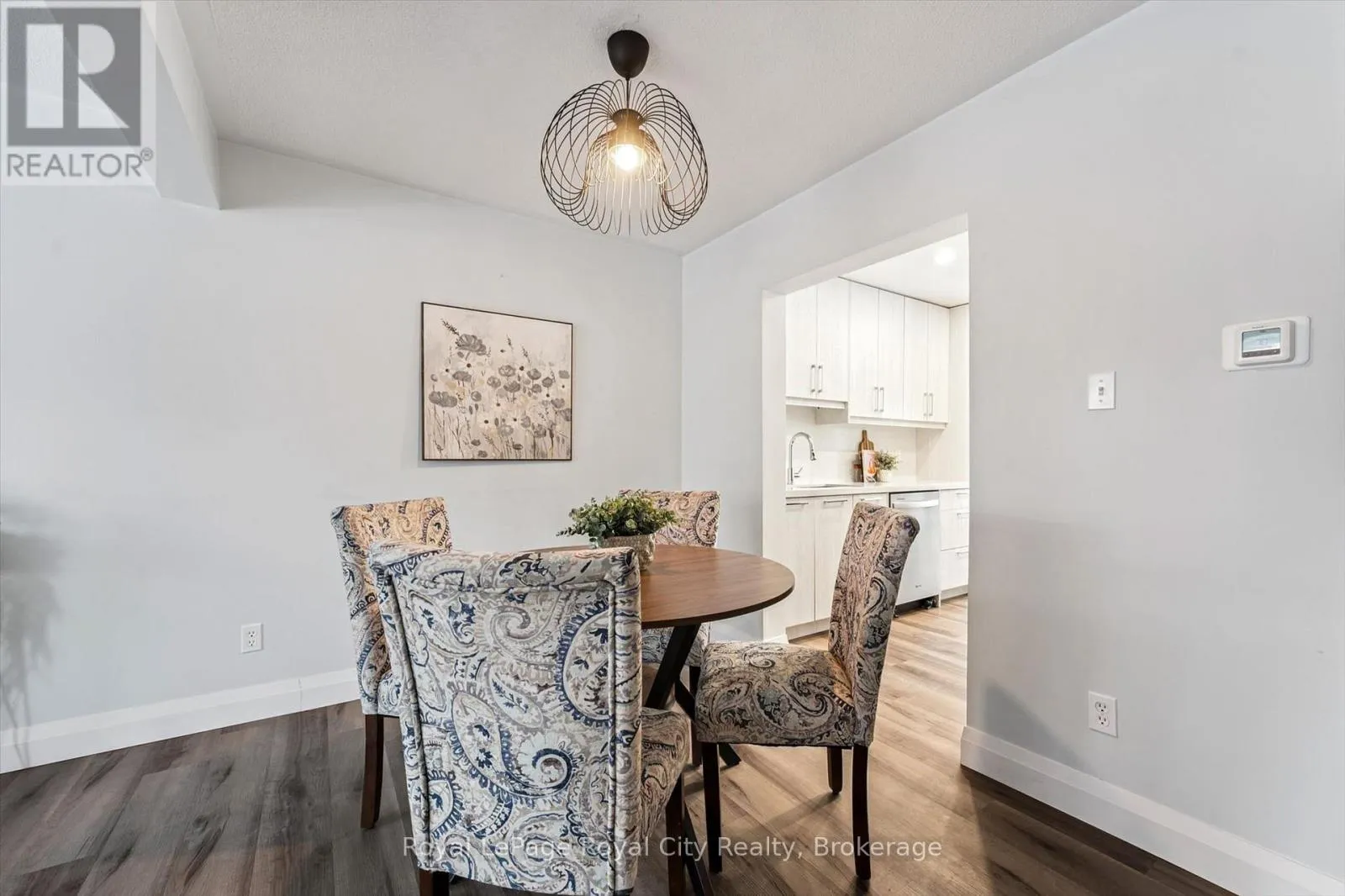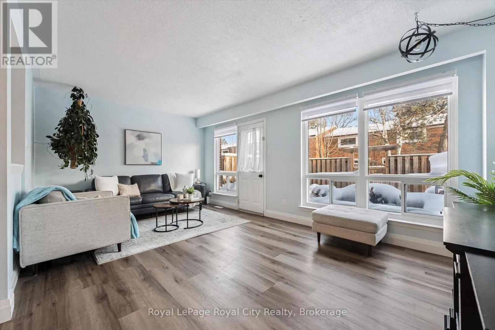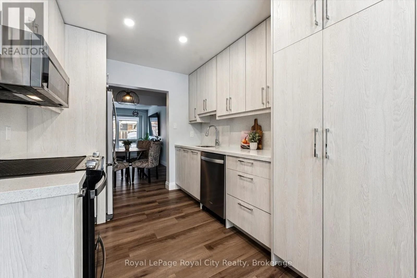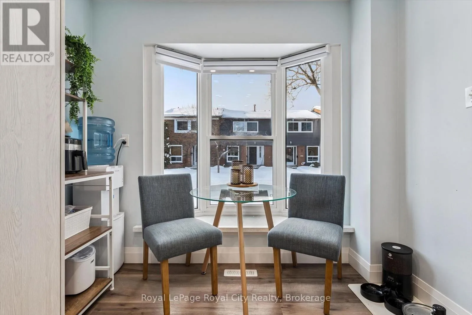 Cross Streets: Edinburgh Road North and Willow Road. ** Directions: Edinburgh Road North to Willow Road. Tucked away in one of Guelph's best-kept secrets, this charming townhouse complex offers the perfect blend of convenience and community. Surrounded by mature greenery and close to all amenities, it truly feels like a little neighbourhood of its own. Welcome to this beautifully maintained end-unit townhouse, where significant updates and pride of ownership shine throughout. In July 2023, the entire main floor underwent a full renovation - featuring all-new kitchen cupboards, brand new stainless steel appliances including a stove, fridge, microwave range hood, and dishwasher, plus a new washer and dryer. Stylish new flooring and contemporary light fixtures complete the transformation, creating a bright, modern, and inviting atmosphere. A charming breakfast nook adds the perfect spot for your morning coffee. Upstairs, you'll find three generously sized bedrooms - impressively spacious by condo standards - offering plenty of room for family, guests, or a home office. The finished recreation room in the basement provides additional living space, perfect for movie nights, a playroom, or a cozy retreat. A new Lennox high-efficiency furnace, installed in fall 2022, ensures reliable and cost-effective comfort year-round. Step outside to your private, fully fenced backyard with a deck - ideal for summer barbecues or simply unwinding at the end of the day. Two parking spots are included: one covered in your condo fees, and a second transferable to the new owners for just $80/month. Speaking of condo fees - they go above and beyond, covering all exterior maintenance including snow removal right to your front door, plus a Rogers cable package with 300 channels and unlimited high-speed internet. Lovingly cared for and truly move-in ready, this home is waiting for its next owners to settle in and make it their own. A rare opportunity to enjoy low-maintenance living in a wonderful community you'll be proud to call home. (id:27476)