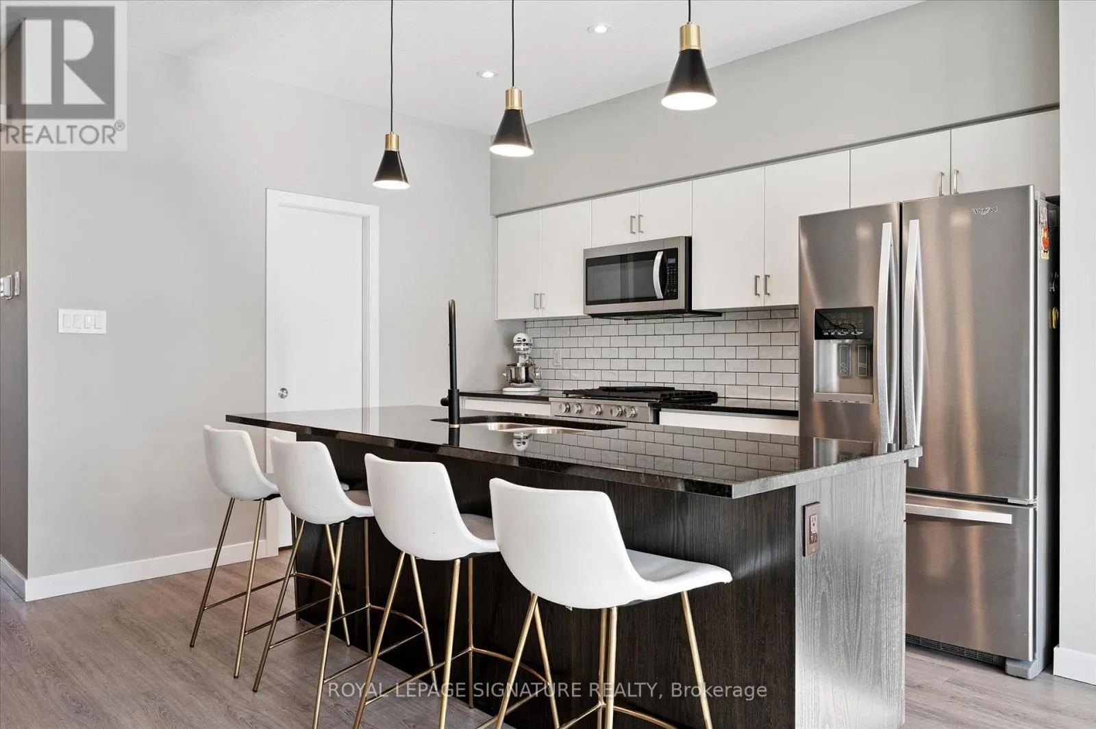 Highway 6 & Wellington St W Welcome to this absolutely stunning 3+1 bedroom townhouse built by Granite Homes, where modern elegance blends seamlessly with everyday comfort. Meticulously maintained and exceptionally clean, this luxurious home features 9 ft ceilings and a bright, spacious open-concept layout enhanced by desirable east-west exposure, filling the home with natural light from morning to evening. The chef-inspired kitchen is designed to impress, showcasing granite countertops, a huge center island, stainless steel appliances, a gas range, and a walk-in pantry - offering both style and exceptional functionality. Thoughtfully laid out for cooking, gathering, and entertaining, it flows effortlessly to your private terrace where BBQs are allowed, creating seamless indoor-outdoor living for hosting family and friends. Upstairs, the versatile +1 space offers flexibility as a family room, home office, or additional sleeping area. The primary bedroom features two walk-in closets and a beautifully upgraded bathroom with a clean, modern finish. Convenient upper-floor laundry completes the level, making everyday routines simple and efficient. Parking for 3vehicles (2 driveway, 1 garage). Located near parks, trails, schools, highways, shopping, and dining. A beautiful blend of luxury, space, and functionality- It's more than just a house, it's a Lifestyle! (id:27476)