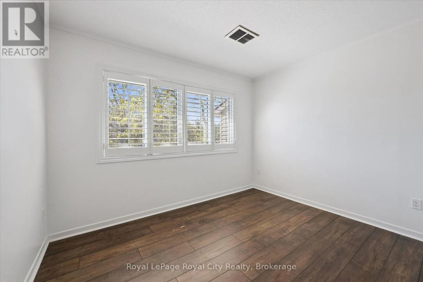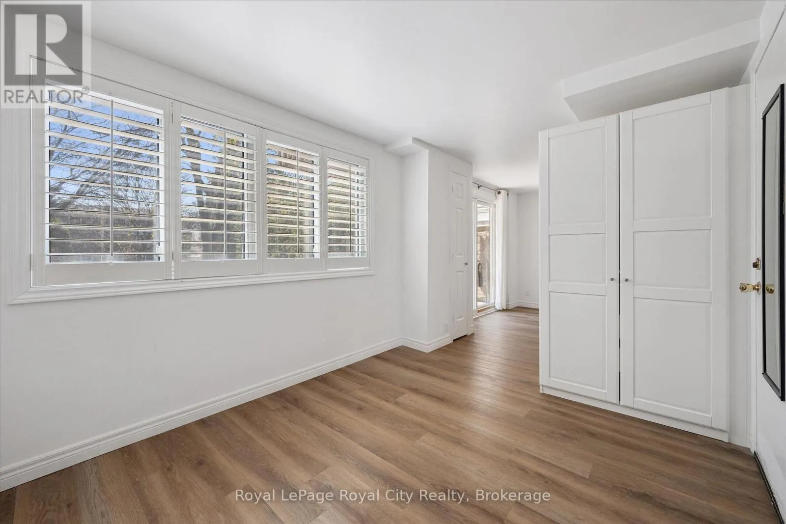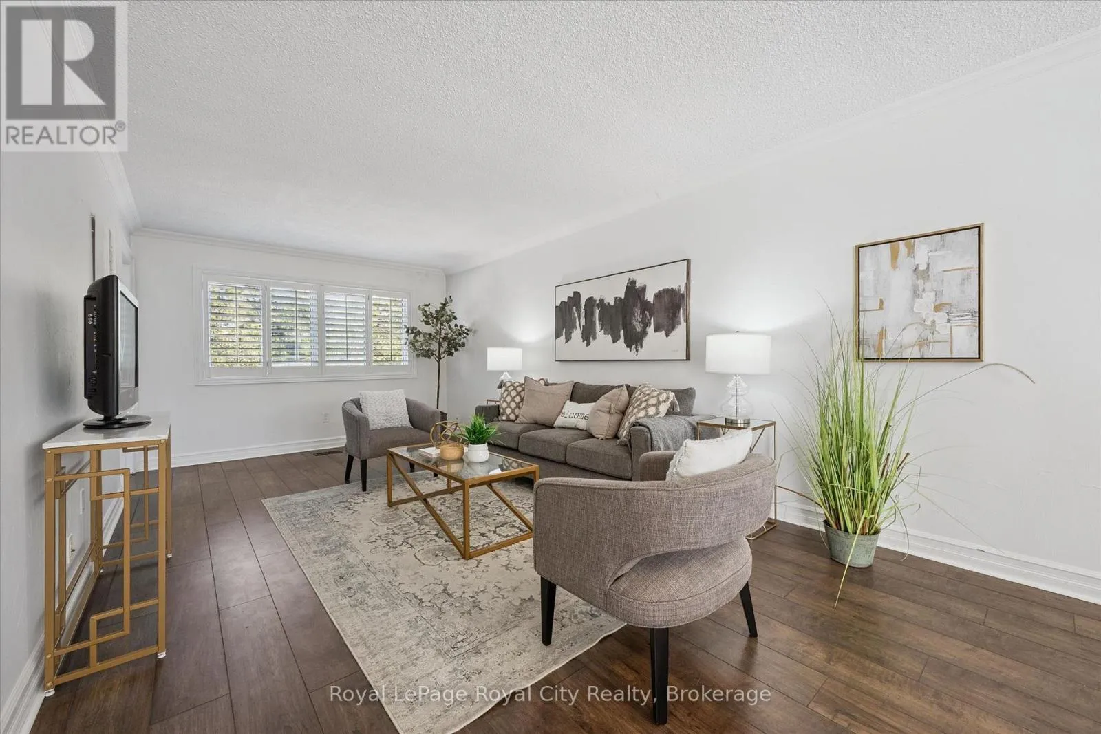 Cross Streets: Edinburgh. ** Directions: Travelling on Edinburgh Rd turn West on Water St. The Development is on the North side almost all the way to the end, turn into the first driveway and the unit is located on the LHS. Living in a townhouse usually means knowing exactly when your neighbor is watching reality TV. Not here. 21-295 Water Street is built with concrete walls, giving you the soundproofing that usually only comes with detached living. It is a rare find in the Guelph market, offering genuine peace and quiet without the endless weekend exterior maintenance.The layout is refreshingly functional. On the main floor, a spacious balcony sits off the kitchen and breakfast nook, making it an easy spot for a morning coffee. Head down to the ground level and you will find a large deck overlooking mature green space-a private spot to decompress. Inside, premium California shutters are already installed throughout, so you can cross window treatments off your to-do list permanently.The third floor is built for comfort. The primary suite, formerly two bedrooms, is expansive and features a custom wardrobe system that will satisfy even the most committed fashion enthusiast. When the day is done, the ensuite soaker tub is your best friend. With a versatile rec room on the lower level that works as a guest suite or home office, this home handles whatever life throws at it. If you value privacy and solid construction over superficial finishes, this is your next move. (id:27476)