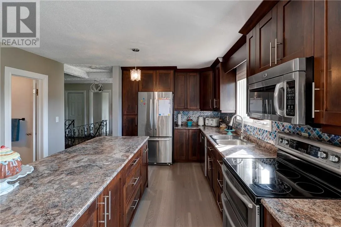 Located in the welcoming community of Hagar, this spacious 5-bedroom, 2-bathroom home offers ample living space on a large lotâperfect for families or anyone in need of extra room. The main floor features a generous kitchen that flows into the dining area and cozy living room, along with two bedrooms and a full bathroom. The home has 2 grand staircase built in B.C and shipped via train to the home. Also on the main level is a separate entrance to a potential bachelor apartment or business space, previously used for commercial purposesâoffering excellent income potential or an ideal work-from-home setup. Up one of the grand staircases, youâll find three additional bedrooms. The oversized primary bedroom boasts dual closets, potential for an ensuite, and patio doors that open onto a private balconyâan ideal spot to enjoy your morning coffee or unwind at the end of the day. A second grand staircase leads to the spacious lower level, offering finished outer walls and ready for the finishing touch. Whether you dream of a large family room, home gym, extra bedrooms, or a workshop, this partially finished basement is ready to become whatever you envision. Outside, the large yard provides plenty of space for relaxation and play. Enjoy a morning coffee or evening sunset on the deck at the front of the house, or host gatherings in the backyard. The yard also features a newer swing set and a large shedâperfect for storage, hobbies, or outdoor projects. There's no shortage of space to enjoy the outdoors in this inviting and versatile property. New propane furnace and A/C intalled in 2023, newer flooring and fixtures. Call for your private viewing today. (id:27476)