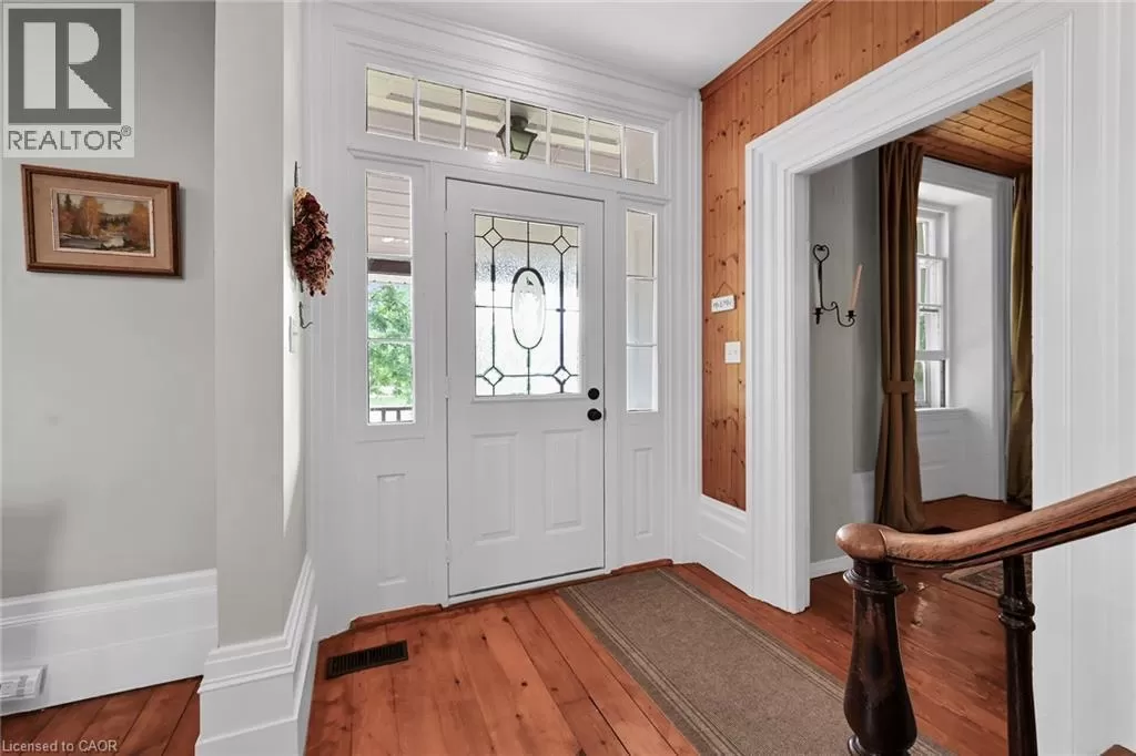 HALDIMANROAD 20 WEST FROM HAGERSVILLE, LEFT ON CONCESSION 14, THROUGH STOP SIGN, ON RIGHT HAND SIDE This one feels like home! 3.66 acre country charmer features an 1890 farm house, oozing with character & has been lovingly maintained by current owner, providing the perfect combination of modern amenities while keeping the charm of yesteryear. Beautiful treed lot with farm fiields behind, the house sits well back from the road. Enjoy the quaint covered front porch with views of your rolling front yard & quiet neighbourhood. Inside the house you will find soaring ceilings, massive thick basebord trim & window trim, rustic hardwood floors, vintage window style with cozy window seats. Main level features country kitchen, back mud room + 2 piece bath, dining room, living room with n/g fireplace, large laundry room plus 4 piece bath. Two stairway accesses to the upper level - one leading to bedroom/loft & the other to the rest of the upper level inc large master bedroom with walk in closet, 3 pc ensuite priviledge & 2 additional bedrooms which have been recently taken down to the studs and restored(2024). Lower level is in 2 parts - main area features an on grade walk out, large rec room/office/great space for a home business, plus garage/workshop. Other basement is more utility style - houses the hot water heater'17, electrical panel & water softener. Outside - the exterior of the original house is stone with siding on the addition. Asphalt shingles 2010. Drilled well, septic bed & lots of parking. The 3.66 acre parcel includes a lot in the front that is being sold with the property. This lot will permit a dwelling to be built on it - so if you are looking for property that will allow a second living quarters to be added - you have found it!! (id:27476)