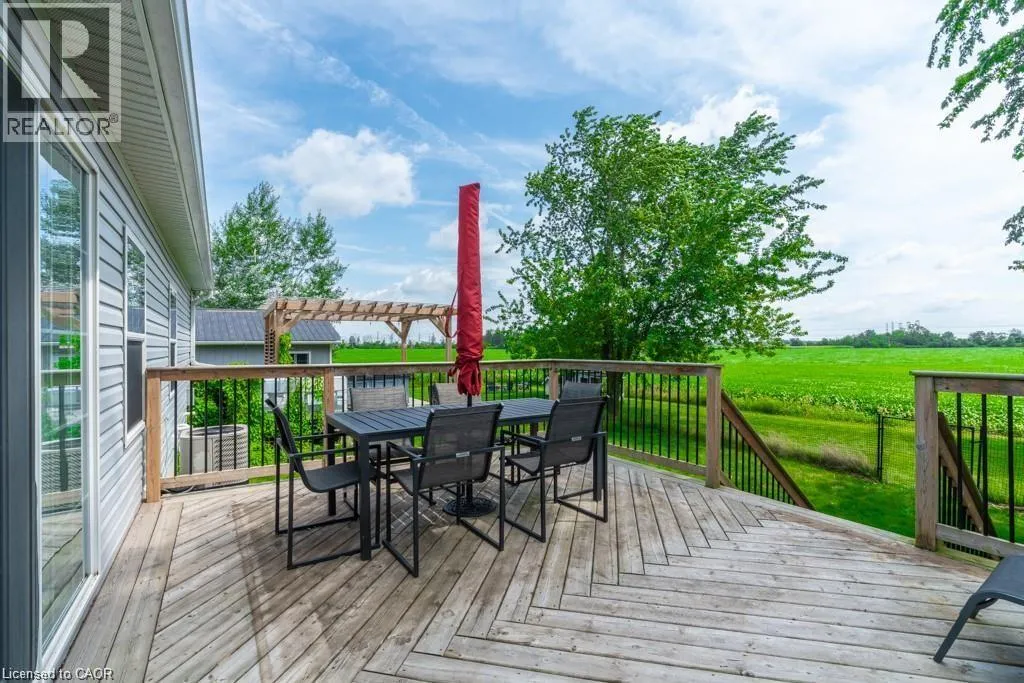 HIWAY 6 between Hagersville and Jarvis...west side Stunning Sunsets & Spacious Living â The Perfect Place to Call Home. Enjoy wide open skies and beautiful sunsets from this fully finished, modern 4-bedroom, 3-bathroom home designed for comfort and versatility. Built in 2017, this well-maintained property offers a perfect blend of style, space, and functionalityâready for you to move in and make it your own. Interior Features: Open-Concept Living: The heart of the home features a bright eat-in kitchen that flows seamlessly between two spacious living areasâideal for entertaining or relaxing with family. Main Floor Comfort: Three generously sized bedrooms and two full bathrooms are conveniently located on the main level, offering plenty of room for family and guests. Private Lower-Level Retreat: Perfect for shift workers, guests, or a growing family, the newly finished basement includes a large bedroom, full bathroom, and expansive great room with endless possibilities. Exterior Features: Detached Garage & Workshop: Equipped with its own electrical service, the garage offers space for one vehicle plus room for tools, toys, or hobby projects. Outdoor Entertaining: The extra-large gravel driveway accommodates up to 16 vehiclesâperfect for gatherings. Enjoy evenings under the stars with a spacious deck, fire pit area, pergola, and a 6-person hot tub with privacy shutters. Bonus Features: A new shed (2022) provides additional storage, Rogers fibre-optic internet is installed, and water barrels are ready for eco-friendly gardening. With modern neutral décor and all major systems updated, this home offers stress-free living in a peaceful, spacious setting. Donât miss your chance to own this beautiful retreatâjust move in and enjoy! (id:27476)