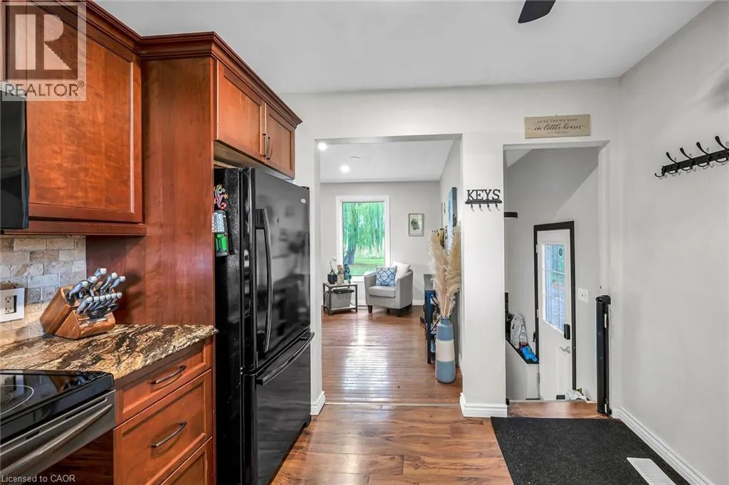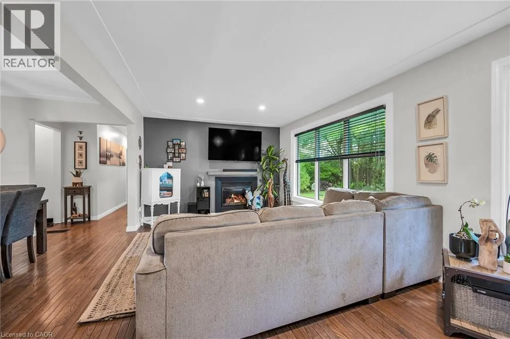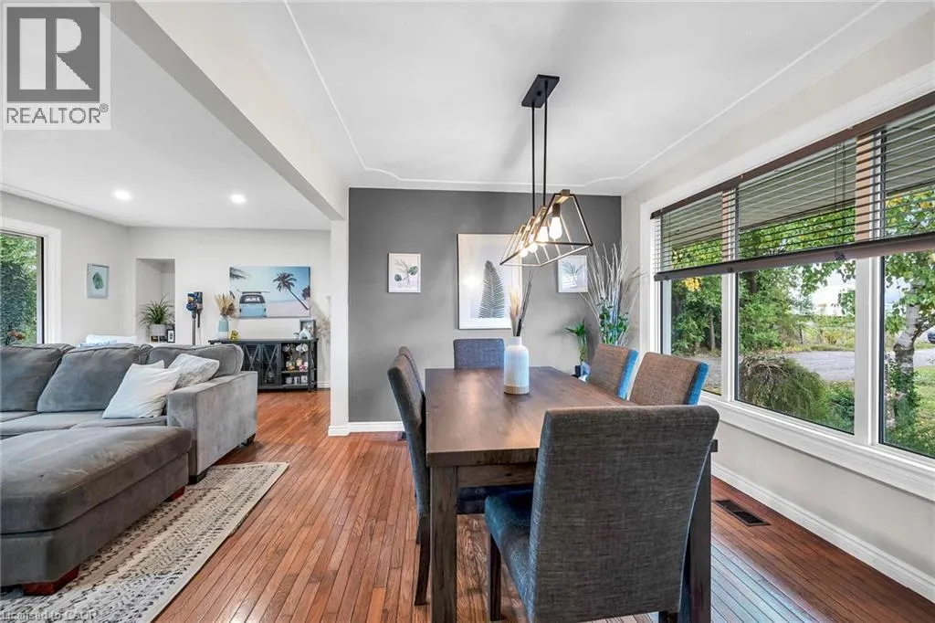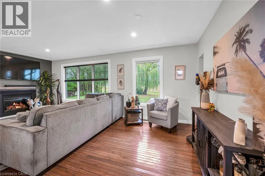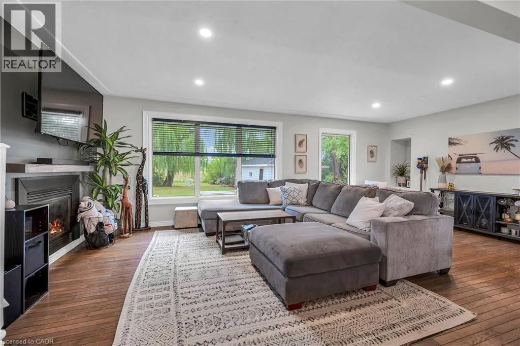 HIGHWAY 6 IN BETWEEN CALEDONIA & HAGERSVILLE Beautifully updated, Charming 3-bedroom, 1-bathroom Bungalow ideally situated on 90â x 149.87â lot between Hagersville and Caledonia. This property showcases the perfect blend of country living with close access to amenities. Great curb appeal with sided exterior, ample parking, detached garage, & concrete patio area. The open-concept main floor features beautiful hardwood flooring throughout dining area & living room with built in gas fireplace, an updated kitchen with updated countertops & appliances included, 3 spacious main floor bedrooms with laminate flooring, 4 pc primary bathroom, & welcoming foyer. The unfinished basement provides excellent flexibility with the option to add to overall living space, gym area, storage, & laundry. With easy access to Hamilton, Ancaster, and Highway 403, commuting is simple, while nearby Hagersville and Caledonia offer shopping, schools, parks, splash pad, pool, and local amenities. Whether youâre a first-time buyer, young family, those looking for main floor living, or investor, this home provides exceptional value in a convenient location. Donât miss the opportunity to make this well-maintained property yoursâbook your showing today! Experience Hagersville Country Living. (id:27476)