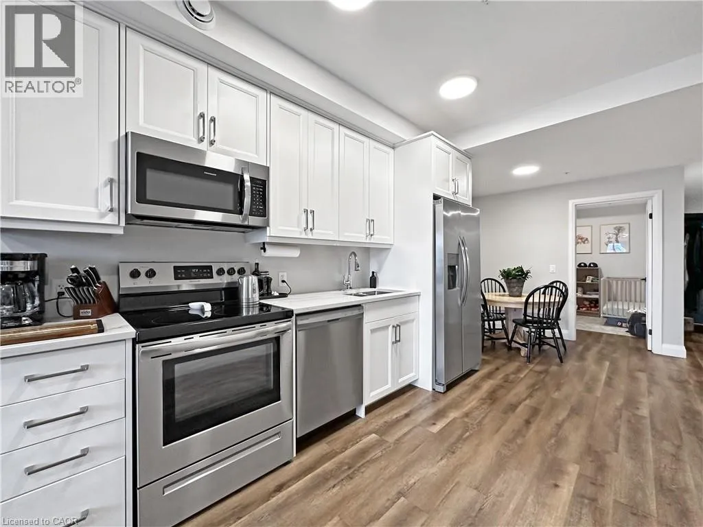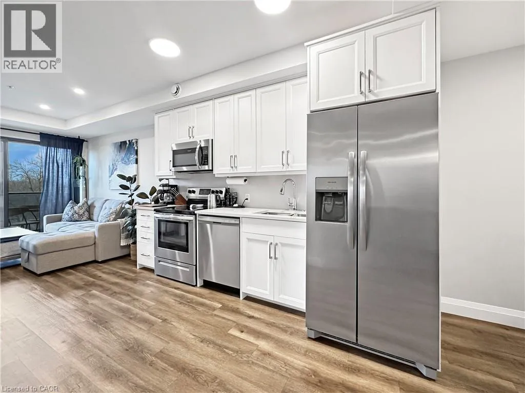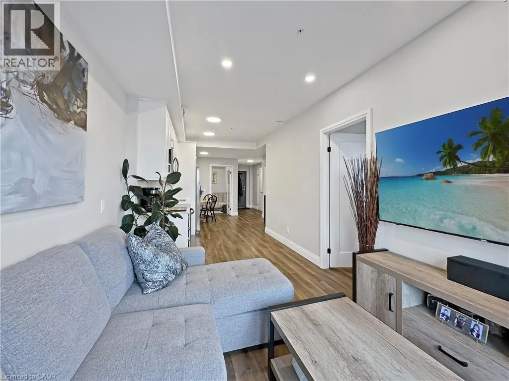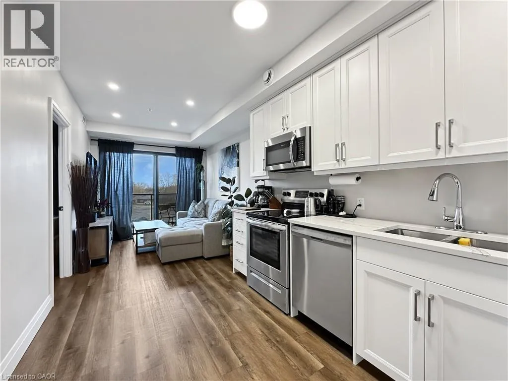 Highway 6 turns into Main St N Discover incredible value in this stylish, move-in ready two-bedroom condo! Thoughtfully designed with open-concept living, this home features a modern kitchen with high-end Wingerâs cabinetry, sleek quartz countertops, and stainless steel appliances. The spacious primary suite includes a generous closet and private ensuite, while a second bedroom and full bath offer flexibility for guests or a home office. Enjoy the convenience of in-suite laundry and an included parking space. Donât miss this opportunity for affordable ownership with quality finishes throughout! (id:27476)