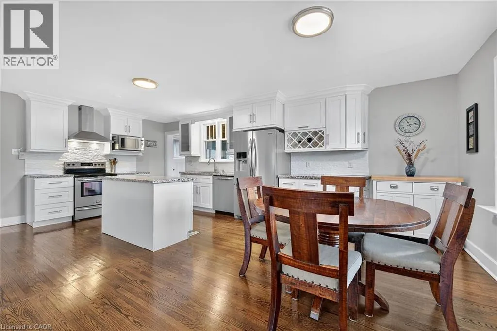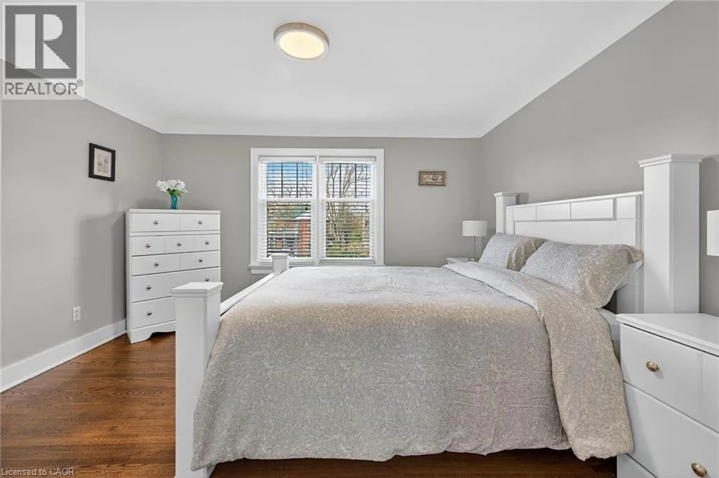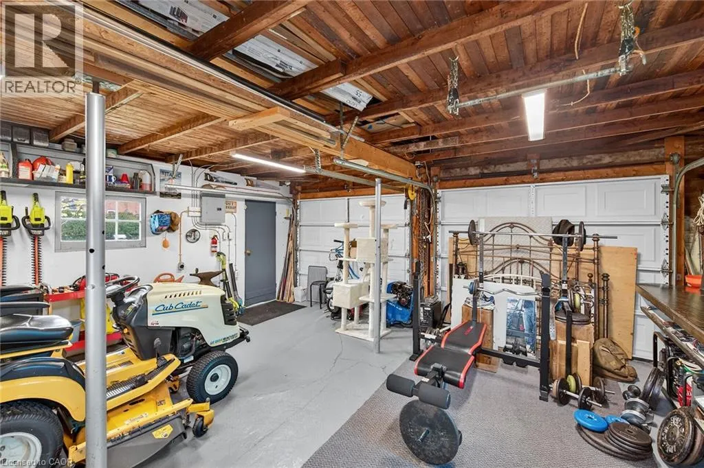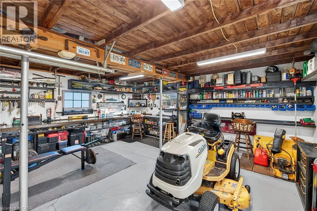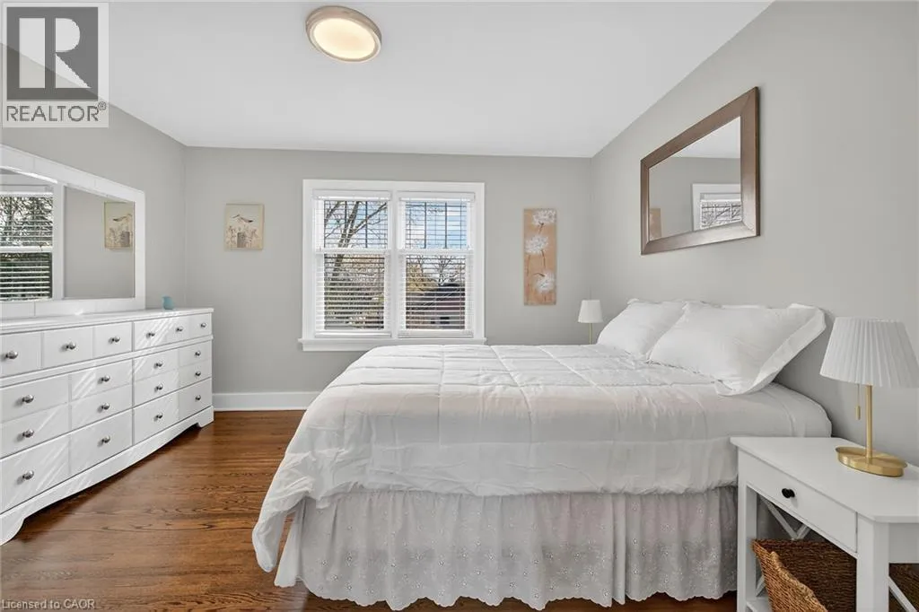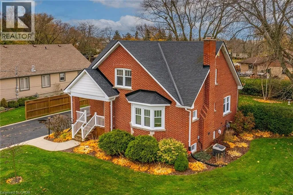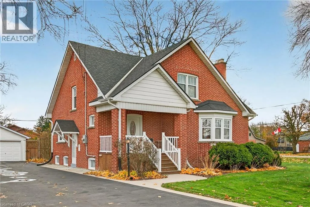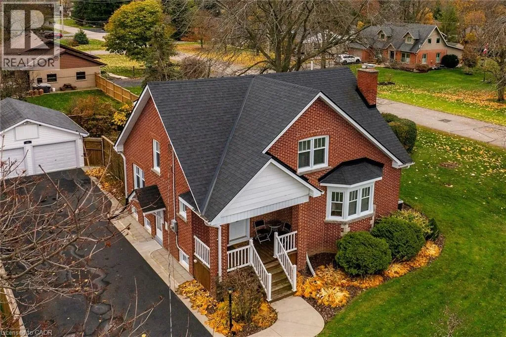East of Highway 6 South of King Street East North of Church Street East. Beautifully presented 4-bedroom, 2-bathroom home situated on a spacious 87âx132â corner lot in one of Hagersvilleâs most sought after neighbourhoods. Conveniently located within walking distance to park, tennis courts, a public pool, splash pad, schools, groceries, hospital, shopping and downtown eateries. The flowing interior offers about 2,500 sqft of distinguished living space with elegant modern décor highlighted by beautiful hardwood floors on both levels. Includes 3+1 bedrooms with large lighted closets, 2pc powder room on the main level and 4-pc bath upstairs. The open concept main floor contains a living room with gas fireplace and a bay window, 4th bedroom or home office, large gourmet eat-in kitchen with island, granite and stainless-steel appliances adjacent to a recently refinished, heated & insulated sunroom with skylight, overlooking the fully fenced rear yard with privacy hedge. The partially finished basement includes a family room with electric fireplace, laundry room, den and utility/storage room. The hobbyist will enjoy the 20âx25â garage/workshop/mancave with 2 overhead doors and a dug well (not used) thatâs ideal for outdoor irrigation. Fantastic curb appeal with original brick exterior, tidy landscaping, fresh asphalt driveway with concrete borders and plenty of parking, plus a private backyard complete with oversized deck & pergola area making the perfect outdoor entertaining space. Easy commute to Hamilton, 403, & GTA. This fantastic home offers the perfect blend of character and modern comfort. Must view to appreciate the attention to detail this stunning home has to offer. (id:27476)