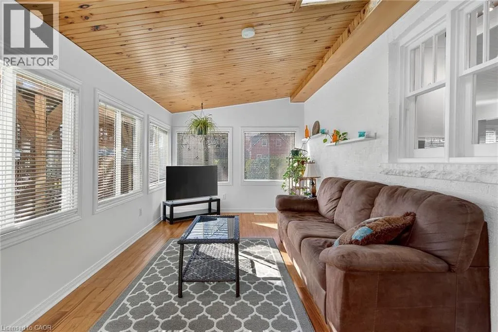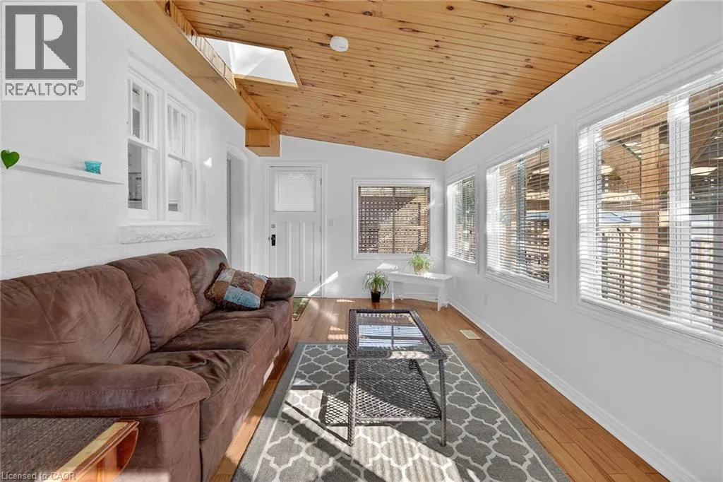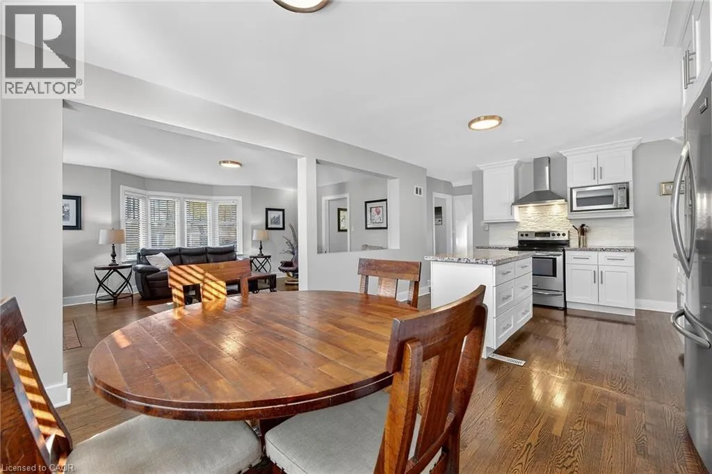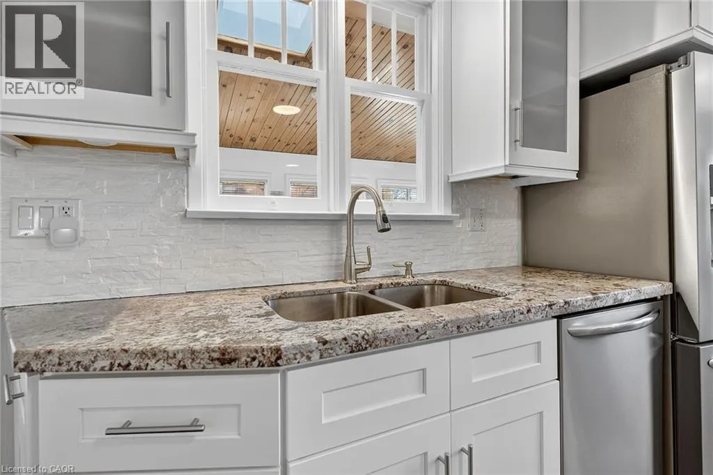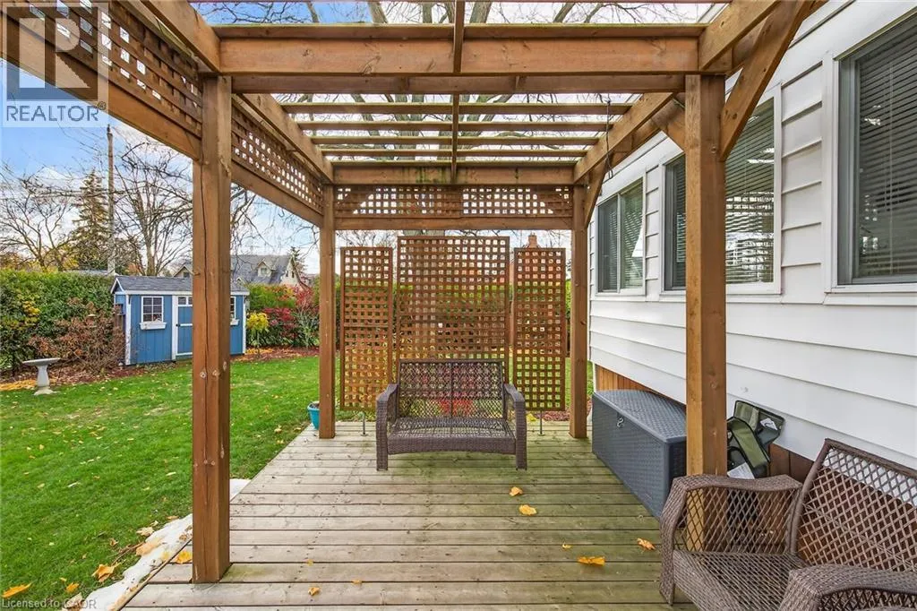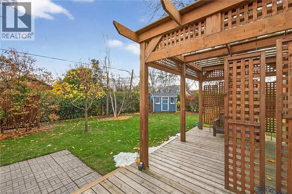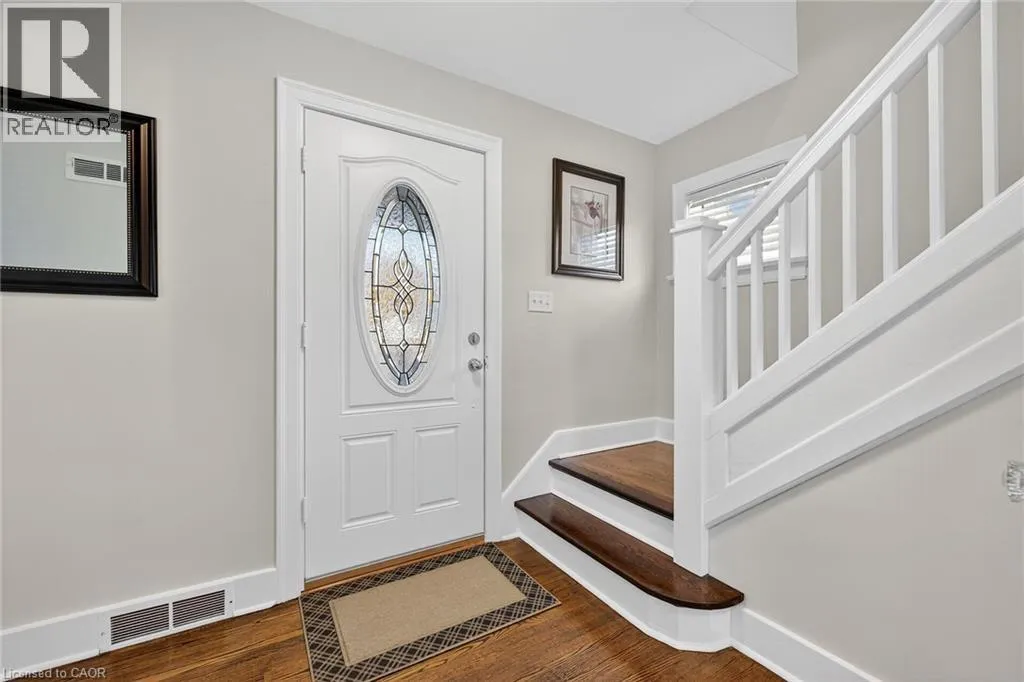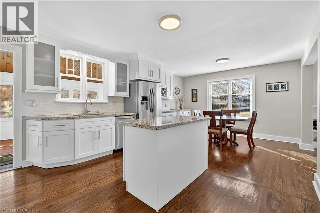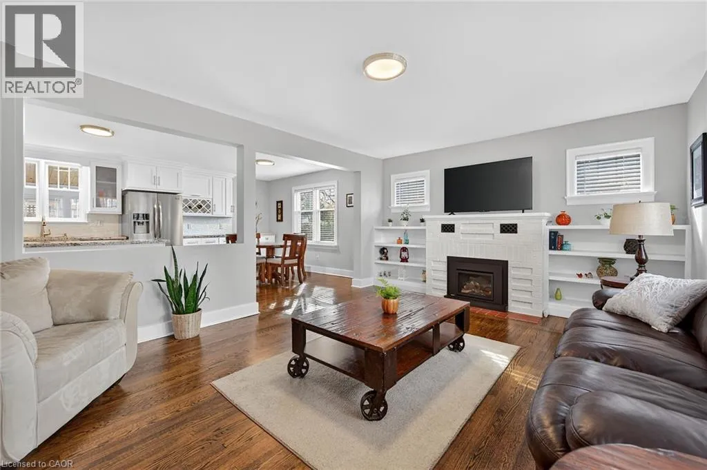 East of Highway 6 South of King Street East North of Church Street East. Beautifully presented 4-bedroom, 2-bathroom home situated on a spacious 87âx132â corner lot in one of Hagersvilleâs most sought after neighbourhoods. Conveniently located within walking distance to park, tennis courts, a public pool, splash pad, schools, groceries, hospital, shopping and downtown eateries. The flowing interior offers about 2,500 sqft of distinguished living space with elegant modern décor highlighted by beautiful hardwood floors on both levels. Includes 3+1 bedrooms with large lighted closets, 2pc powder room on the main level and 4-pc bath upstairs. The open concept main floor contains a living room with gas fireplace and a bay window, 4th bedroom or home office, large gourmet eat-in kitchen with island, granite and stainless-steel appliances adjacent to a recently refinished, heated & insulated sunroom with skylight, overlooking the fully fenced rear yard with privacy hedge. The partially finished basement includes a family room with electric fireplace, laundry room, den and utility/storage room. The hobbyist will enjoy the 20âx25â garage/workshop/mancave with 2 overhead doors and a dug well (not used) thatâs ideal for outdoor irrigation. Fantastic curb appeal with original brick exterior, tidy landscaping, fresh asphalt driveway with concrete borders and plenty of parking, plus a private backyard complete with oversized deck & pergola area making the perfect outdoor entertaining space. Easy commute to Hamilton, 403, & GTA. This fantastic home offers the perfect blend of character and modern comfort. Must view to appreciate the attention to detail this stunning home has to offer. (id:27476)