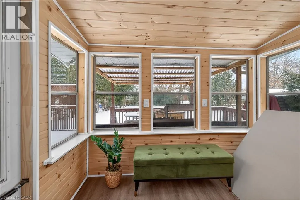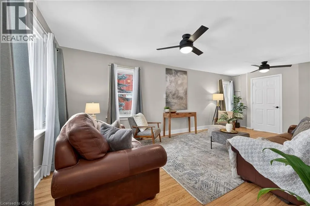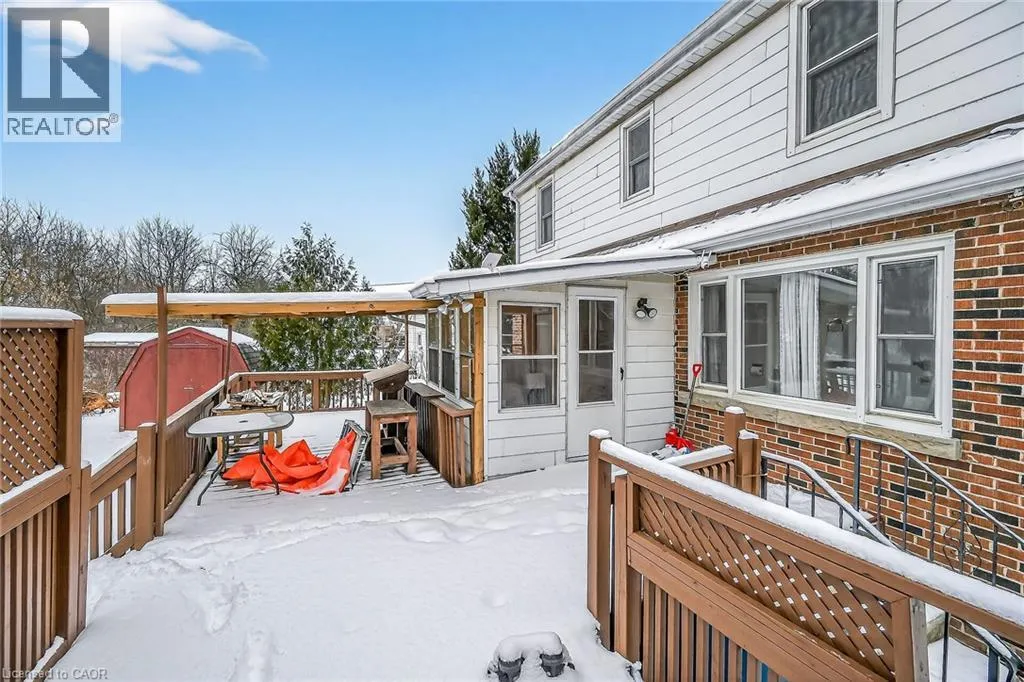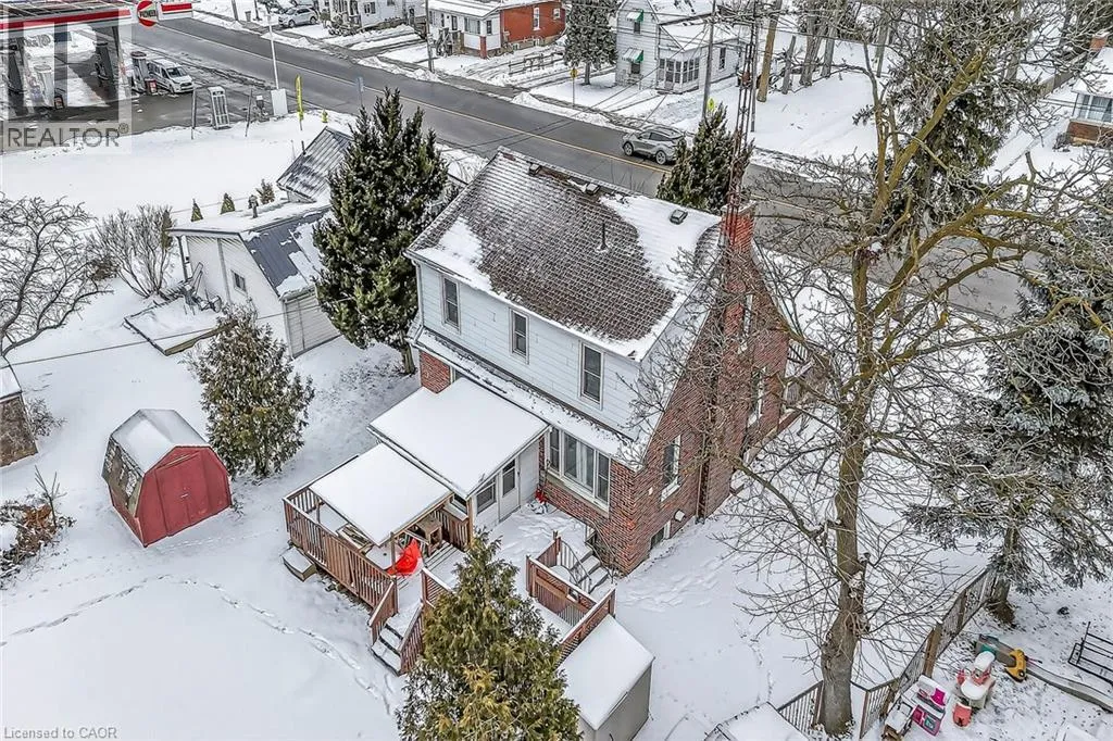 Follow Highway 6 south (Main Street) into Hagersville, property east side of the road, before Parkview Road Check out this tastefully presented, well priced character filled home & property situated in the heart of Hagersville - a super friendly, rural rooted town with incredible community spirit enjoying close proximity to schools, churches, public park, town pool, skate board park, downtown shops and eateries - relaxing 30 minute commute to Hamilton, Brantford & Hwy 403. The freshly painted, redecorated 1.5 storey brick home is positioned proudly on huge 0.21 acre serviced lot (62ft x 150ft) surrounded by mature trees & foliage ensuring natural privacy. Gleaming original hardwood flooring, period woodwork, trim & baseboards compliment the 1,395sf of above grade living space with timeless charm. Inviting front landing provides entry to comfortable living room boasting street facing picture window - leads to functional kitchen - then segues to formal dining room - continues past convenient 2pc bath & laundry station completed with attractive, pine accented rear sun room includes walk-out to large entertainment deck & user friendly back yard. Ultra spacious primary bedroom highlights bright upper level featuring 2 additional bedrooms & 4pc bath includes newly installed tub surround. Let your imagination run rampant with endless design possibilities to finish 815sf unspoiled basement - housing efficient n/gas hot water/boiler heater & updated 100 amp hydro service on breakers. Noteworthy extras - all appliances, vinyl clad windows, asphalt roof shingles and oversized paved double driveway. Lockbox for showing ease - immediate possession available. Attractive & Affordable property - large lot is ideal for young families wanting to raise their children in wholesome small town environment - or - great price is perfect for 1st time Buyers looking to purchase a value packed quality product. No disappointments here! (id:27476)