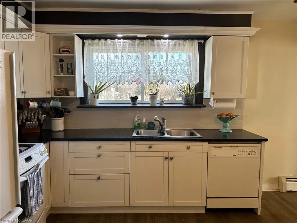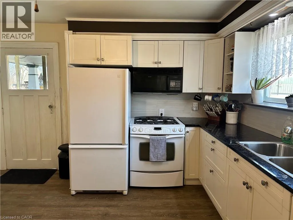 King Street W to Sarah Street to Jane Spacious, well-maintained home situated on an extra wide 82' x 132' lot in a highly convenient location close to all amenities. The second level offers three generous bedrooms, while the main floor features a large kitchen, separate dining room, and the added convenience of main floor laundry. Enjoy the fully fenced backyard complete with incredible gardens showcasing peach and pear trees, plus blueberry and blackberry bushes -perfect for outdoor enthusiasts and gardeners alike. A double detached garage with hydro and an additional storage loft provides excellent workspace/storage options, and thereâs ample parking for multiple vehicles. A wonderful property offering space, functionality, and exceptional outdoor living in one desirable package. (id:27476)