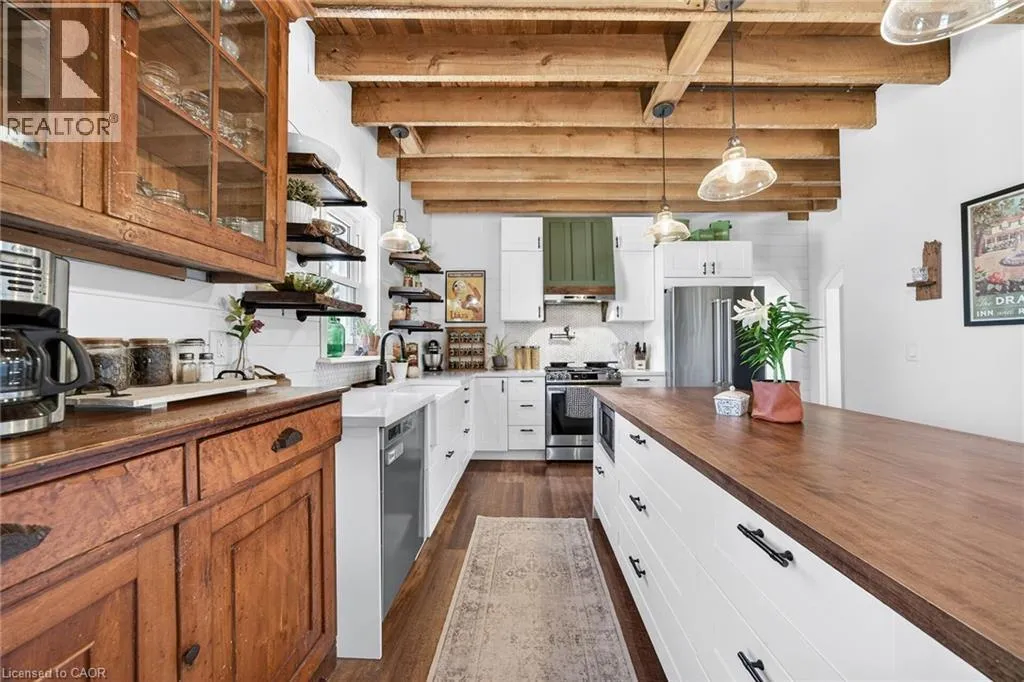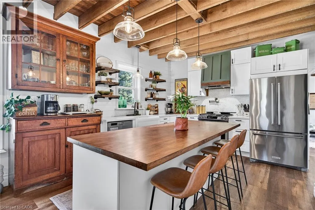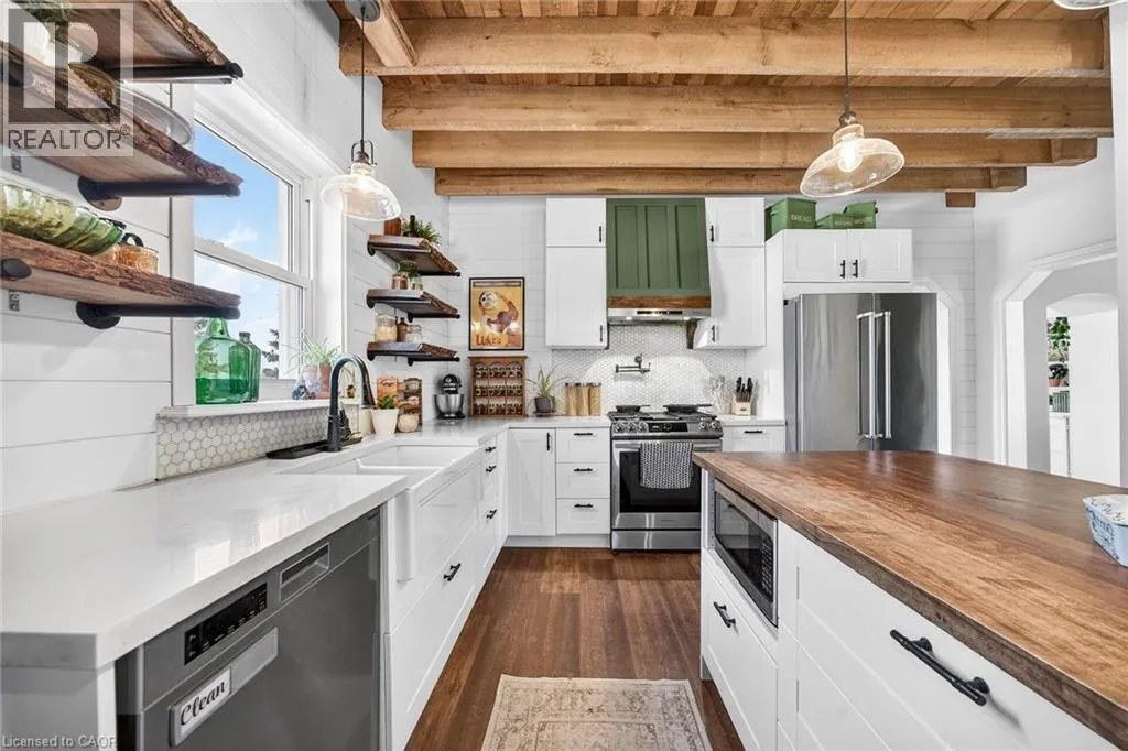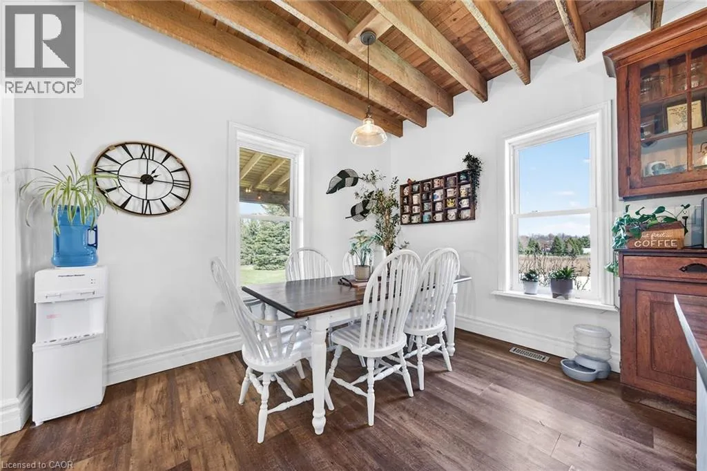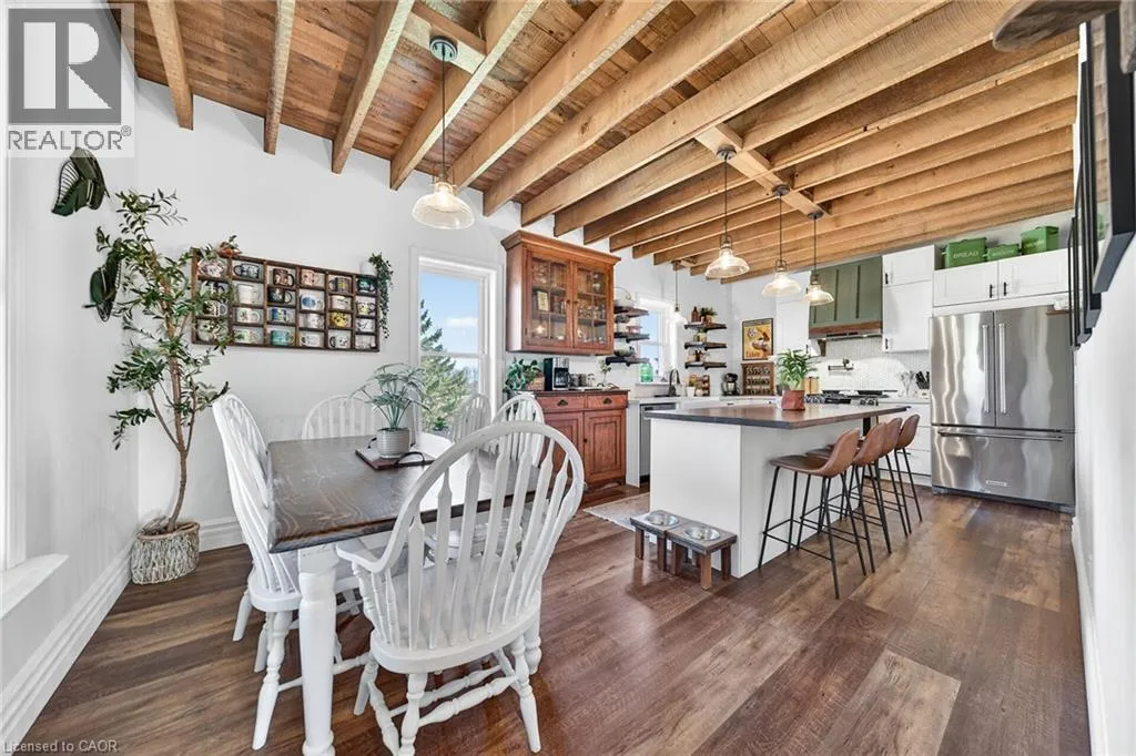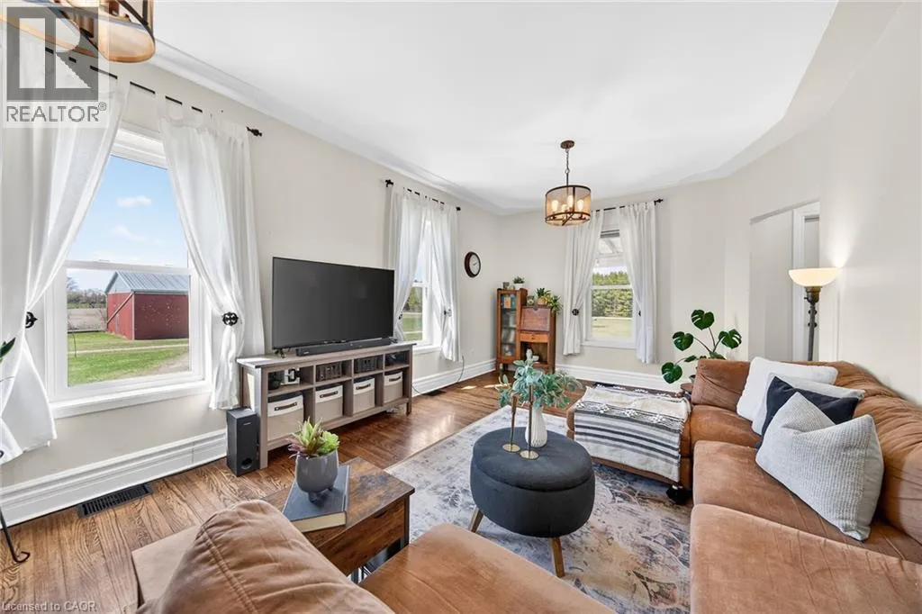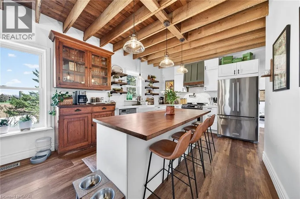 HIGHWAY 3 TO DRY LAKE ROAD TO LEFT ON HALDIMAND RD 9 Character & Charm resonate throughout this Exquisitely updated 4 bedroom, 3 bathroom - Circa 1895 brick Century home perfectly positioned well back from the road on desired 188â x 425â lot. Incredible curb appeal with front covered porch, brick exterior, covered side porch, & extensive side deck with pergola for entertaining. The beautifully presented interior showcases a traditional, yet flowing layout and close to 2500 sq ft of distinguished living space highlighted by period specific trim, hardwood floors, chef inspired custom kitchen with granite counters, backsplash, & custom island with gorgeous exposed wood beam ceiling, dining area, living room with hardwood, family room with fireplace, rec room / office area, 2 pc bathroom, MF laundry, & welcoming foyer. The upper level features 4 pc main bathroom, and 4 bedrooms including luxurious primary bedroom with fireplace, walk in closet, & spa inspired ensuite with soaker tub & walk in shower. The unfinished basement provides ample storage and houses the mechanicals. Updates include windows - 15, wiring, insulation, flooring, kitchen cabinetry, decor, new decks & landscaping â 20, lighting, fixtures, & more. Conveniently located minutes to Hagersville, Caledonia, & Cayuga. Complete with chicken coop, raised garden beds, & shed for your own âmini farmâ if desired. Ideal family home or for multi generational set up. Experience Hagersville Country Living at its Finest! (id:27476)