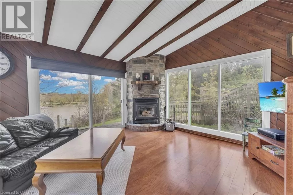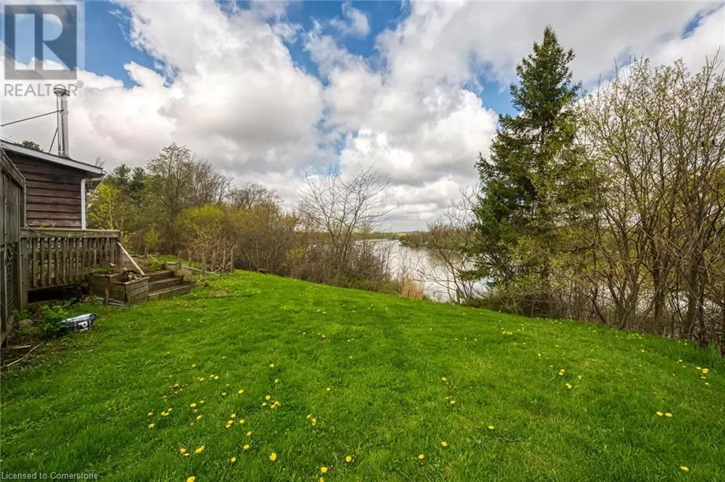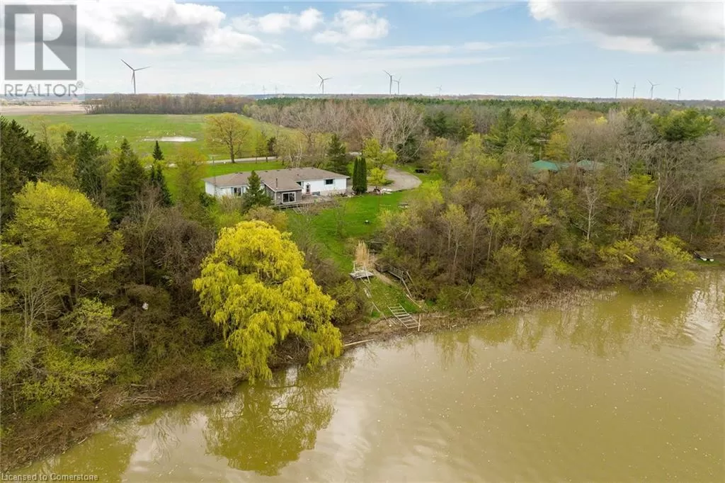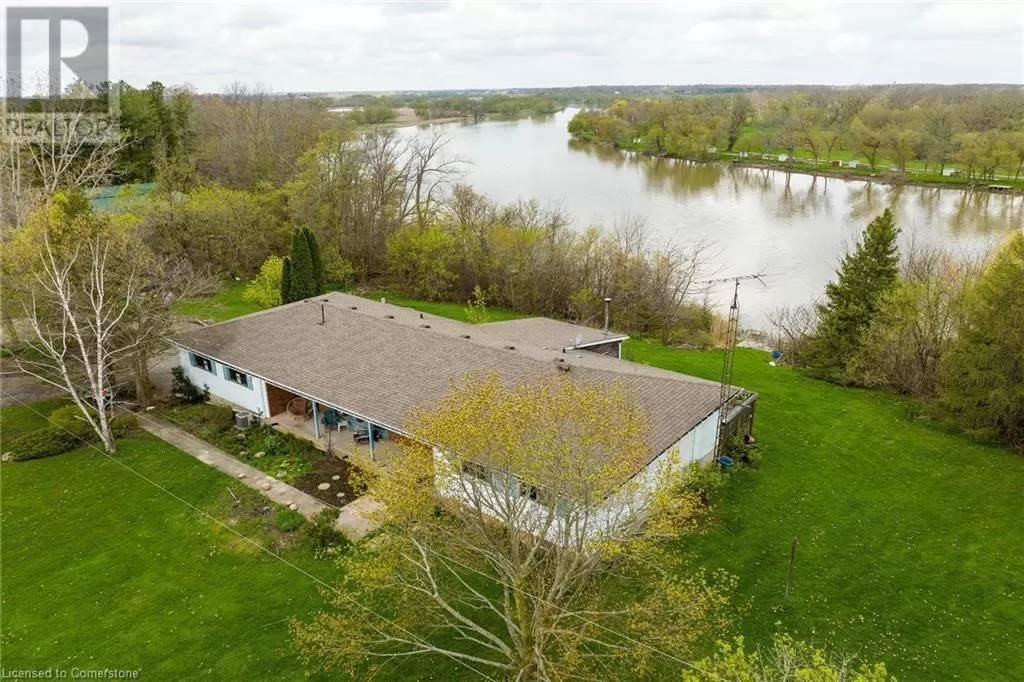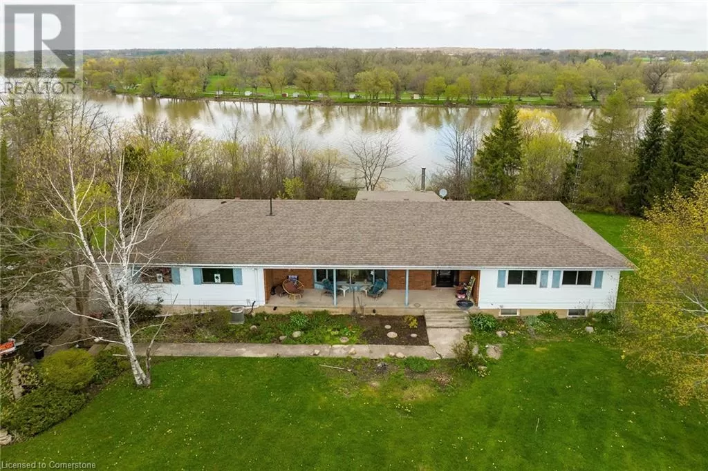 From Highway 3 Cayuga, turn left onto River Road. Follow until turn RT on River Road/Yaremy Road to LT back on River Road, continue following River Road to the property (on left hand side) WATERFRONT living at its FINEST - imagine over a 20 mile navigable waterway at your doorstep (btwn Cayuga & Dunnville) - come DISCOVER the GRAND RIVER & itâs amazing attributes for yourself - it doesnât matter how windy it gets - the Grand will always ensure the âULTIMATEâ venue for fantastic boating, canoeing, paddle boating, swimming + excellent fishing - the Great Lakes canât make that claim! Positioned handsomely on 2.15ac private lot (349ft frontage may allow for future lot severing possibilities) is sprawling 1980 built brick/sided bungalow offering 1826sf of functional living area, 1826sf unspoiled basement + oversized att. 768sf garage boasting 12' ceilings. Inviting covered front porch provides entry to renovated (in progress) main floor introduces spacious living room leads to open concept kitchen/dining area incs WO to rustic all-seasons sunroom sporting wall to wall windows, vaulted pine T&G beamed ceilings, wood stove & 8' patio door WO to 580sf water facing deck system. Lavish primary bedroom enjoys remodeled 3pc en-suite & WI closet, 2 additional bedrooms & chic 4pc primary bath ftrs heated floors. Gleaming hardwood flooring & classic crown moulded/pot lighted ceilings compliment inspiring décor. Airy/open lower level houses laundry station, p/g furnaceâ19 equipped w/ACâ13, upgraded 100 amp hydro, water pump/pressure tank + RI fireplace. Extras - new plumbing in many areas-2024, new ductless heat/cool HVAC system-2024, roofâ14, septic'02, 6000 gal cistern, 3pc aluminum/wood dock systemâ19 + shed. Time to start singing - ON THE PONTOON! AIA (id:27476)