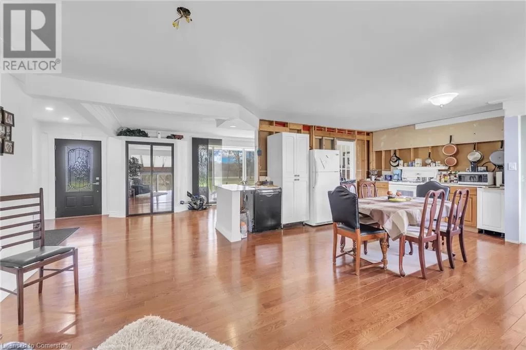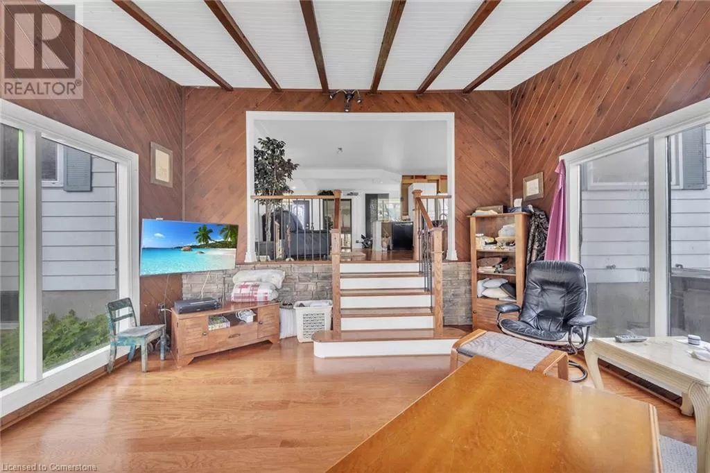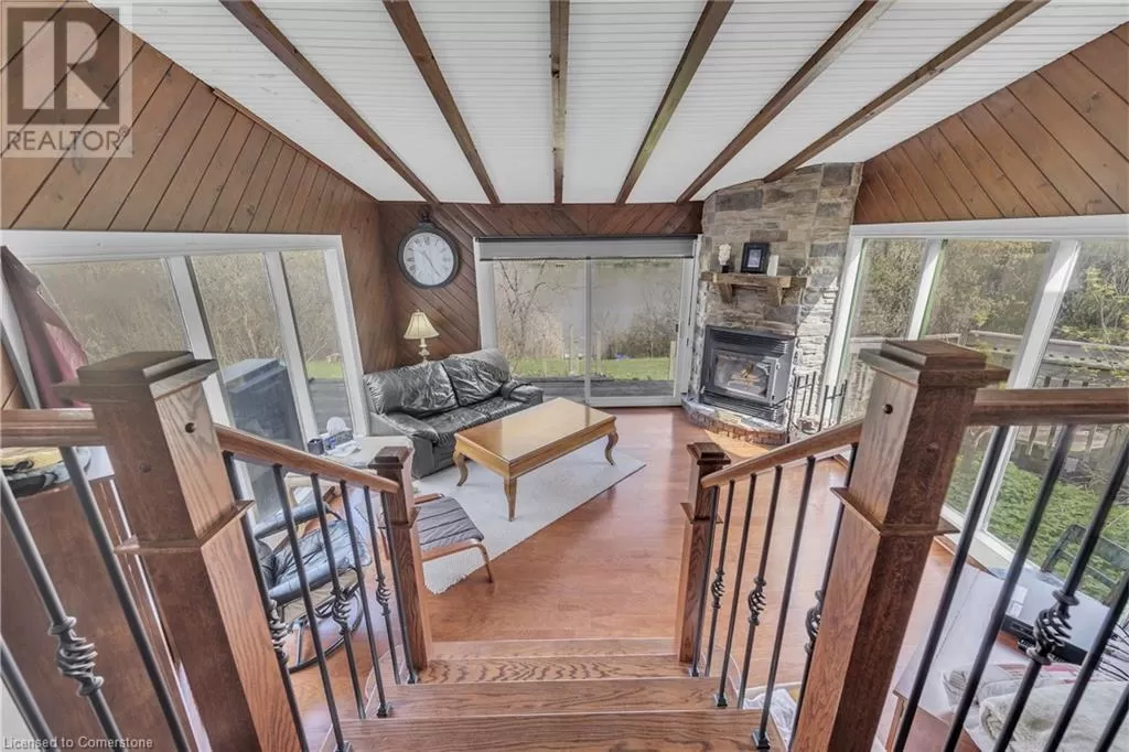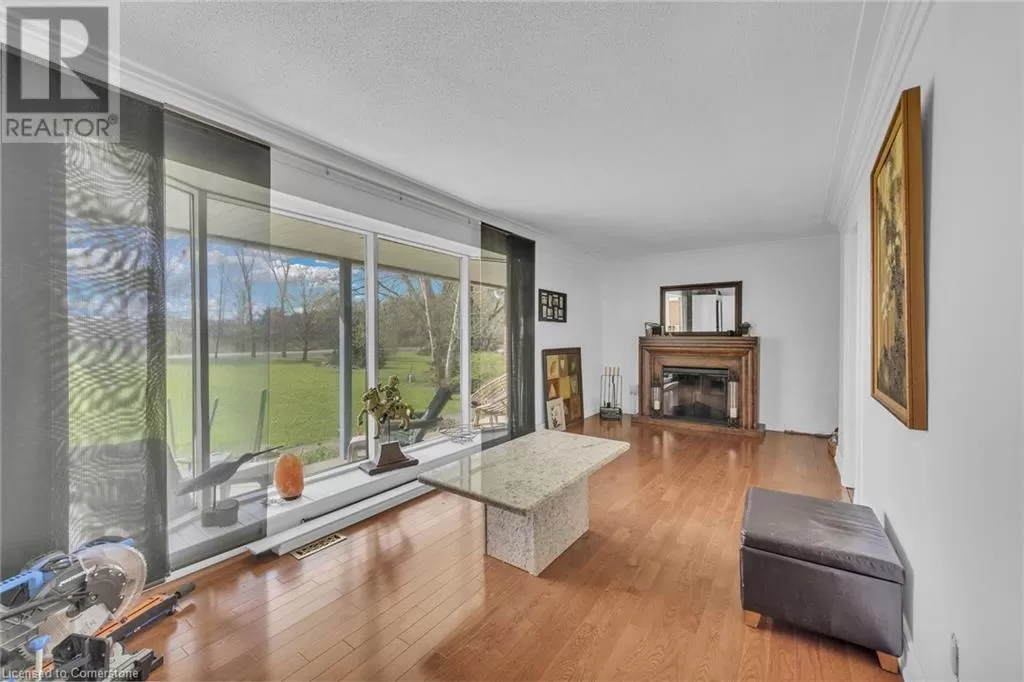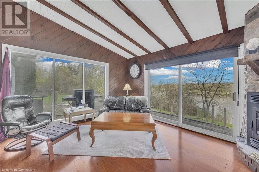 From Highway 3 Cayuga, turn left onto River Road. Follow until turn RT on River Road/Yaremy Road to LT back on River Road, continue following River Road to the property (on left hand side) WATERFRONT living at its FINEST - imagine over a 20 mile navigable waterway at your doorstep (btwn Cayuga & Dunnville) - come DISCOVER the GRAND RIVER & itâs amazing attributes for yourself - it doesnât matter how windy it gets - the Grand will always ensure the âULTIMATEâ venue for fantastic boating, canoeing, paddle boating, swimming + excellent fishing - the Great Lakes canât make that claim! Positioned handsomely on 2.15ac private lot (349ft frontage may allow for future lot severing possibilities) is sprawling 1980 built brick/sided bungalow offering 1826sf of functional living area, 1826sf unspoiled basement + oversized att. 768sf garage boasting 12' ceilings. Inviting covered front porch provides entry to renovated (in progress) main floor introduces spacious living room leads to open concept kitchen/dining area incs WO to rustic all-seasons sunroom sporting wall to wall windows, vaulted pine T&G beamed ceilings, wood stove & 8' patio door WO to 580sf water facing deck system. Lavish primary bedroom enjoys remodeled 3pc en-suite & WI closet, 2 additional bedrooms & chic 4pc primary bath ftrs heated floors. Gleaming hardwood flooring & classic crown moulded/pot lighted ceilings compliment inspiring décor. Airy/open lower level houses laundry station, p/g furnaceâ19 equipped w/ACâ13, upgraded 100 amp hydro, water pump/pressure tank + RI fireplace. Extras - new plumbing in many areas-2024, new ductless heat/cool HVAC system-2024, roofâ14, septic'02, 6000 gal cistern, 3pc aluminum/wood dock systemâ19 + shed. Time to start singing - ON THE PONTOON! AIA (id:27476)