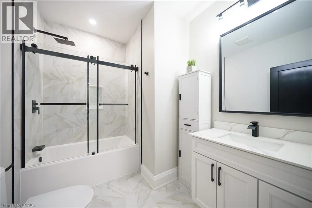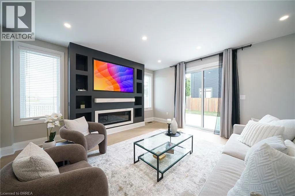 Highway 6 to Haldimand 66 Road Welcome to 21 Haldimand 66 Road, Haldimand County! Discover the definition of modern luxury in this fully finished home offering nearly 4,000 sq ft of impeccable living space, set on a premium 100 x 115 ft lot. With 3.5 bedrooms, 3.5 baths, and a show-stopping design, this residence blends sophistication, comfort, and versatility. From the moment you step inside, the porcelain tile foyer, black trim accents, and striking feature staircase set the tone for whatâs to come. The living room is a statement space with its floor-to-ceiling gas fireplace, expansive windows, and pot-lit ambiance. Entertain in style in the open-concept kitchen and dining area, complete with quartz counters, a full-height backsplash, designer lighting, and premium stainless steel appliances (2022). The primary suite is your private retreat, featuring wide-plank engineered hardwood, oversized windows, and a spa-inspired ensuite with a glass walk-in shower, quartz vanity, and chic black fixtures. Two additional bedrooms offer modern comfort, while the main floor also boasts a designer powder room and a fully equipped laundry with cabinetry, folding counter, and a bonus fridge/freezer. The lower level is an entertainerâs dreamâor perfect in-law suiteâwith an open-concept layout, quartz wet bar, electric fireplace, stylish 3pc bath, dedicated bedroom, and fitness/office space. Step outside to your backyard oasis, complete with full fencing, a concrete patio, lush green space, and plenty of room for gatherings. The oversized driveway and double garage with Wi-Fi openers and video pin pad add convenience, while peace of mind comes from the new roof, windows, cistern, and septic (all 2022). Every inch of this home has been crafted with elegance and functionality in mind. Move in and experience the perfect balance of modern design, high-end finishes, and endless possibilities! (id:27476)